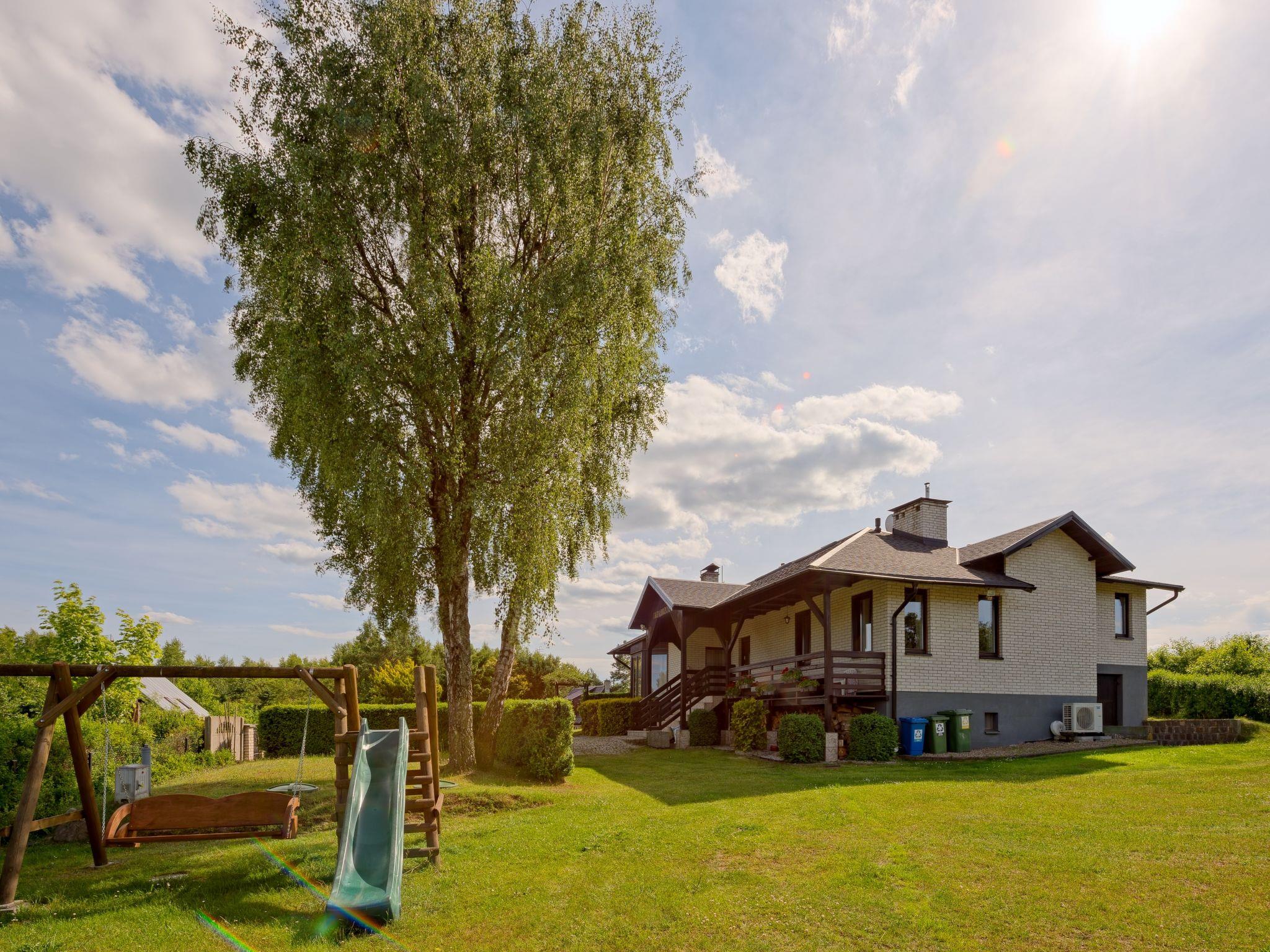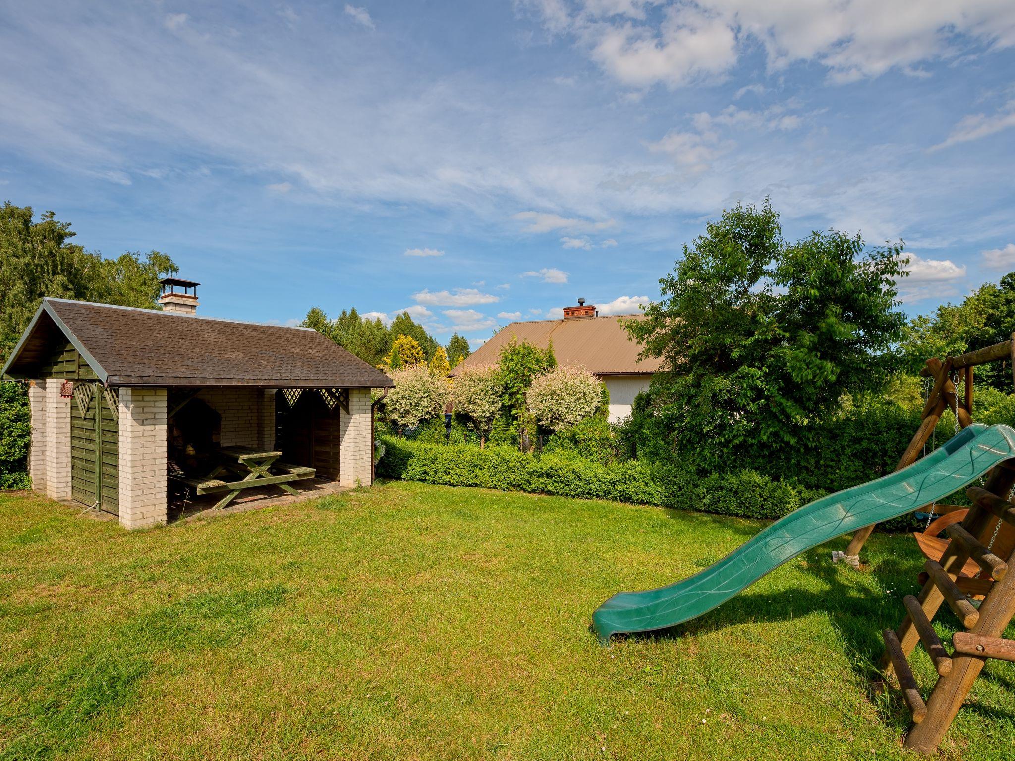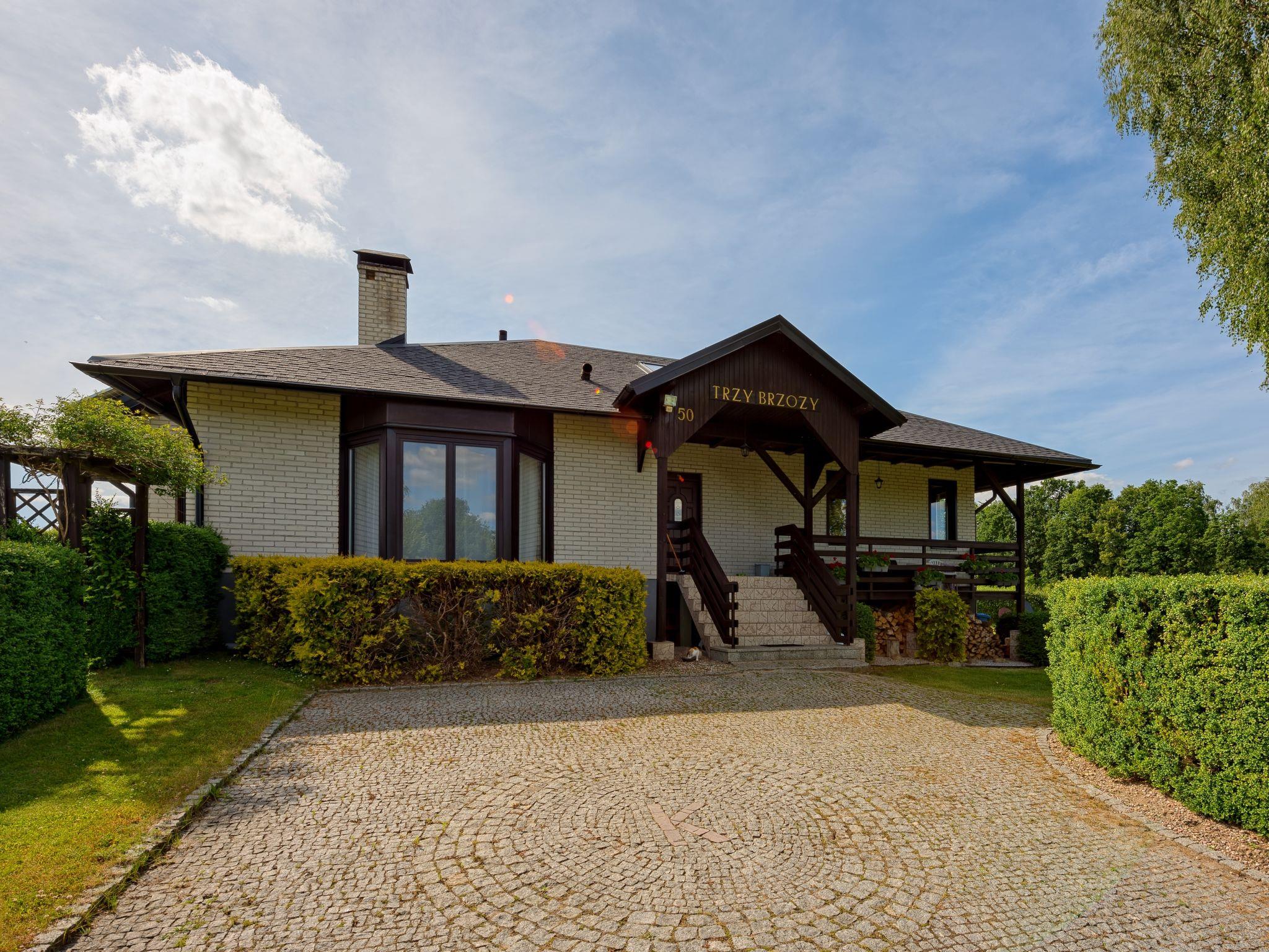 5-room house 200 m2 on 4 levels. Comfortable and stylish furnishings: entrance hall 27 m2. Living room 50 m2 with open-hearth fireplace and satellite TV. Exit to the garden. Kitchen 17 m2 (oven, dishwasher). Sep. WC. On the lower ground floor: playroom. Upper floor: 2 rooms, each room with 1 double bed. Bidet, bath/shower/WC with corner bath. Top floor: 1 room with 1 double bed and air conditioning. Open gallery with 3 beds. Oil heating (extra). Terrace furniture, deck chairs. Facilities: washing machine. Internet (WiFi). Garage (2 cars). Instead of an enclosed bedroom, some sleeping areas are located in an open-plan area (gallery, alcove, etc.). Karlowo 50