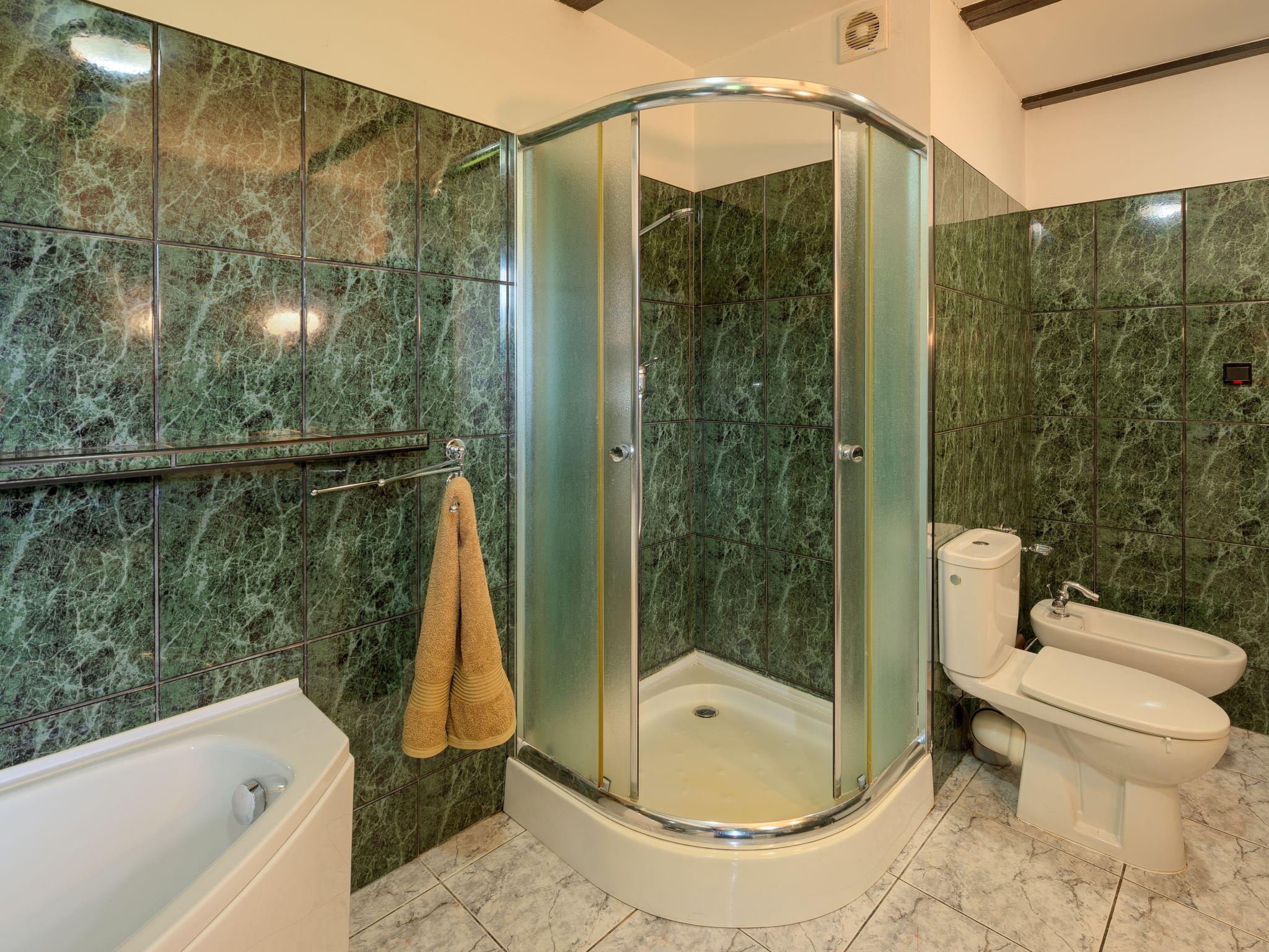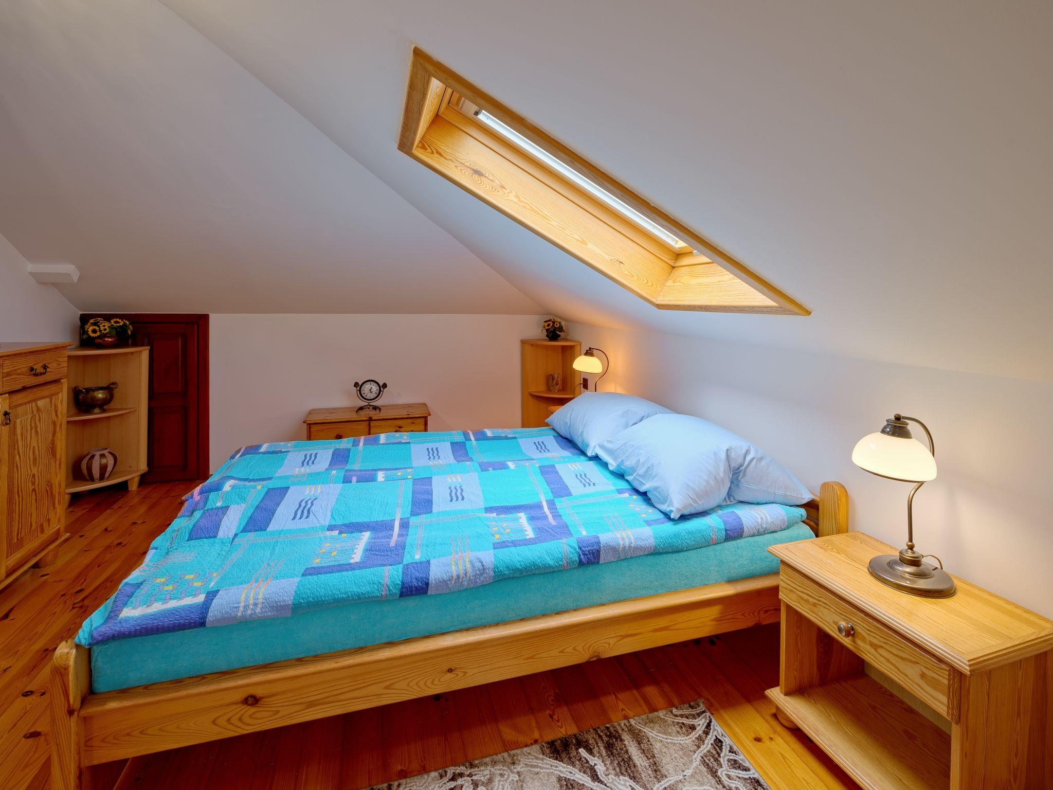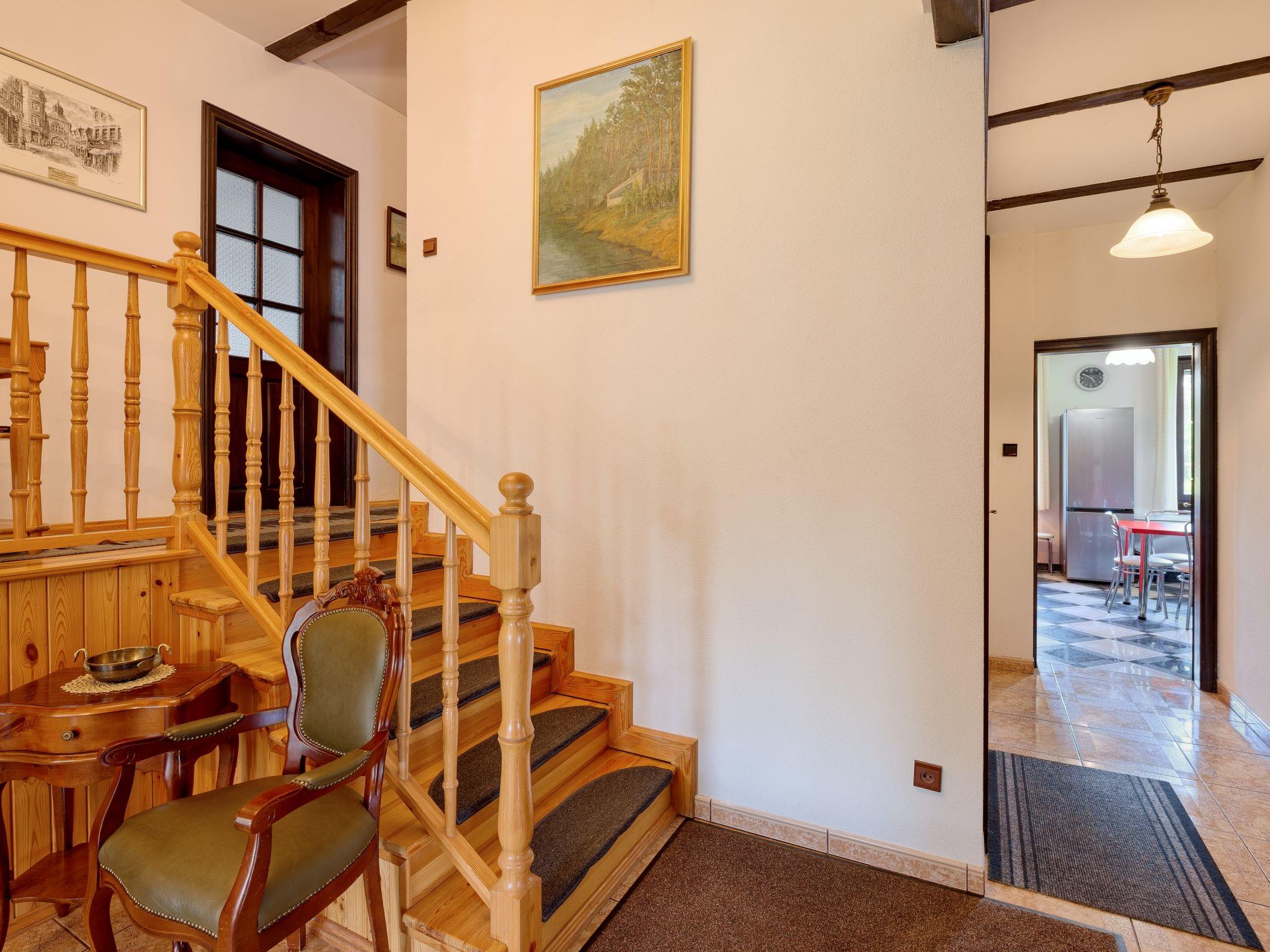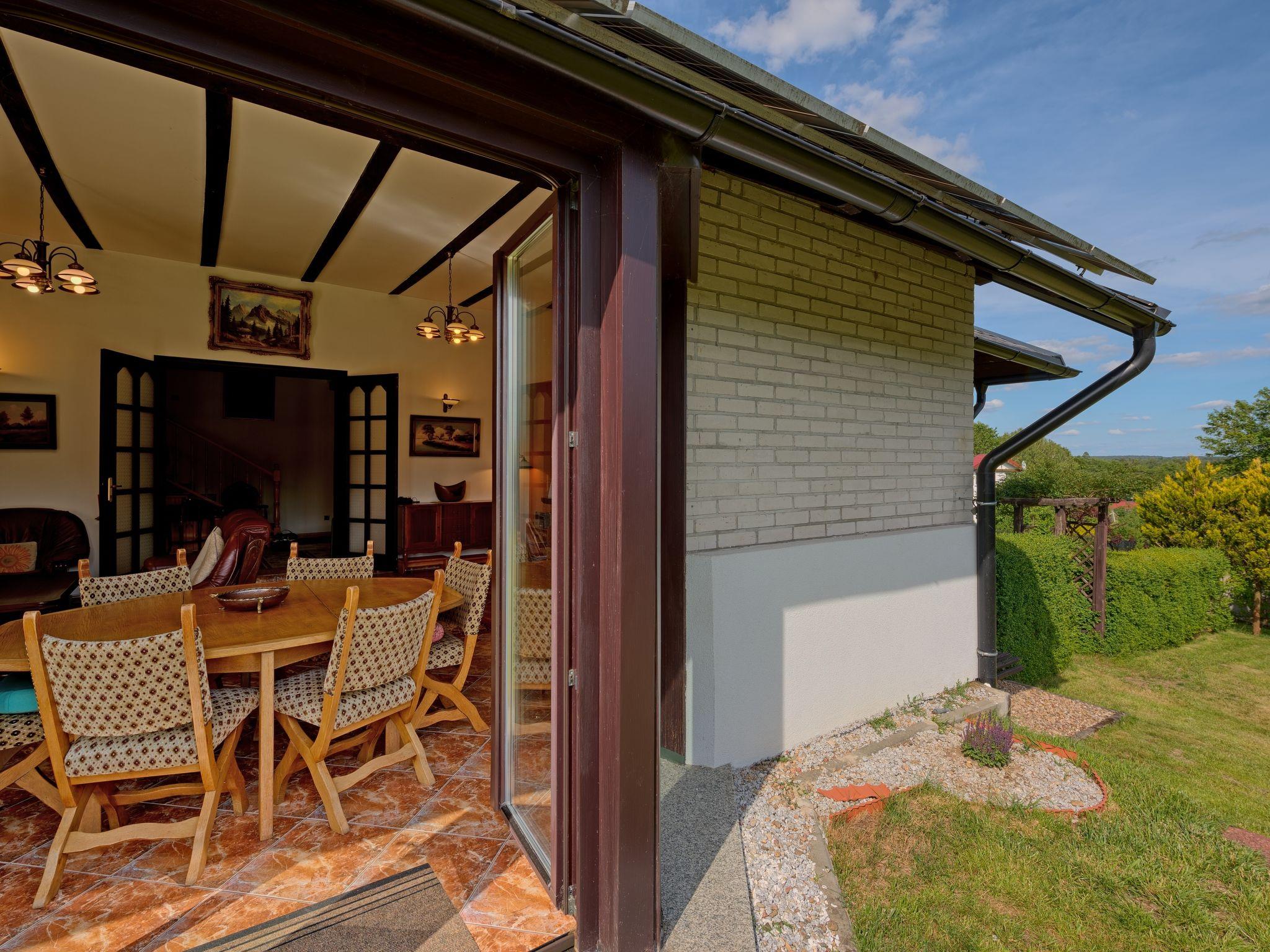 5-room house 200 m2 on 4 levels. Comfortable and stylish furnishings: entrance hall 27 m2. Living room 50 m2 with open-hearth fireplace and satellite TV. Exit to the garden. Kitchen 17 m2 (oven, dishwasher). Sep. WC. On the lower ground floor: playroom. Upper floor: 2 rooms, each room with 1 double bed. Bidet, bath/shower/WC with corner bath. Top floor: 1 room with 1 double bed and air conditioning. Open gallery with 3 beds. Oil heating (extra). Terrace furniture, deck chairs. Facilities: washing machine. Internet (WiFi). Garage (2 cars). Instead of an enclosed bedroom, some sleeping areas are located in an open-plan area (gallery, alcove, etc.). Karlowo 50