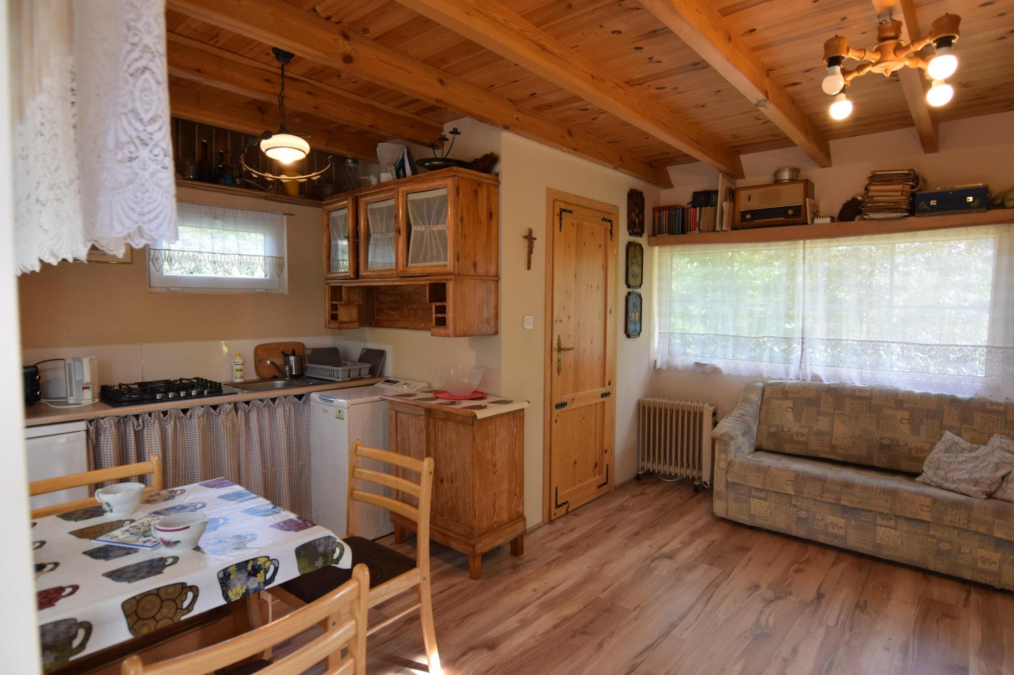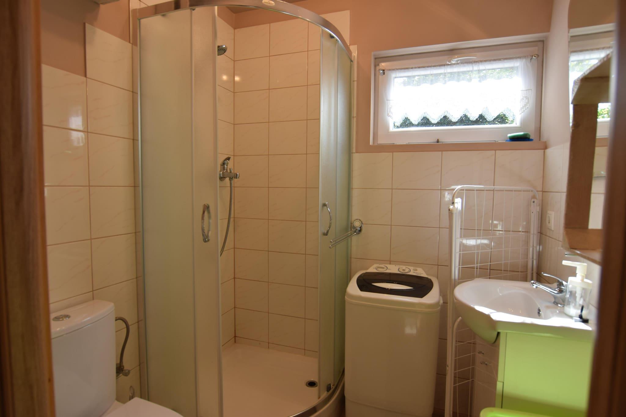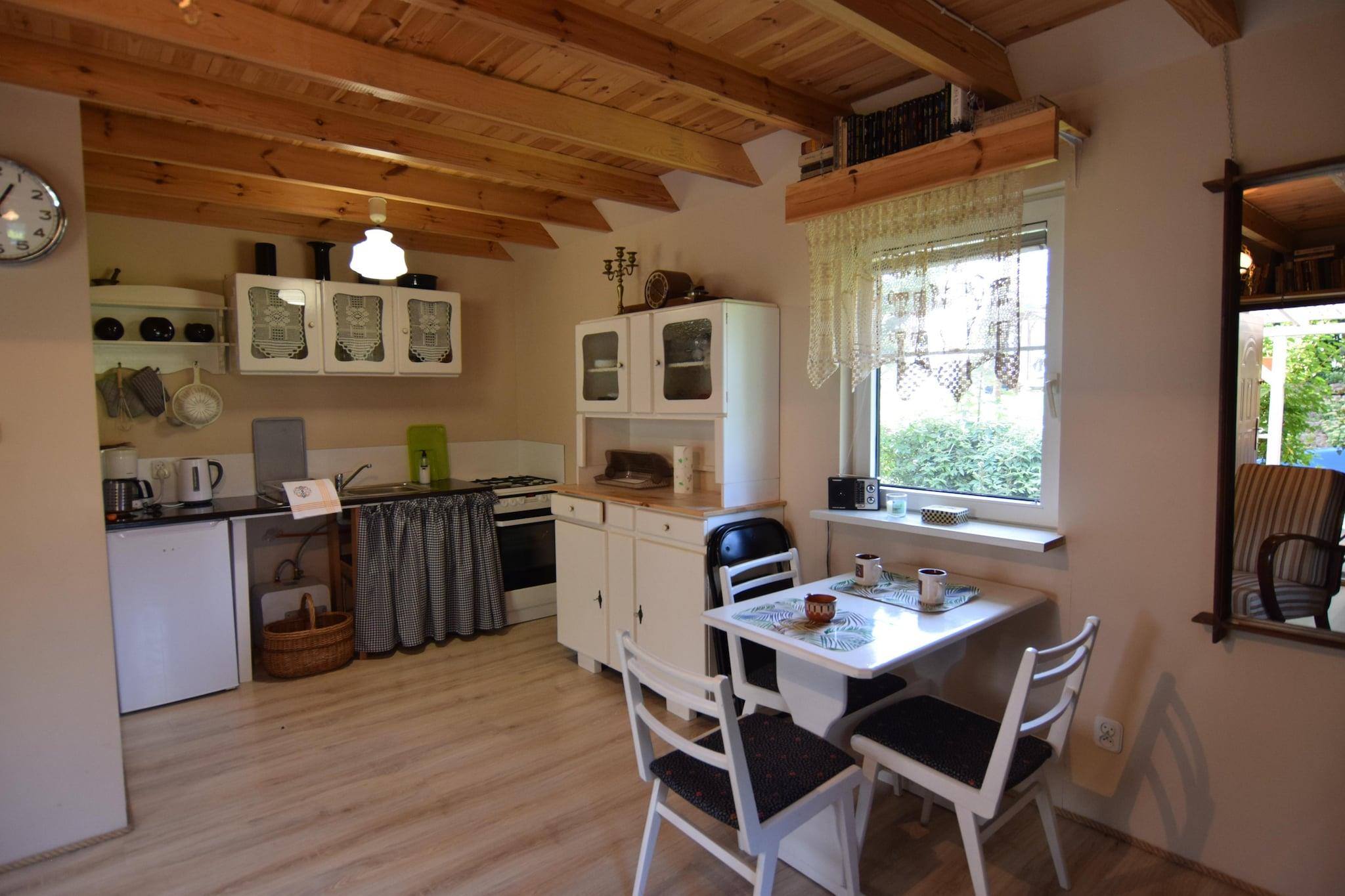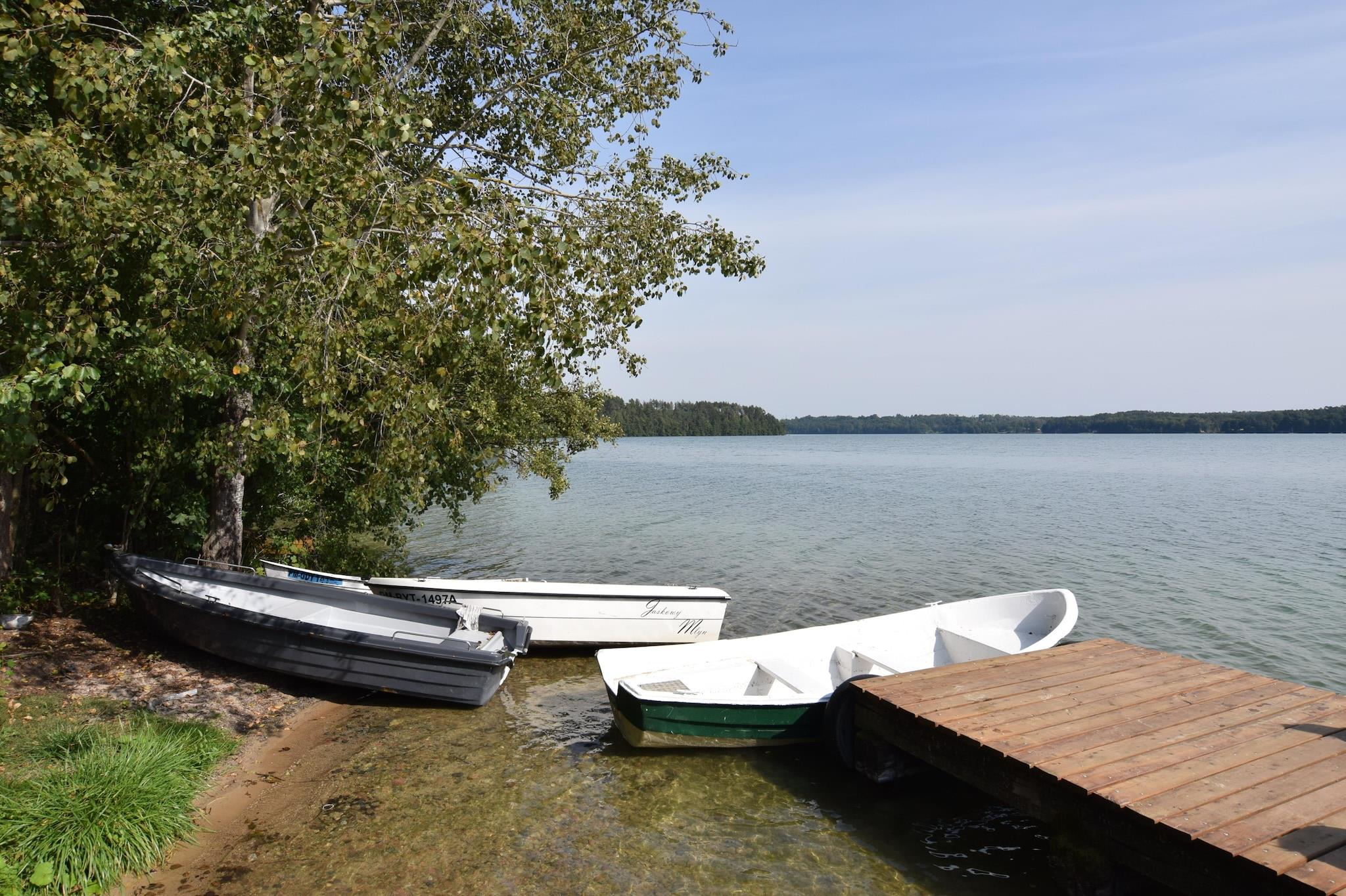 Et intimt feriekompleks i en oase af fred og ro, 250 meter fra den maleriske sø Mausz. Den lille ferielandsby Frydrychowo ligger i hjertet af Kasjubien. Komplekset har to ens feriehuse, hver med sin egen private have, og der er også et fællesområde med en legeplads for børn. Dette komfortable, toetagers feriehus har en overdækket terrasse med havemøbler og grillfaciliteter. I stueetagen er der en stor stue (TV, spisebord, dobbelt sovesofa), et veludstyret køkken og et badeværelse med bruser. På første sal er der et trepersoners soveværelse. Der er elektrisk opvarmning. Der er også en vaskemaskine. En hængekøje, liggestole og en stor privat have ligger ved siden af huset, perfekt til at nyde uforstyrret afslapning. Hele komplekset er indhegnet. Det fælles område (delt af gæster fra to nabohuse) omfatter en legeplads og et bålområde. Sikker parkering er tilgængelig. Du kan leje en kano eller kajak fra værterne på stedet (mod et ekstra gebyr). Prisen inkluderer sengelinned, vand, gas, slutrengøring og parkering. Barneseng og højstol kan bestilles. Området er roligt og fredeligt. En sandstrand med en mole ved Mausz-søen ligger 300 meter væk. Det krystalklare vand (førsteklasses renhed) indbyder til svømning, men det er også et paradis for lystfiskere (gedde, hvidfisk, suder, brasen, aborre, ål og kakerlak). Der er mange attraktive cykelstier i nærheden. I det nærliggende Suleczyno (5 km) er der cykeludlejning, restauranter, og der arrangeres adskillige arrangementer og festivaler om sommeren. Suleczyno ligger ved et andet attraktivt vandområde – Wegorzyno-søen, hvor du kan tage på kajakture ned ad Slupia-floden.