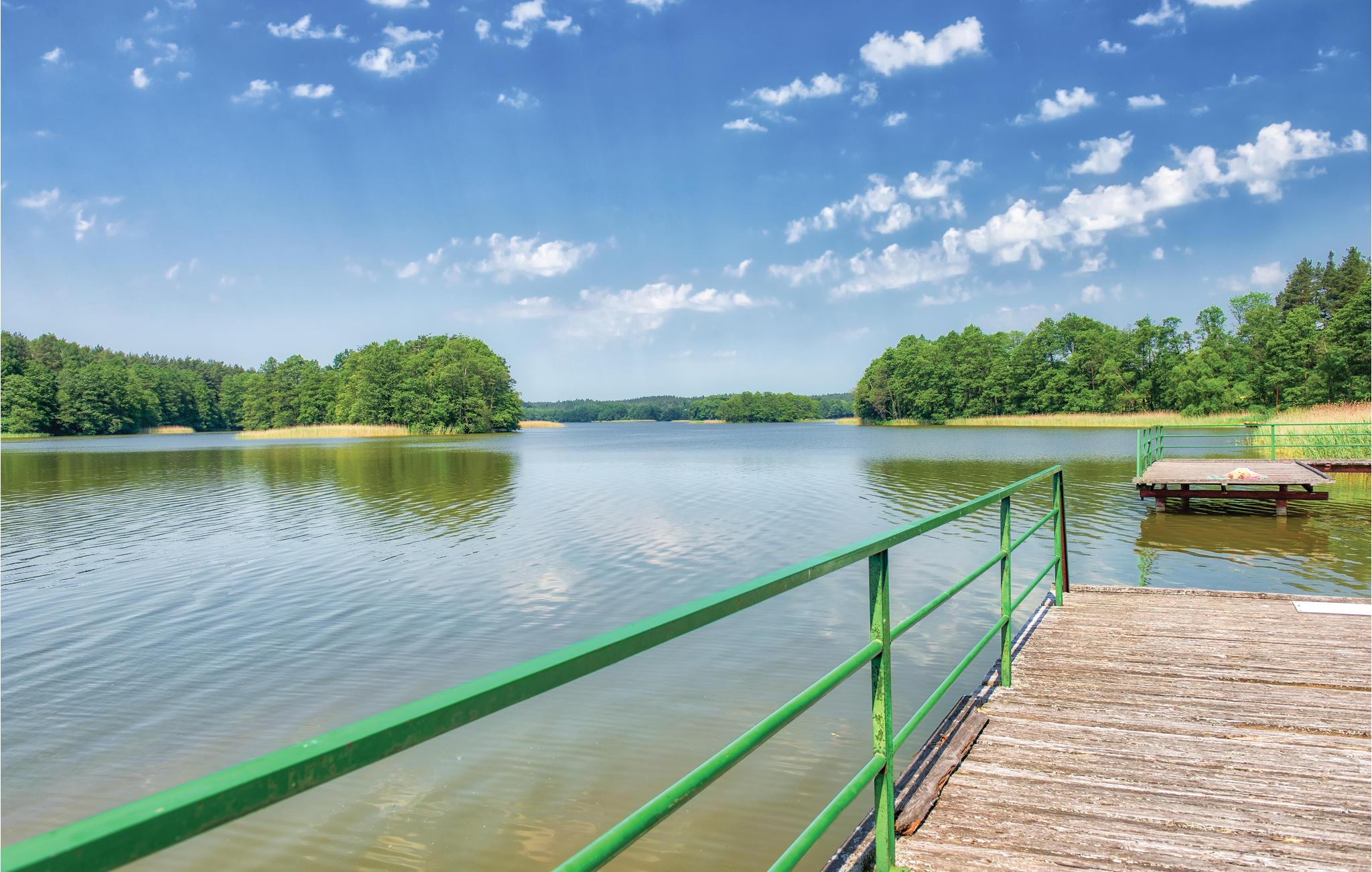 Dette store feriehus ligger i den lille by Pasym. Huset ligger på en indhegnet grund, ved en vej, der ligger lige ud til søen. Her er også en dam. I haven er der grill og havemøbler til hyggelige måltider under åben himmel og grunden grænser op til en offentlig søbred, hvor de også er badebroer. I kan også bade i svømmehallen fire km væk. Søen Kalwa er et paradis for lystfiskere. Et område i søen er afgrænset som stillezone. Her er både I og jeres husdyr hjerteligt velkomne.