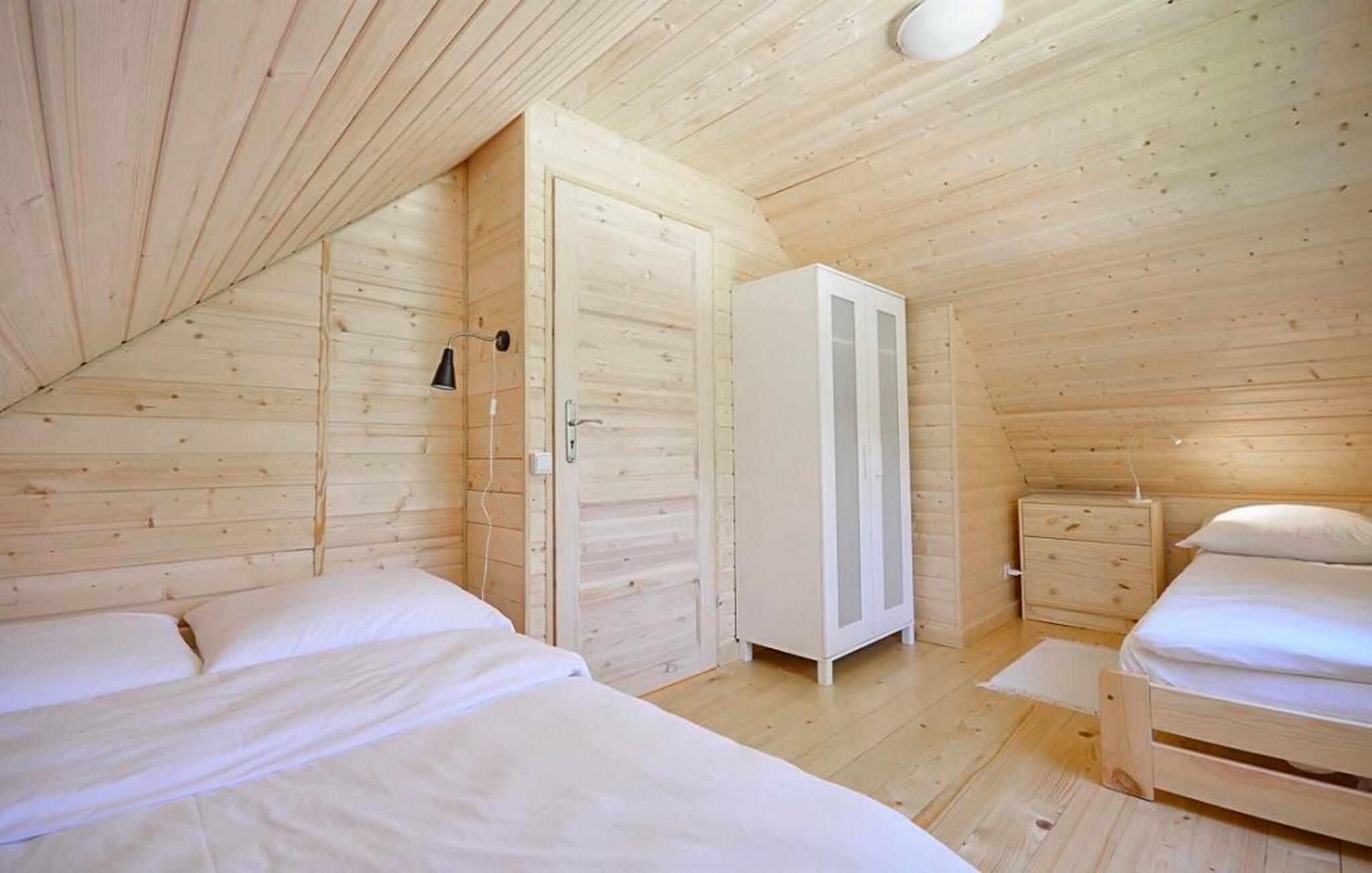 Tilbring jeres afslappende ferie i dette hyggelige træhus nær stranden.