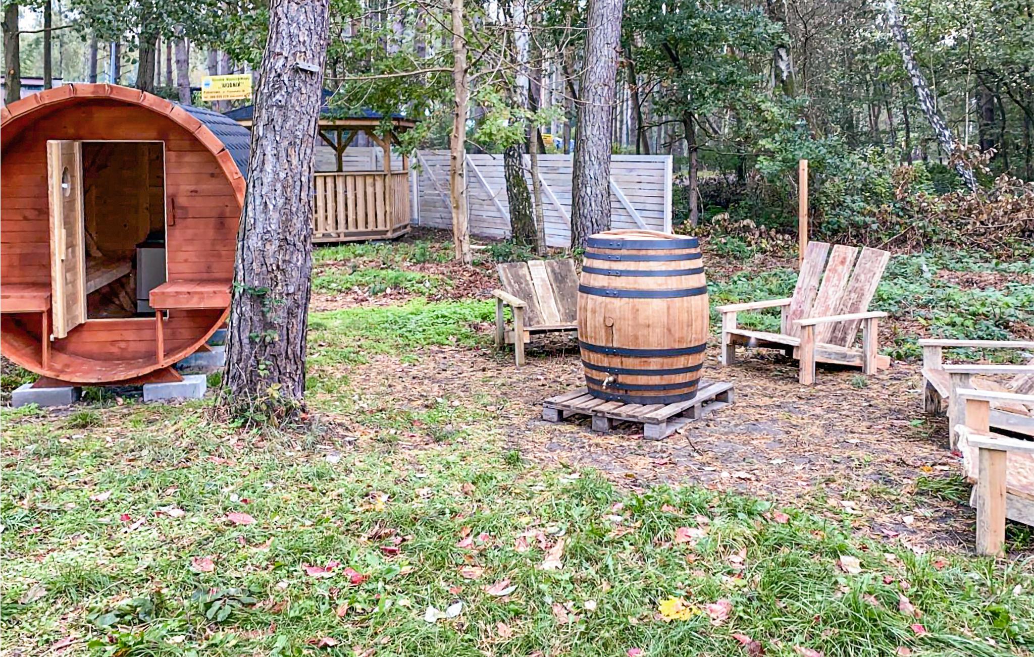 Tilbring en afslappende ferie med jeres familie og jeres hund i denne træhytte i et indhegnet område. Sommerhuset er udstyret med alt hvad I behøver til jeres ferie ved den polske østersøkyst. Nyd jeres morgenkaffe og morgenmad på jeres terrasse. Børnene kan derefter lege i det familievenlige fællesområde. Her er masser af legetøj og en legeplads. Om aftenen kan I sidde rundt om bålet med de andre gæster og nyde en drink og bage snobrød.