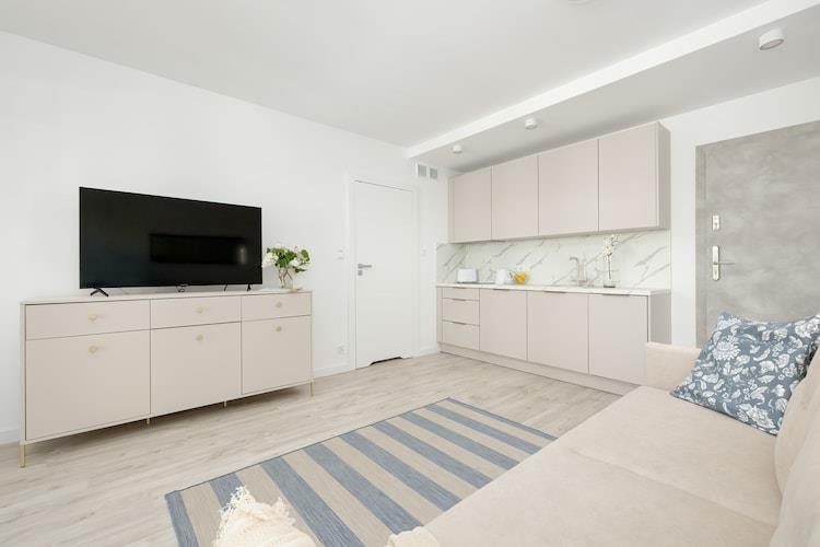Perfekt beliggenhed, i et roligt område, 450 m fra havet. 500 m til centrum af feriestedet. Det moderne lejlighedskompleks er et ideelt sted for en ferie. Gæsterne har adgang til en helårs indendørs swimmingpool. Den komfortable ferielejlighed ligger på anden sal (der er elevator) og er forberedt til 4 personer. Det har en balkon med et sæt havemøbler. Lejligheden består af en stue i forbindelse med køkkenet, et soveværelse og et badeværelse med bruser. I stuen er der en 2-personers sofa, bord og tv. Udstyret inkluderer en vaskemaskine, strygejern og hårtørrer. Centralvarme. Trådløst internet er tilgængeligt. Prisen for opholdet inkluderer: el- og vandforbrug, internet, brug af swimmingpool, parkering, barneseng og høj stol (forudgående reservation nødvendig). Pobierowo er et feriested i det vestpommerske voivodskab. Det ligger ved Østersøens kyster. Pobierowo tilbyder en ren strand og et bevogtet svømmeområde. Et perfekt sted for børn, atleter og elskere. Der er mange romantiske steder for to her. Der er et papegøjehus, et oceanarium og kæmpe oppustelige legepladser. Børn vil blive glade for et besøg i Hvalparken i den nærliggende Rewal (ca. 7 km), med rigtige havgiganter, og i Fairy Tale Cottage, hvor de vil mødes ansigt til ansigt med eventyrfigurer. Byens og hele regionens stolthed er den renoverede smalsporede jernbane, som giver dig mulighed for at tage på en charmerende tur til nærliggende feriesteder.