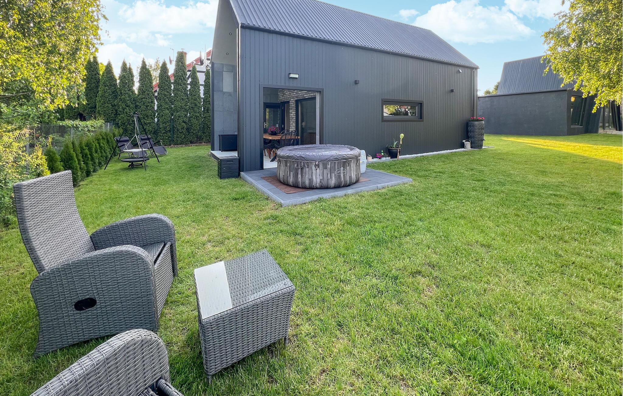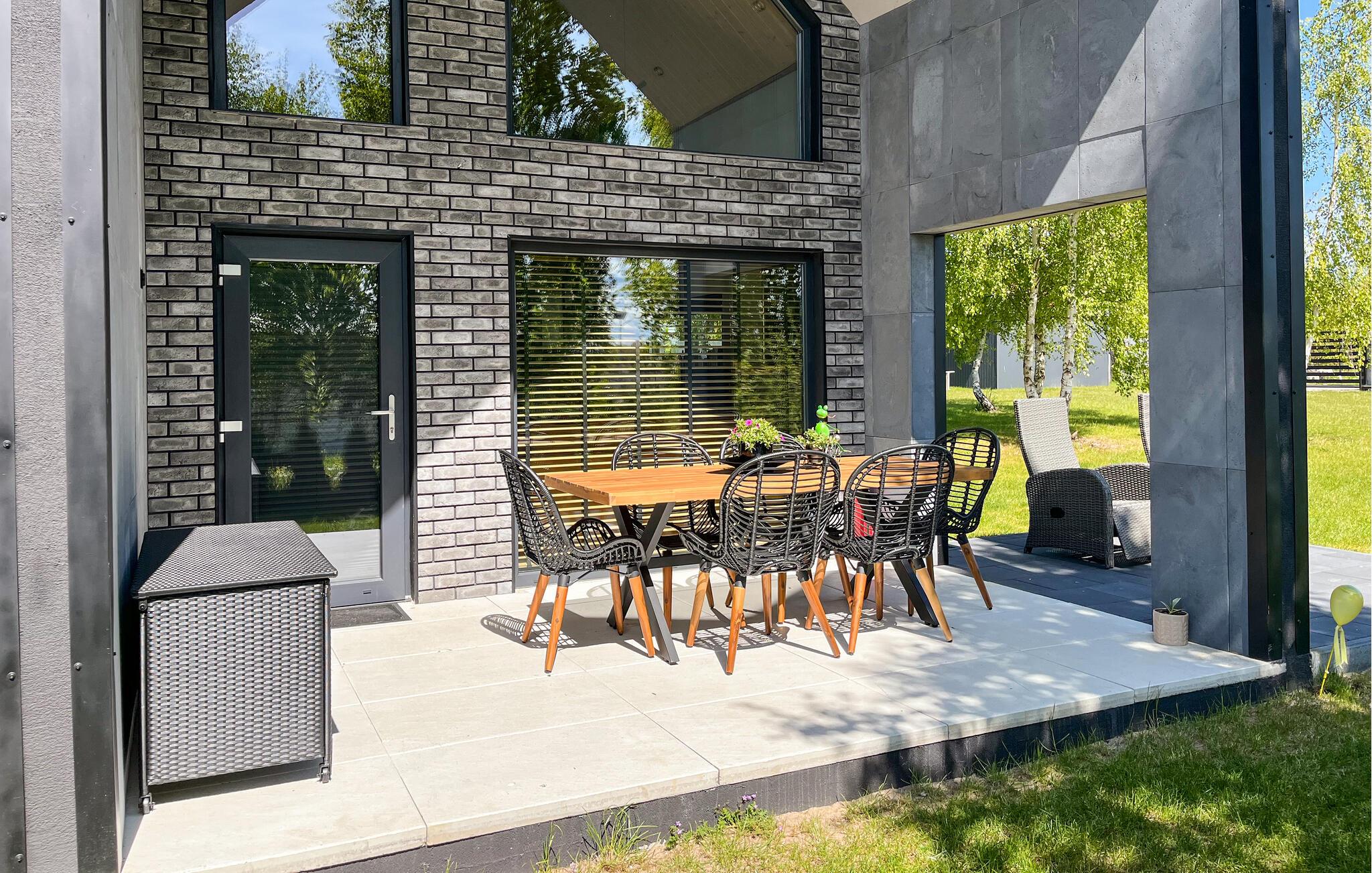 Dette stilfulde feriehus i to etager er noget særligt med sin kvalitetsindretning og store vinduespartier, der forbinder de lyse indendørs rum med haven. De lyse og indbydende omgivelser skaber en behagelig atmosfære, perfekt til afslappende stunder med familie eller venner. Opholdsområdet lægger op til hygge, mens det åbne køkken gør fælles madlavning til en fornøjelse. Haven og terrassen giver plads til afslapning og hyggelige grillaftener.