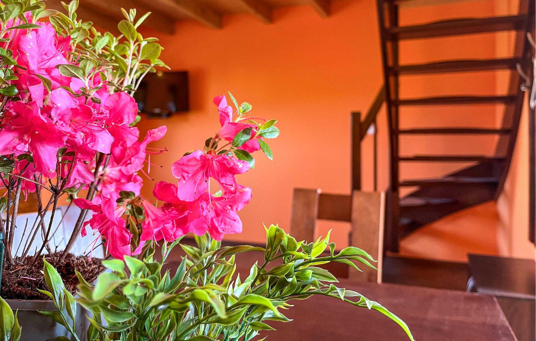 Nyd en afslappende ferie i dette hus, som tilbyder jer fred, privatliv og adskillige fritidsaktiviteter. Træd ind i det varmt designede opholdsområde med dens indbydende atmosfære. Slap af i den behagelige sofa eller nyd måltiderne sammen ved det store spisebord. Kombinationen af ??rustikt træ, lyse farver og funktionelle møbler skaber et behageligt opholdsmiljø.