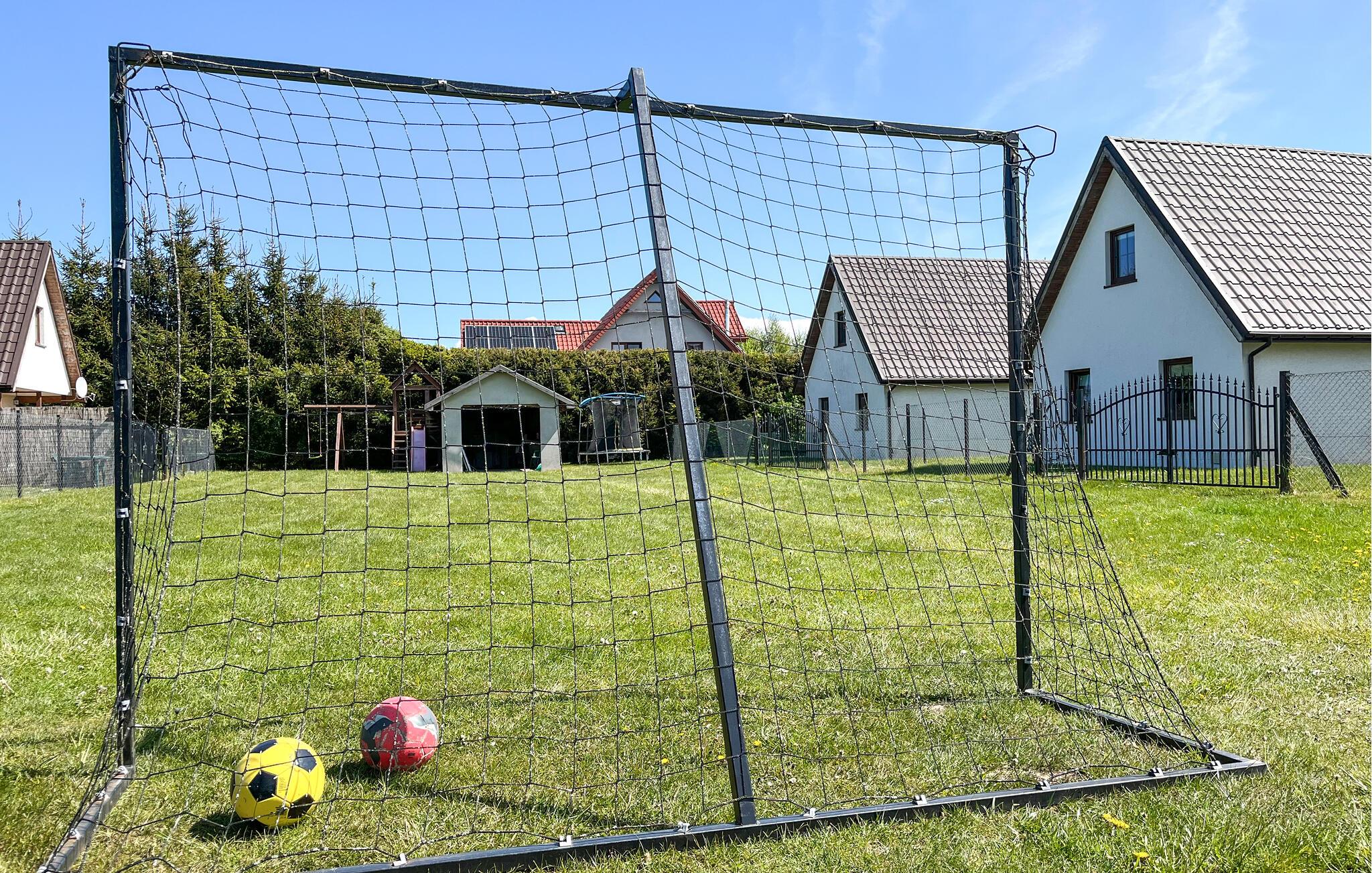 Tag plads på terrassen og start jeres morgen med morgenmad udendørs. Se børnene lege i den indhegnede have eller vær med til en fodboldkamp på græsplænen. En trampolin, en gynge og et legehus giver variation og motion. Her har både unge og gamle masser af plads til at boltre sig.