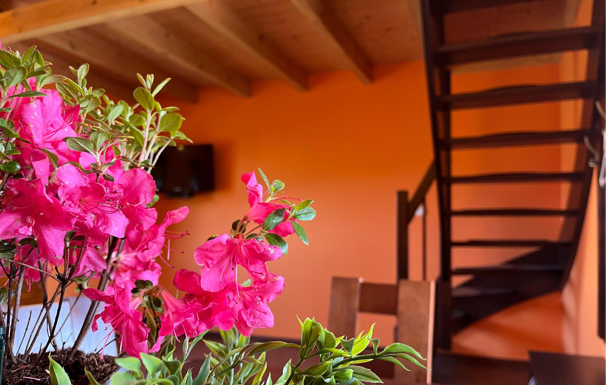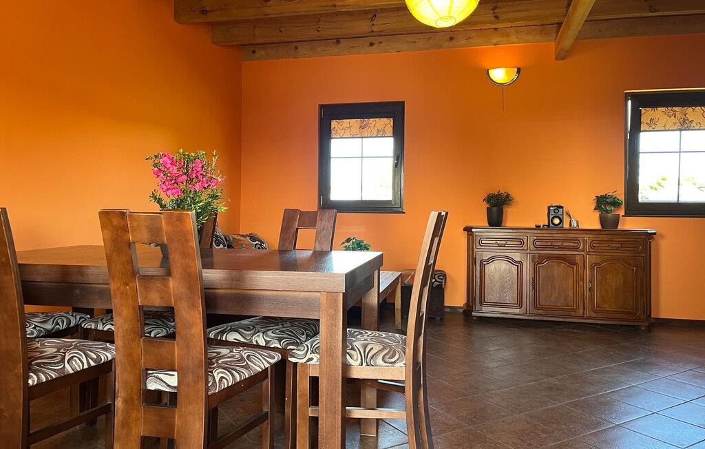Nyd en afslappende ferie i dette hus, som tilbyder jer fred, privatliv og adskillige fritidsaktiviteter. Træd ind i det varmt designede opholdsområde med dens indbydende atmosfære. Slap af i den behagelige sofa eller nyd måltiderne sammen ved det store spisebord. Kombinationen af ??rustikt træ, lyse farver og funktionelle møbler skaber et behageligt opholdsmiljø.