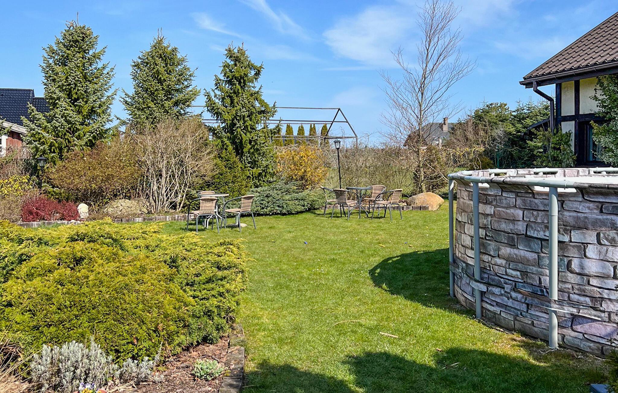 Bo i dette Podamirowo i dette skønne feriehus med privat pool. Selvom det er en lille by, er her mange spændende turistattraktioner. Huset ligger på en stor, indhegnet grund og er omgivet af en smukt anlagt have. Her er der god plads til dagens første kop kaffe og her er det dejligt at slappe af efter en begivenhedsrig dag mens maden steger færdig på grillen. Som noget helt særligt kan I hoppe i den udendørs pool lige når I har lyst. Huset er moderne indrettet med god smag. Ikke langt fra Podamirowo ligger den anden lille kystby Mielno, hvor I kan gå tur i Hortulus Spectabilis-havens labyrint.