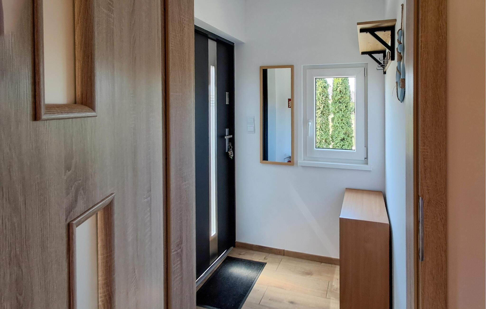 Hyggeligt træhus i byen Podamirowo. Det er enkelt og funktionelt indrettet. Dette er det perfekte sted at slappe af med en hund. Dejlige og rolige omgivelser til vandreture. I har en grill og en legeplads til rådighed. Ved Jamnosøen er der muligheder for fiskeri og vandsport. Vi anbefaler en udflugt til Kolobrzeg (40 km). Her finder I mange turistattraktioner og forskellige restauranter, hvor I kan smage lokale specialiteter. Vi byder jer hjertelig velkommen til en ferie ved den polske kyst.