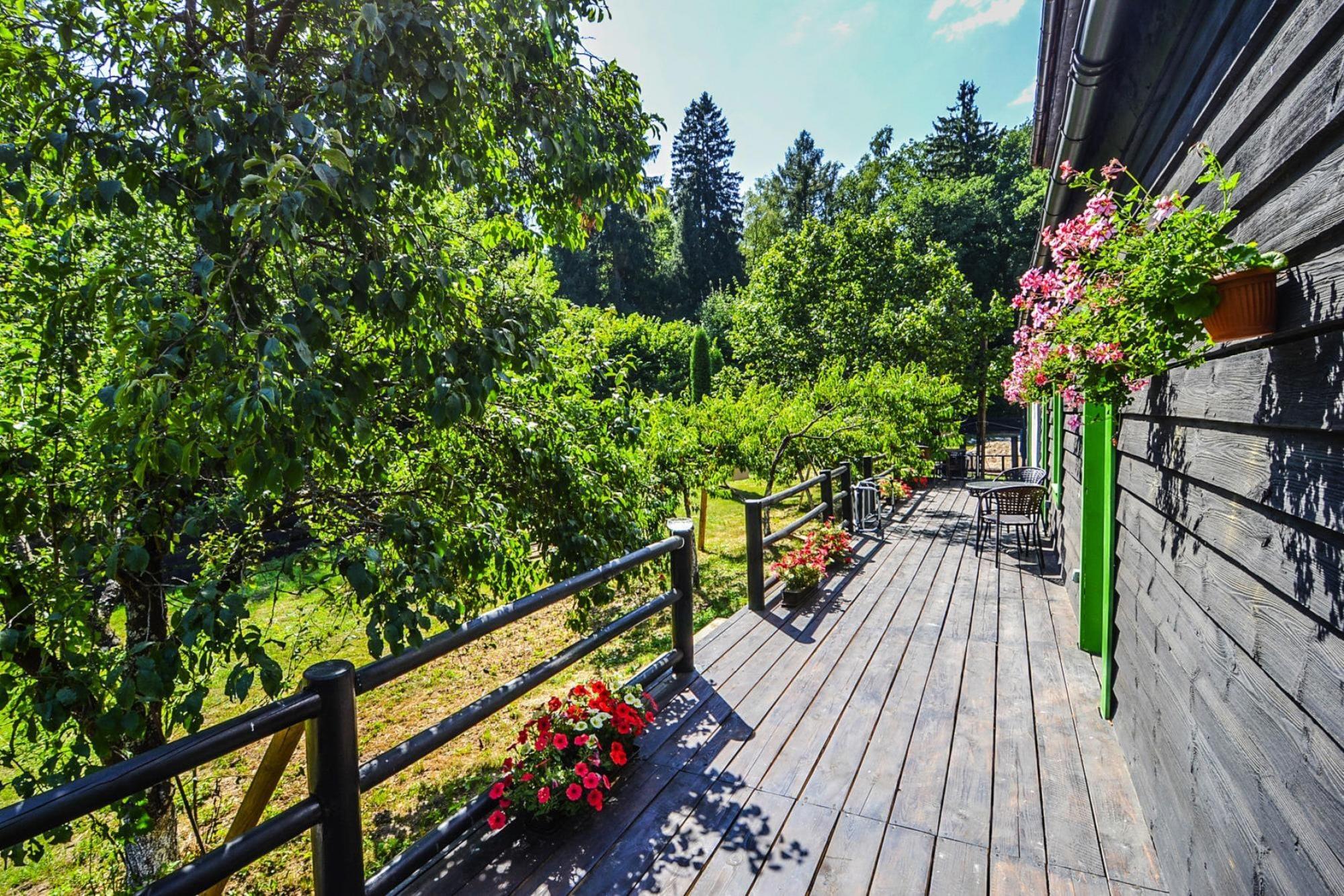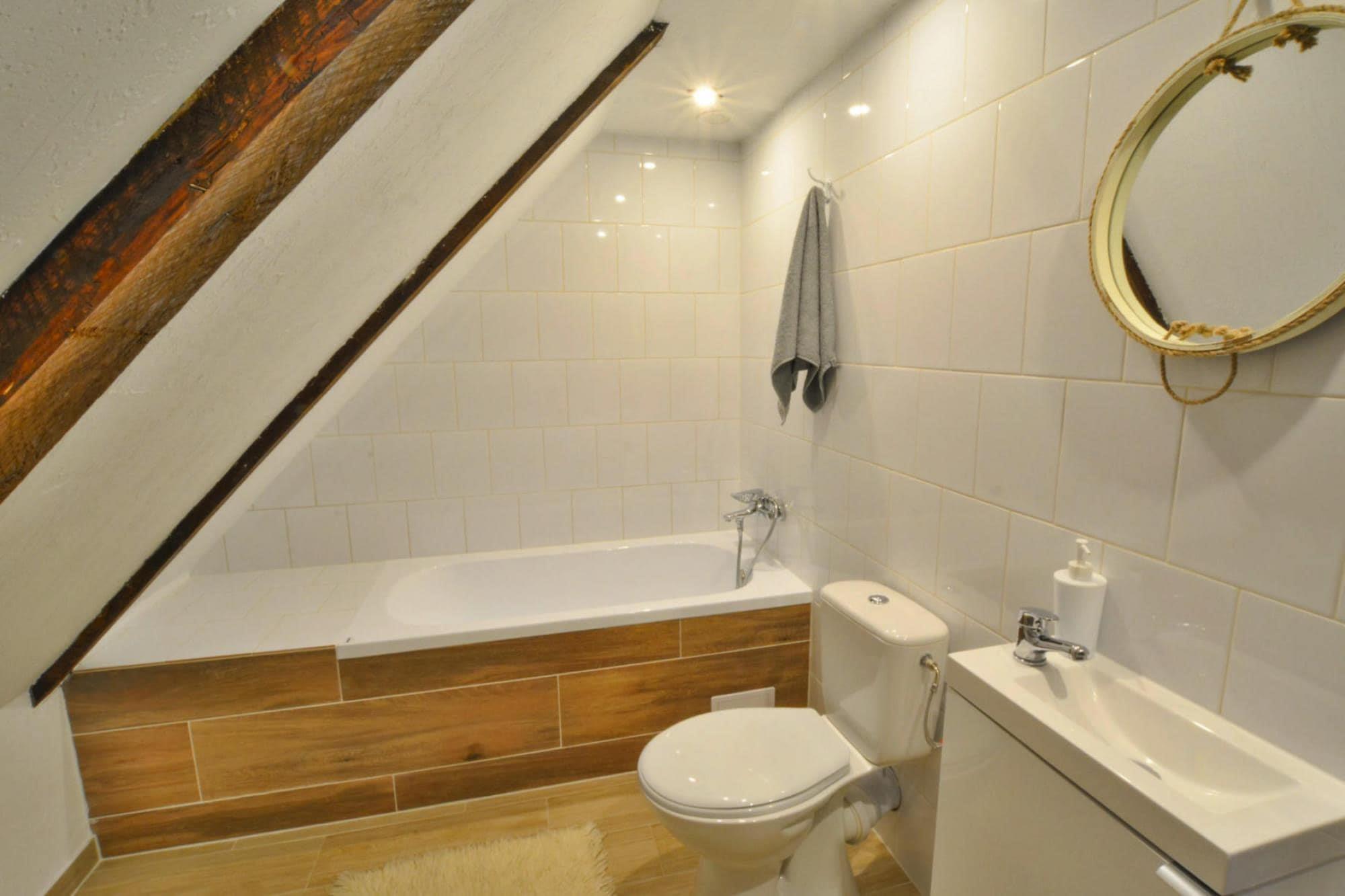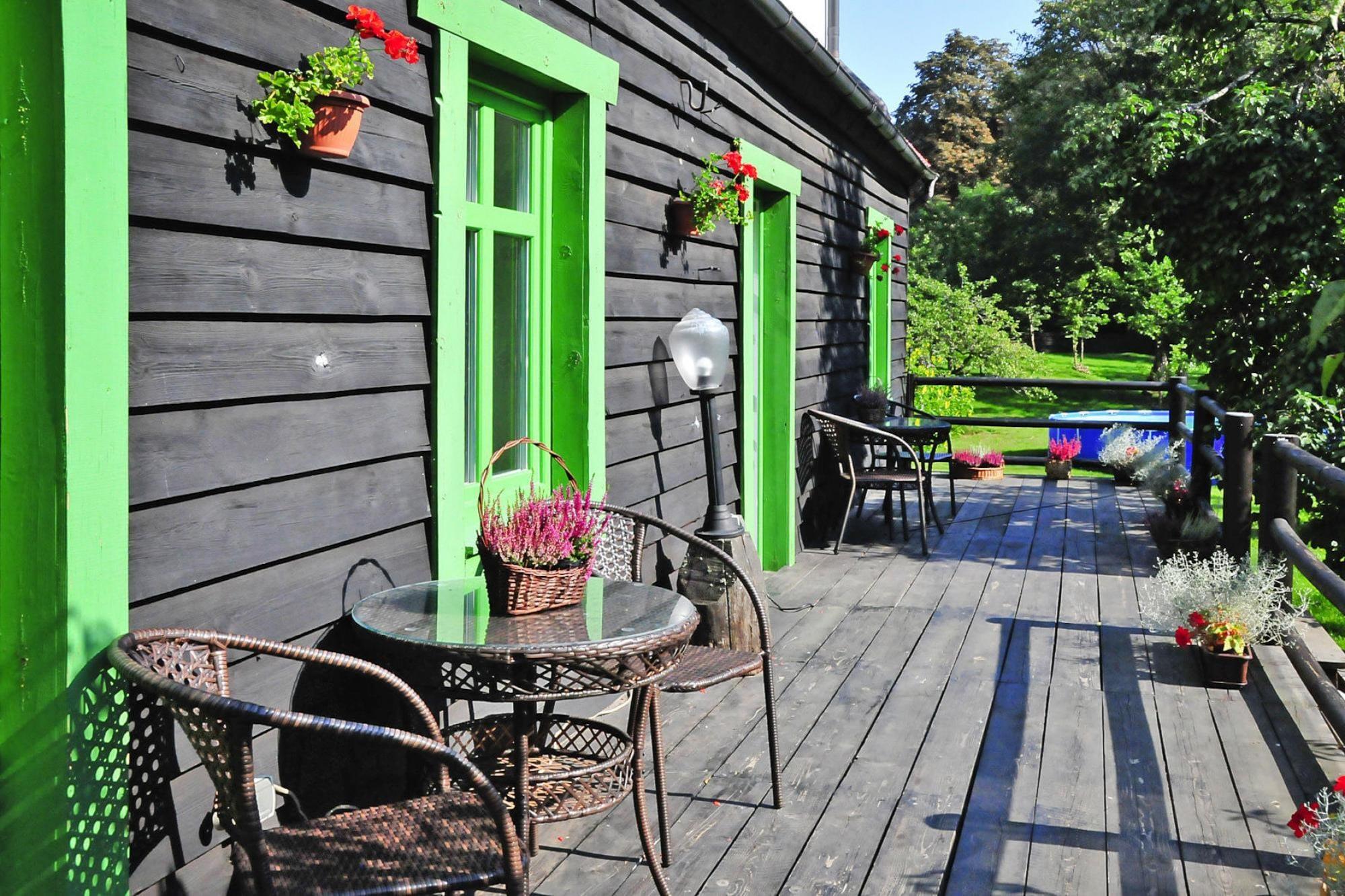 Midt i skoven, i en oase af fred og ro, ligger et komfortabelt feriehus i en restaureret skovfogedhytte. Gæsterne råder over hele 10.000 m2 privat areal - en ideel ramme for alle former for familiespil og underholdning. Feriehuset er i 2 etager. I stueetagen er der en rummelig stue med stort bord, pejs og TV. Fra stuen er der direkte udgang til terrassen med udsigt over den private dam. I stueetagen er der 3 separate soveværelser, 4 badeværelser (3 med bruser, 1 med badekar) og et veludstyret køkken (inklusive komfur, ovn, kaffemaskine, mikroovn, opvaskemaskine). På første sal er der yderligere 5 soveværelser og 3 badeværelser (2 med badekar, 1 med bruser). Der er også et ekstra tekøkken ovenpå. Centralvarme. Huset er udstyret med vaskemaskine. Trådløst internet er tilgængeligt. I det velholdte område kan gæsterne nyde en sommer swimmingpool (vandet er ikke opvarmet, åbent fra 15. juni til 15. september), en parkeringsplads, en legeplads, haven shelters, bålplads og grilludstyr. Der er også en charmerende dam med en romantisk bro. Ejeren af ??anlægget tilbyder lokale produkter, som hun personligt tilbereder: hjemmebagt brød, syltetøj og andre konserves. Prisen for opholdet inkluderer: sengelinned, håndklæder, el- og vandforbrug, ophold med hund (max 1), slutrengøring, parkering, internet. Attraktioner i området: Denne placering er ikke kun hvile og afslapning, men også svampeplukning, skovvandring, cykling og bærplukning. Den fred og ro, der hersker her, giver dig mulighed for at bryde væk fra hverdagen, fra livets høje tempo og nyde fuglesangen, frøernes kvækken og frem for alt ren luft. Der er cirka 20 km til den store provinsby (Koszalin), hvor der er talrige restauranter, caféer, butikker og store indkøbscentre. Der er også et stort, attraktivt vandland i Koszalin. Den nærmeste strand ved havet er i Lazy (også Mielno og Dabki i nærheden).
