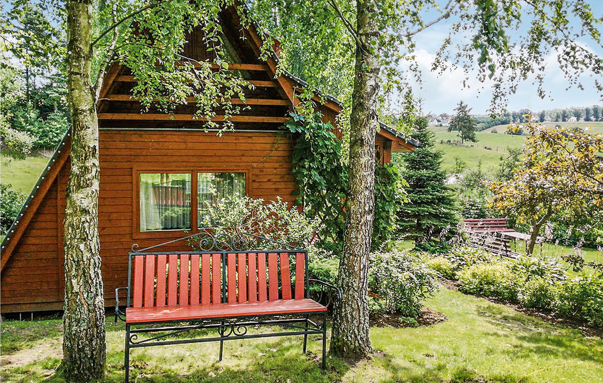 Glæd jer til en ferie i et feriehus ikke langt fra en sø.