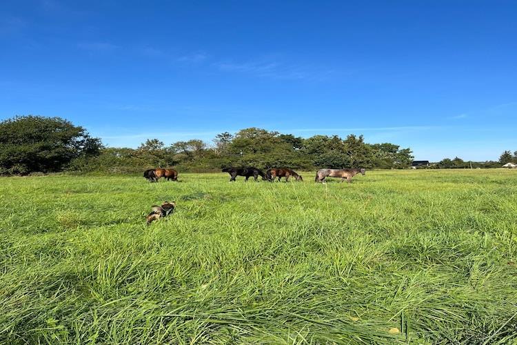På 1. etage: (åbent køkken(spisebord, elkedel, cooker, komfur(Komfur med to kogeplader, elektrisk), mikrobølgeovn, køle-fryseskab), Stue/soveværelse(dobbeltsovesofa, Fjernsyn, sofahjørne), soveværelse(dobbeltseng), badeværelse(bruser, håndvask, toilet)) hesteopstaldning, Internetadgang, Ridning, have(deles med andre gæster, indhegnet, anlagt have, 3 hm2), havemøbler, solstole, grill, parkering, trampolin, dam, legeredskaber, føntørrer, Gyngestativ