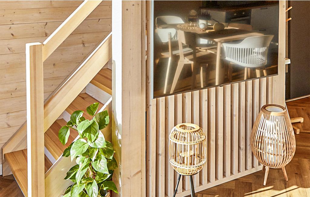 Velkommen til dette hyggelige rækkehus, der med sine hyggelige værelser er de optimale rammer for en hyggelig stund med familien. Efter en dejlig dag på ferie kan I finde jer tilpas i sofaen i stuen, spille brætspil, spise sammen og gennemgå, hvad I har oplevet sammen i stilfulde rammer.