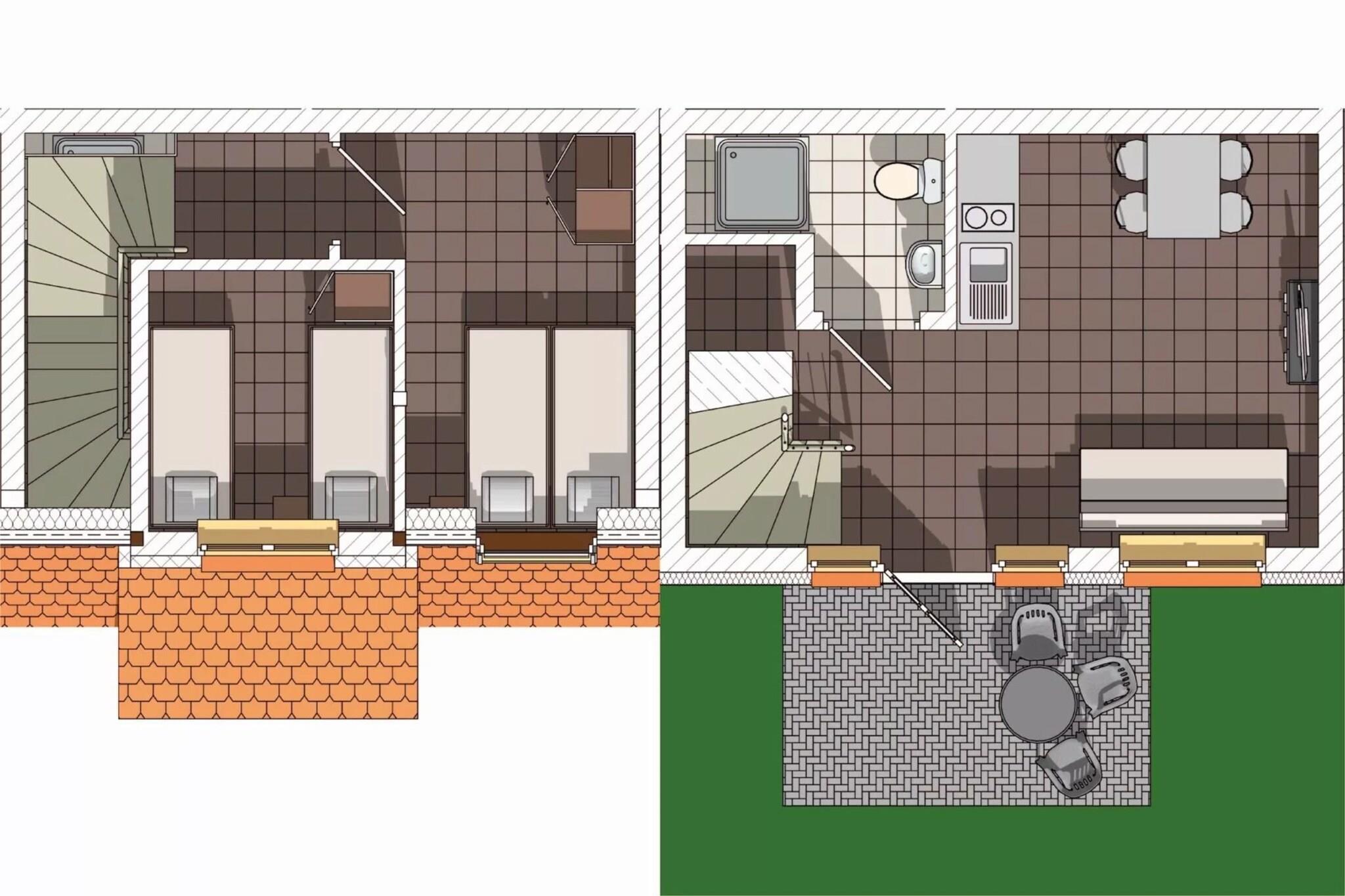 Stueetage: (åbent køkken(kogeplade(Komfur med to kogeplader, elektrisk), elkedel, kaffemaskine, opvaskemaskine , køle-fryseskab), stue / spisestue(dobbeltsovesofa, Fjernsyn(fladskærm, Tyske TV-kanaler), spisebord(4 personer)), badeværelse(bruser, håndvask, toilet, føntørrer)) På 1. etage: (soveværelse(dobbeltseng), soveværelse(enkeltseng, enkeltseng)) Reception, Internetadgang, Legeområde, Græsplæne, vaskemaskine(deles med andre gæster, betalt), varme(central), terrasse, have(deles med andre gæster, indhegnet, 3000 m2), havemøbler, solstole, grill(trækul), parkering, trampolin(deles med andre gæster), Parasol, sandkasse(deles med andre gæster), rutsjebane(deles med andre gæster), bordtennisbord(deles med andre gæster), fitnessapparater(deles med andre gæster), barnestol, strygebræt, strygejern, Gyngestativ, baby crib(free)