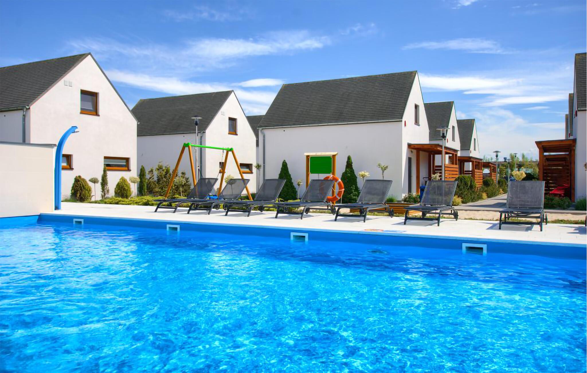 Nyd den fælles pool, legepladsen og beachvolleybanen i ejerlejligheden, som er en drøm for hele jeres familie. Legerummet for alle børn i komplekset sørger for ekstra underholdning og er et ideelt sted til fælles aktiviteter.