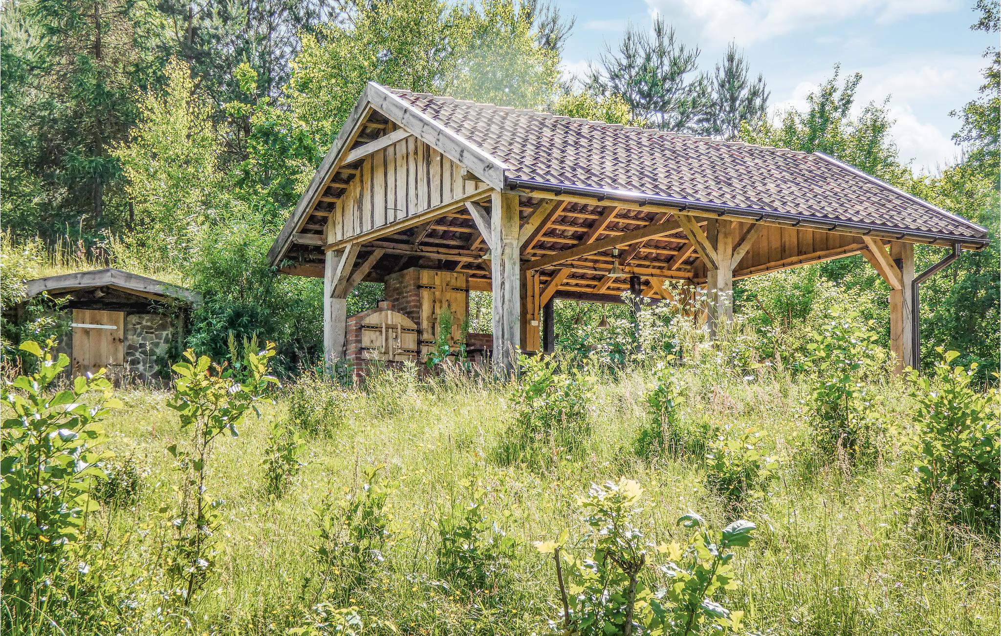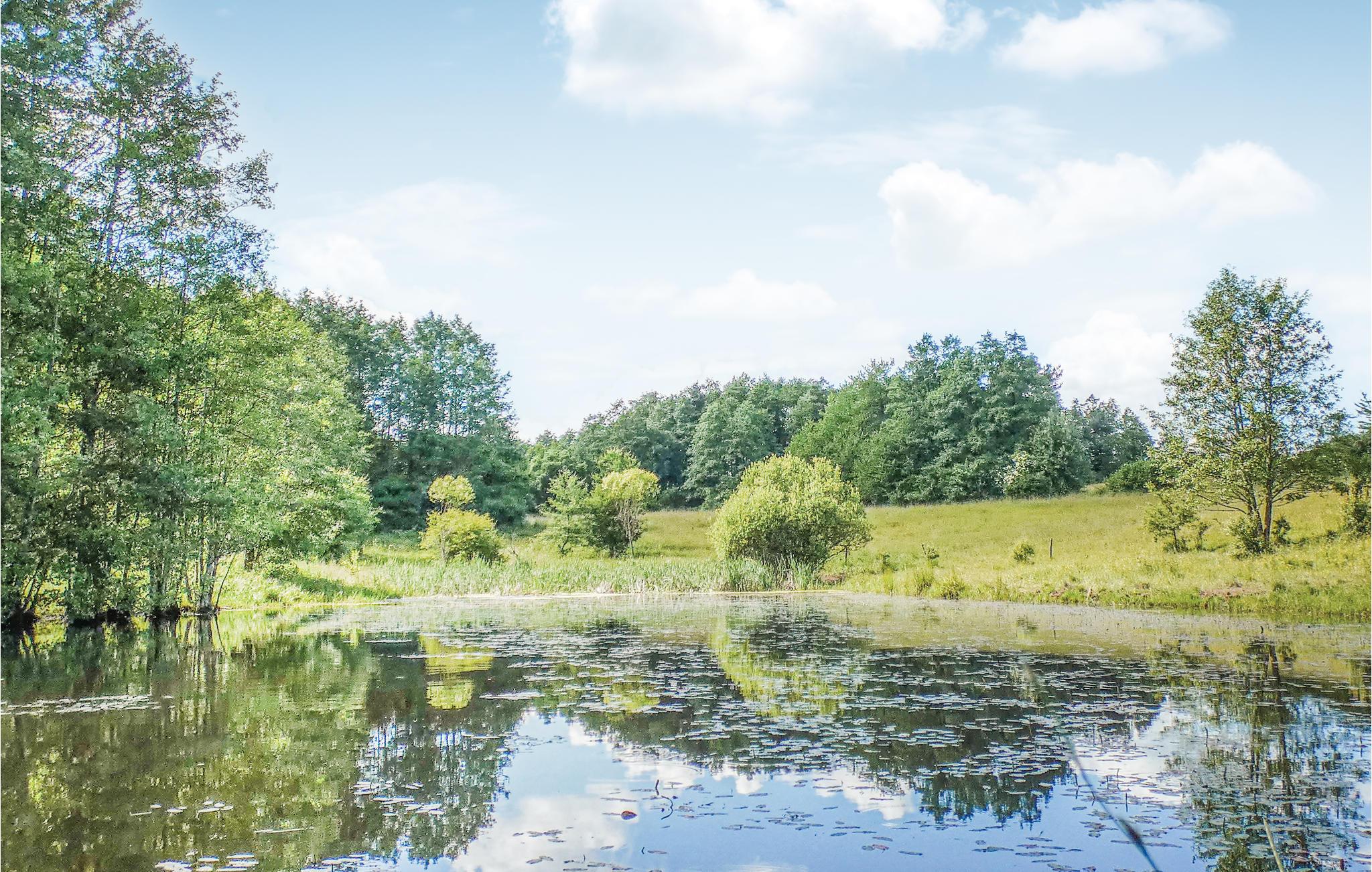 Den beskyttede naturgrund tilbyder børnene attraktive udendørs legemuligheder. Nyd den friske skovluft, mens I spiller badminton eller fodbold, brug brødovnen og glæd jer til hyggelige aftener i det indbydende grillområde. Udforsk søen med robåd, kano eller vandcykel. En smukt beliggende, stor dam, der vrimler med fisk, ligger på ejendommen. Et andet hus på grunden kan lejes.