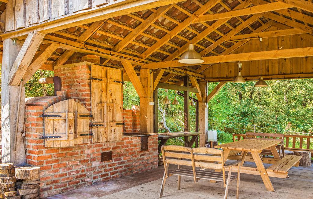 Dette rummelige feriehus byder jer velkommen på en unik beliggenhed i landsbyen Roje og tilbyder naturelskere et charmerende tilflugtssted at slappe af. Lad udsigten over det omkringliggende grønt inspirere jer, mens I laver mad og glæd jer til hyggelige måltider i den komfortable spisestue. Nyd den rustikke atmosfære med rolig læsetid eller afslut en begivenhedsrig dag med et glas vin på sofaen.