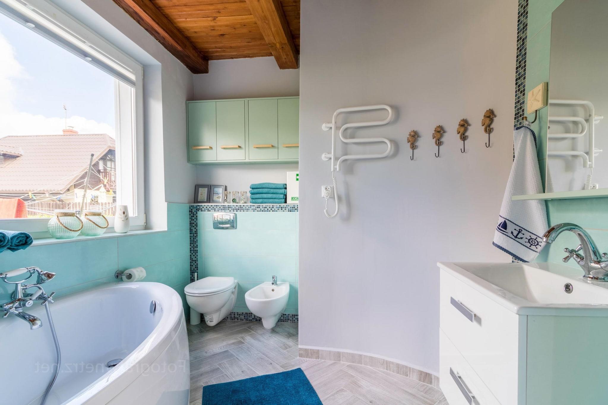 Et roligt villakvarter i udkanten af det attraktive Østersø-resort (Rowy), nær en skov. Stranden ligger 1,2 km væk, og bymidten ligger cirka 800 meter væk. Dette komfortable, rummelige feriehus ligger på en privat, indhegnet grund. Huset har to etager. I stueetagen er der en stue med adgang til terrassen (med sovesofa, TV og pejs), et stort, veludstyret køkken med spiseplads og to badeværelser (et med bruser og et med badekar). Et af badeværelserne har vaskemaskine/tørretumbler. På første sal er der fire separate soveværelser (et med balkon). Huset har en overdækket terrasse med havemøbler, liggestole og pejs. Huset opvarmes af en pejs (brænde er inkluderet i prisen). Der er gulvvarme i badeværelserne og køkkenet. Der er Wi-Fi, og der er sikker parkering. Inkluderet i prisen: Sengelinned, håndklæder, el, vand, brænde, varme, slutrengøring, internet og parkering er inkluderet. Barneseng og højstol kan bestilles. Byen Rowy ligger mellem Østersøen og Gardnosøen. Landsbyen kan prale af et bredt udvalg af velrenommerede barer og restauranter. En kort gåtur fra feriehuset gennem byens centrum og over Lupawa-floden, der forbinder det åbne hav med søen, fører til portene til Slowinski Nationalpark (den tredjestørste i Polen). Talrige charmerende vandrestier giver dig mulighed for at besøge dens hovedattraktioner: Czolpino fyrtårn, en oversvømmet skov, skiftende klitter, hedeområder, en fyrvogterbosættelse og udsigtspunkter over Gardnosøen. En gåtur langs klitterne, der kan blive op til 40 meter høje, er en utrolig oplevelse. Parken strækker sig cirka 35 km langs kysten, mellem Rowy og en anden attraktiv badeby, Leba. Stranden i Rowy er usædvanlig bred. I landsbyen er det værd at besøge fiskerihavnen og den neoromanske kirke. Fiskeentusiaster tiltrækkes af Lupawa-floden.