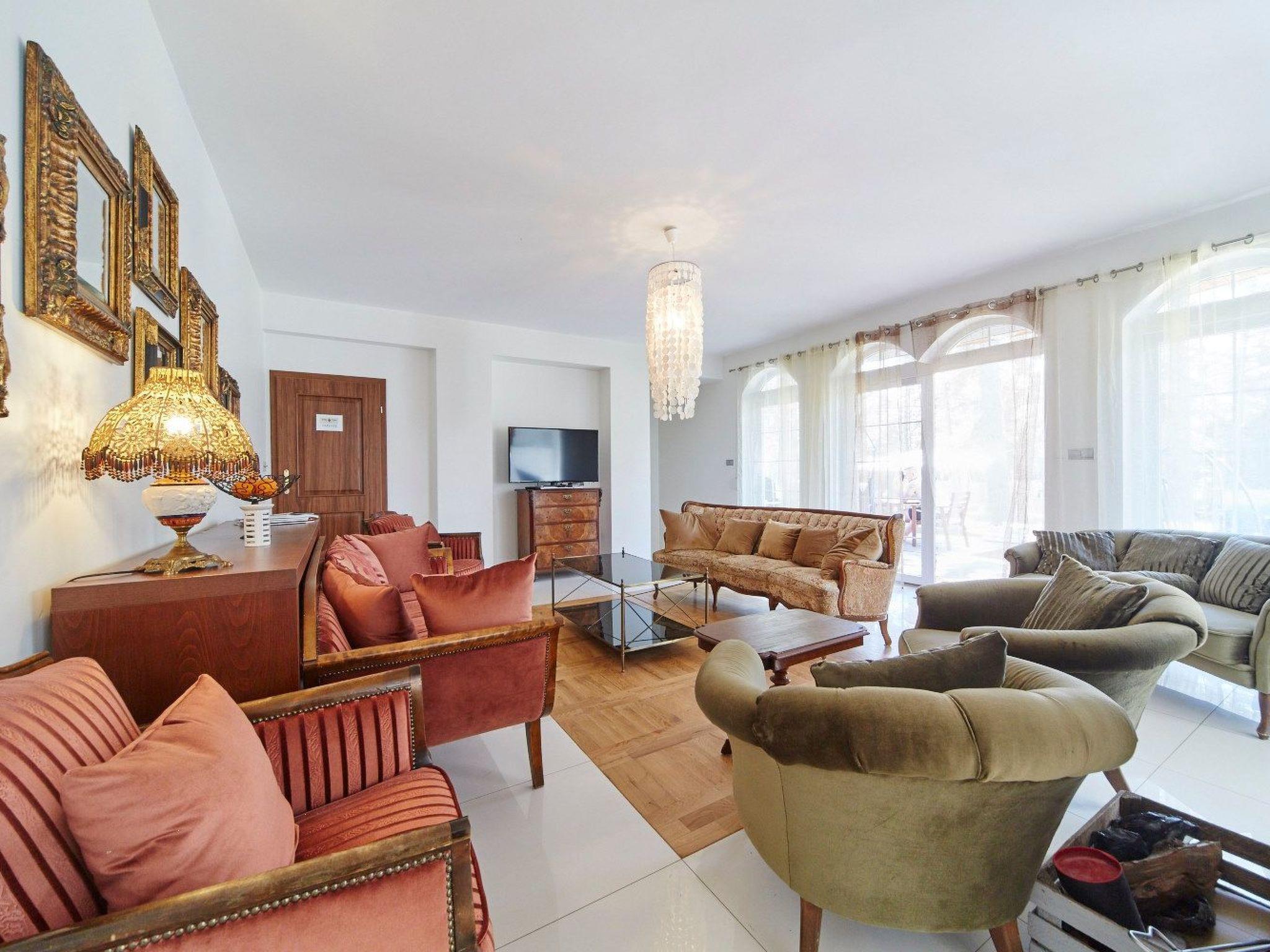 We offer a comfortably furnished living room with a fireplace, which creates a unique atmosphere, especially on colder days. The living room is connected to the terrace, allowing direct access to the garden. In addition, we offer a professional coffee machine, which is sure to please lovers of this aromatic pleasure. For moments of relaxation, we have prepared a club lounge with billiards and a children's play area, and for those seeking a moment of relaxation, a Sauna.