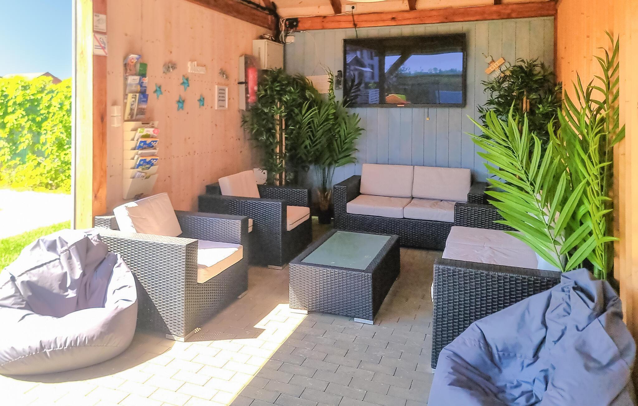 Den rummelige, indhegnede fælleshave giver jer adskillige attraktive legemuligheder for børnene. snup en frisk dukkert i den store fælles pool, lad batterierne op i liggestolene eller nyd bordtennisbordet, basketballkurven eller darttavlen. Snak med andre gæster i den hyggelige lounge eller omkring grillen eller gå langs stranden ved solnedgang.