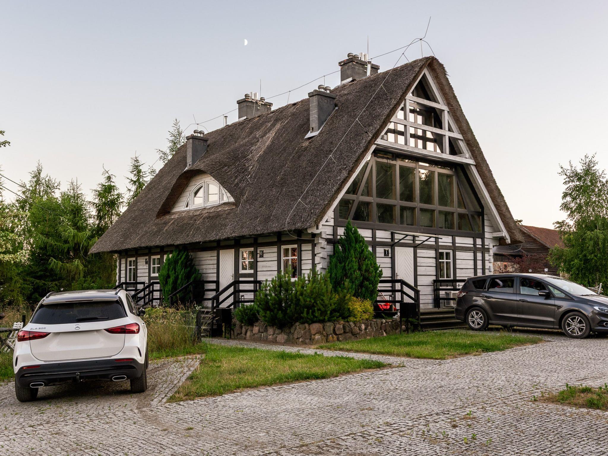 Apartment house "Szelagówka", 2 storeys, built in 2016. 3 houses in the resort. 2 apartments in the property. Outside the resort, in a sunny position, 3 km from the lake, 3 km from the beach, in the countryside. For shared use: property 3'000 m2, large garden 300 m2 (fenced), meadow, lawn for sunbathing, swimming pool angular (seasonal availability: 01.May. - 30.Sep.). Shower/WC in the pool area, children's pool, volleyball court. In the house: reception, WiFi, central heating system (extra) bicycle rental. Breakfast full board possible (extra). Parking at the house. Shop 3 km, grocery 3 km, supermarket 12 km, bus stop 15 km, railway station 15 km, sandy beach 3 km. Riding stable 3 km, ski school 12 km, ice rink 12 km, children's playground 1 m. Nearby attractions: Jezioro Gieladzkie 2 km, Rzeka Krutyn 2 km. Please note: the photograph shows a typical example. Additional accommodations can be booked. Resort: 3 houses (10 independent apartments in total). The objects PL1175.200.1, PL1175.200.2, PL1175.201.1, PL1175.201.2 are located on the same plot. Each apartment with an independent entrance. Firewood for the fireplace for an additional fee of PLN 25 / box.