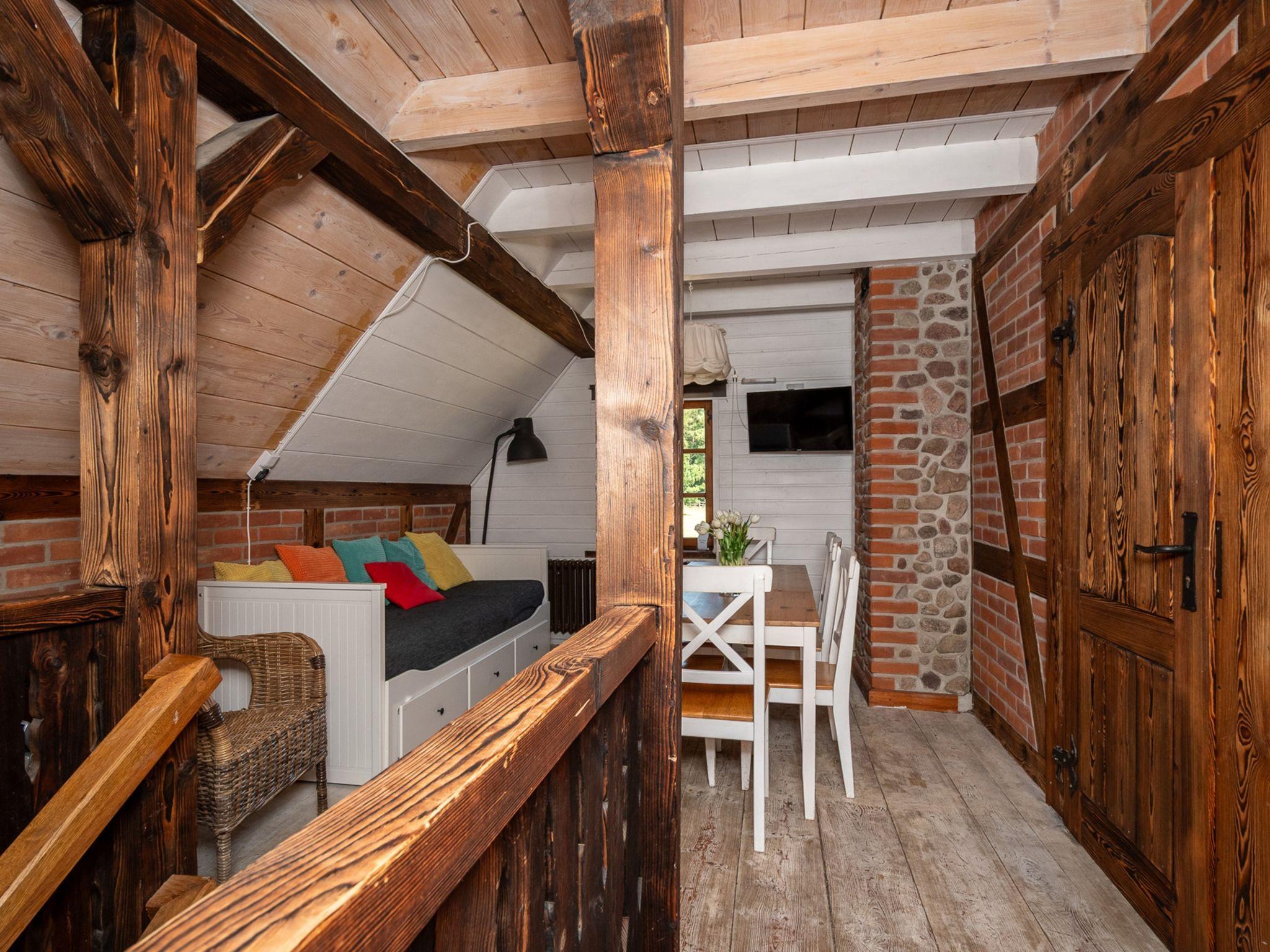"Szelagówka 100 m2", 3-room apartment 100 m2, on the upper floor. Comfortable and beautiful furnishings: living/sleeping room with 1 sofabed, open-hearth fireplace and satellite TV. 1 room with 1 bed and 1 double bed. 1 room with 1 bed and 1 double bed. Open kitchen (dishwasher, 1 induction hot plates). Shower/WC, Sauna. Beautiful view of the countryside. Facilities: sauna. Internet (WiFi). Please note: maximum 1 pet/ dog allowed. Private entrance, smoke alarm.