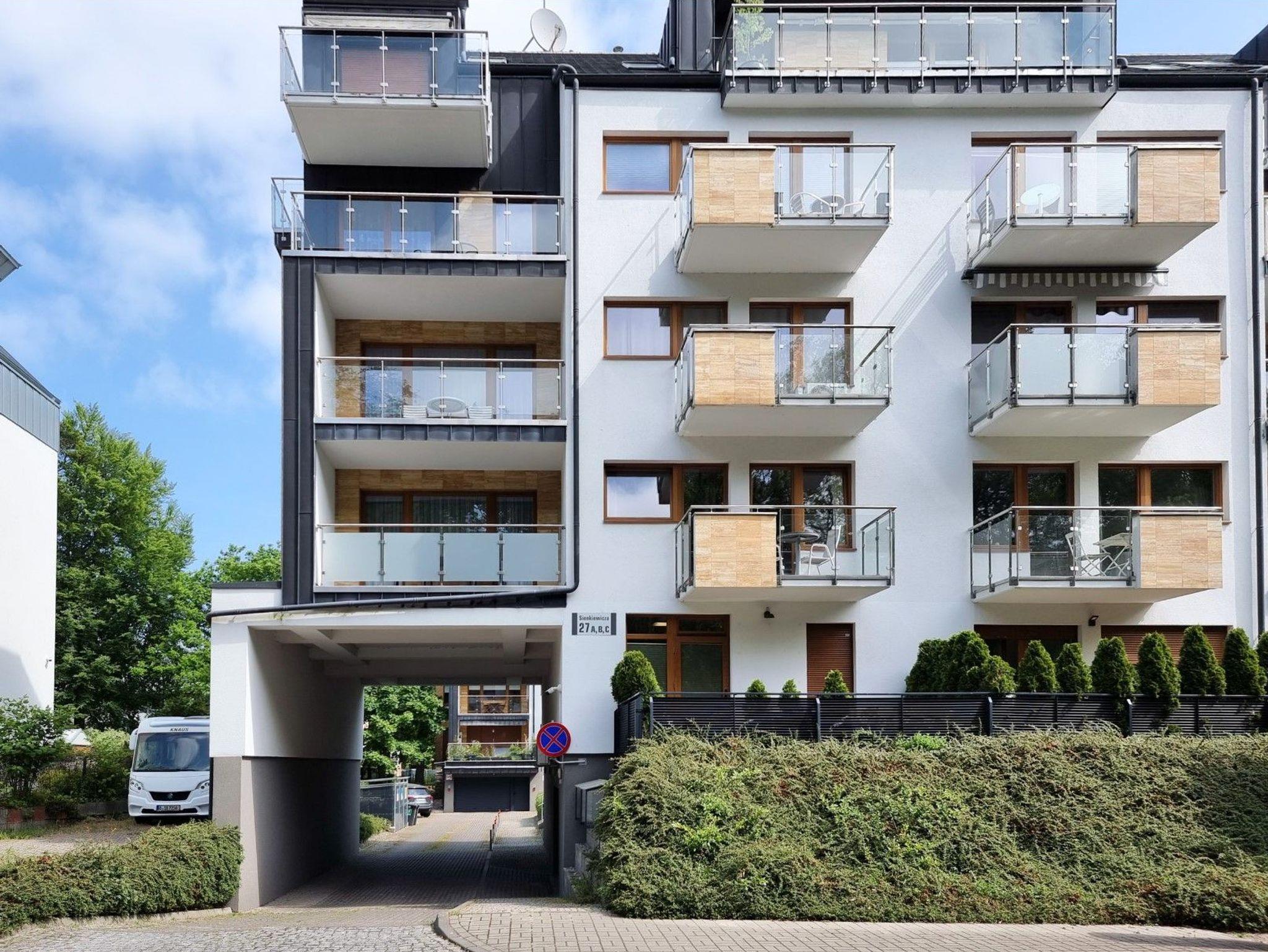 Die Wohnung befindet sich im Komplex Rezydencja Sienkiewicza, der im westlichen Teil des Kurviertels liegt. Grüne, ruhige Umgebung, direkte Nähe zum Wald und kurze Entfernung zur Promenade und zum Strand (ca. 300m) sind die Vorteile der Lage. In der Nähe gibt es auch einen kleinen Kinderspielplatz, Waldwanderwege, die Gesundheitspromenade, Sole-Graduierungstürme, einen Radweg entlang der 15 Kilometer langen grenzüberschreitenden Promenade, die winoujcie mit den Kurbädern auf der deutschen Seite der Insel Usedom (Ahlbeck, Heringsdorf, Bansin) verbindet. Ein idealer Ort für Gäste, die Ruhe und die Nähe zur Natur suchen.