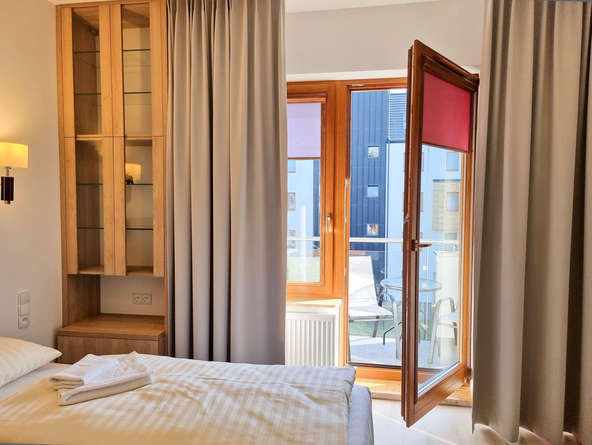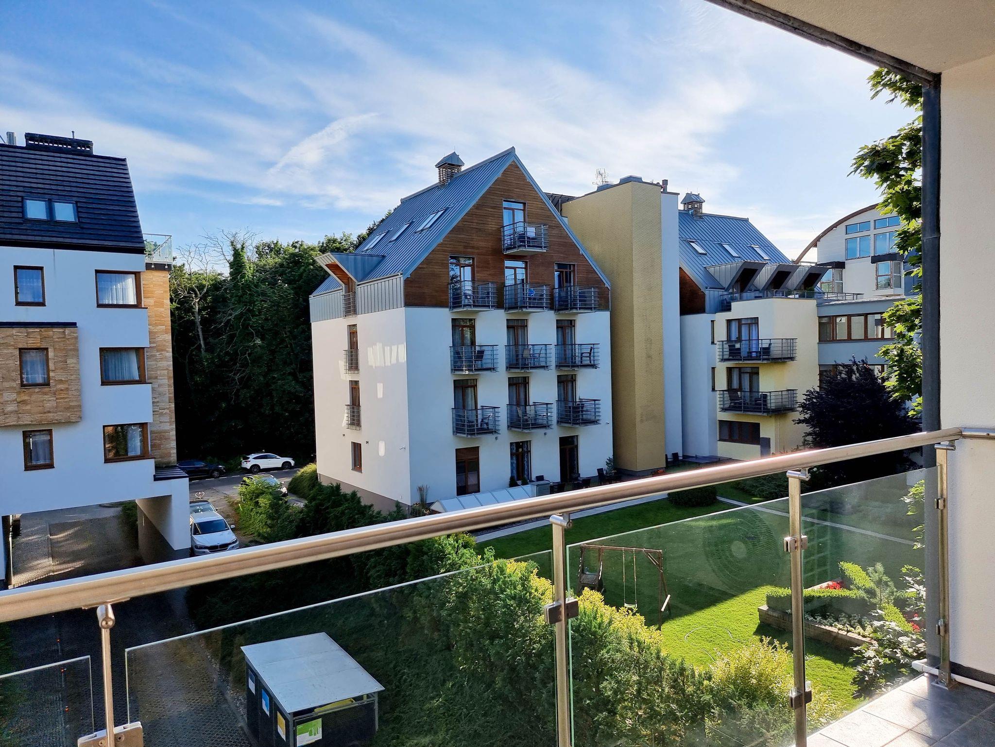 Die Wohnung befindet sich im Komplex Rezydencja Sienkiewicza im westlichen Teil des Kurviertels. Grüne, ruhige Umgebung, unmittelbare Waldnähe und kurze Wege zur Promenade und zum Strand (ca. 300m) sind die Vorteile der Lage. In der Nähe gibt es auch einen kleinen Spielplatz für Kinder, Waldspazierwege, die Promenade der Gesundheit, Gradierwerke, einen Radweg, der entlang der 15 Kilometer langen grenzüberschreitenden Promenade verläuft, die Swinemünde mit den auf der deutschen Seite gelegenen Cearic-Kurorten verbindet Insel Usedom (Ahlbeck, Heringsdorf, Bansin). Perfekte Lage für Gäste die Ruhe und Nähe zur Natur suchen.