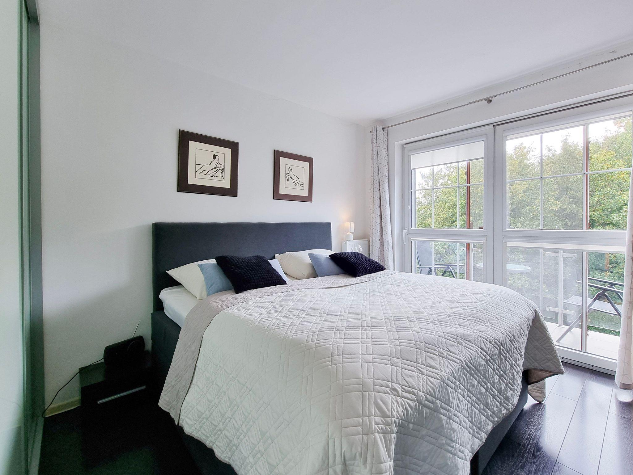 Wohnung mit Balkon von 56m2 befindet sich im 4. Stock in einem Gebäude mit Aufzug. In einem großzügigen Raum vereint es die Funktion eines Schlafzimmers, einer Sitzecke und eines Esszimmers. Die Küchenzeile ist mit allen notwendigen Utensilien für die Zubereitung und den Verzehr von Mahlzeiten ausgestattet, wie z.B. einem Kühlschrank mit Gefrierfach, einem Elektroherd mit zwei Heizstufen, einer Überlauf-Kaffeemaschine, einem Geschirrspüler, einem Wasserkocher und einem Esstisch mit 4 Stühlen. Im Wohnbereich gibt es ein Sofa mit Schlaffunktion (nach dem Ausklappen 140x200cm), einen Sessel, eine Bank und einen Fernseher. Das Schlafzimmer hat ein bequemes, hohes Doppelbett (180x200cm) und einen Kleiderschrank. Die Fenster der Wohnung und des Balkons sind nach Süden ausgerichtet. Im Essbereich gibt es Oberlichter, die nach Westen ausgerichtet sind. Das Badezimmer hat eine Duschkabine, ein Waschbecken und eine Waschmaschine.