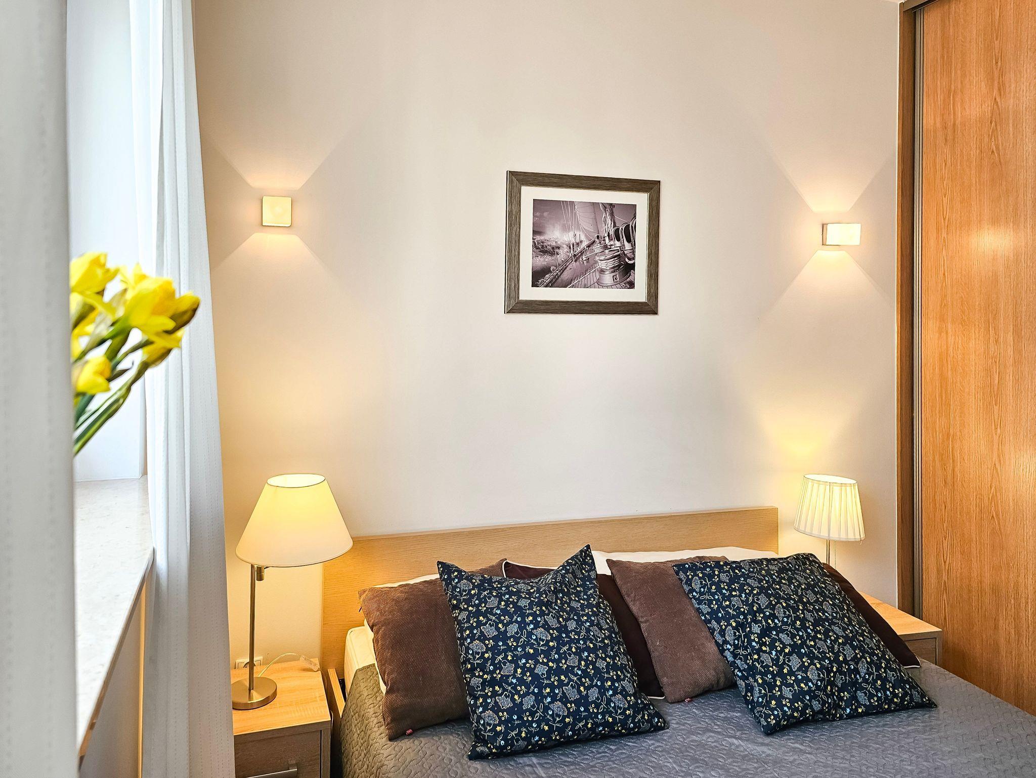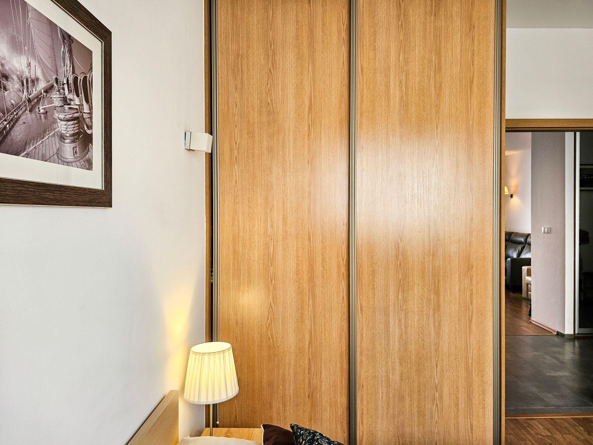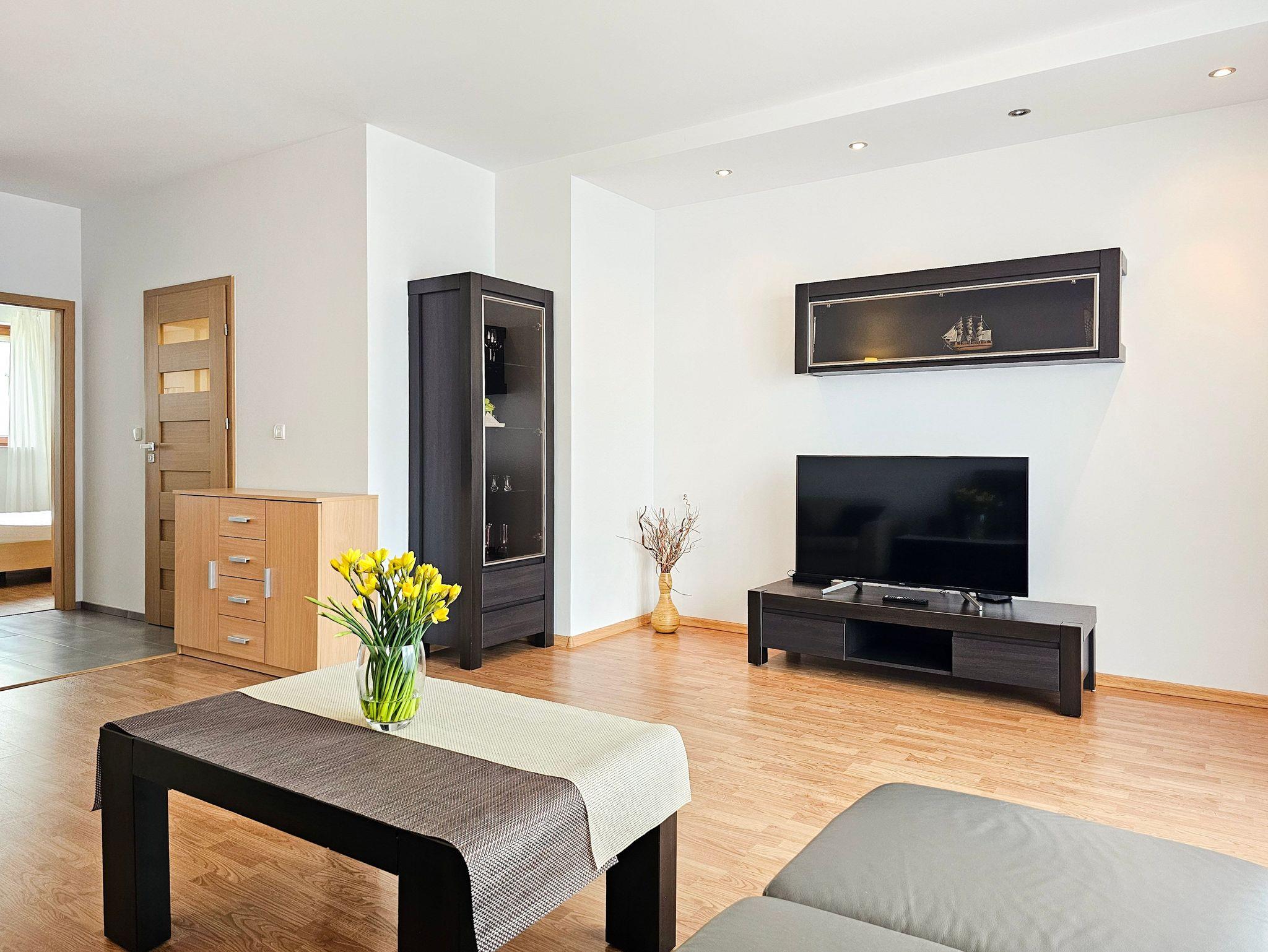 Eine geräumige (56m2) 2-Zimmer-Ferienwohnung im zweiten Stock eines Gebäudes im Wohngebiet Platan. Sie besteht aus einem Wohnzimmer mit Balkon, einem Schlafzimmer, Badezimmer und einer separaten Küche (die Küche ist kein abschließbarer Raum).