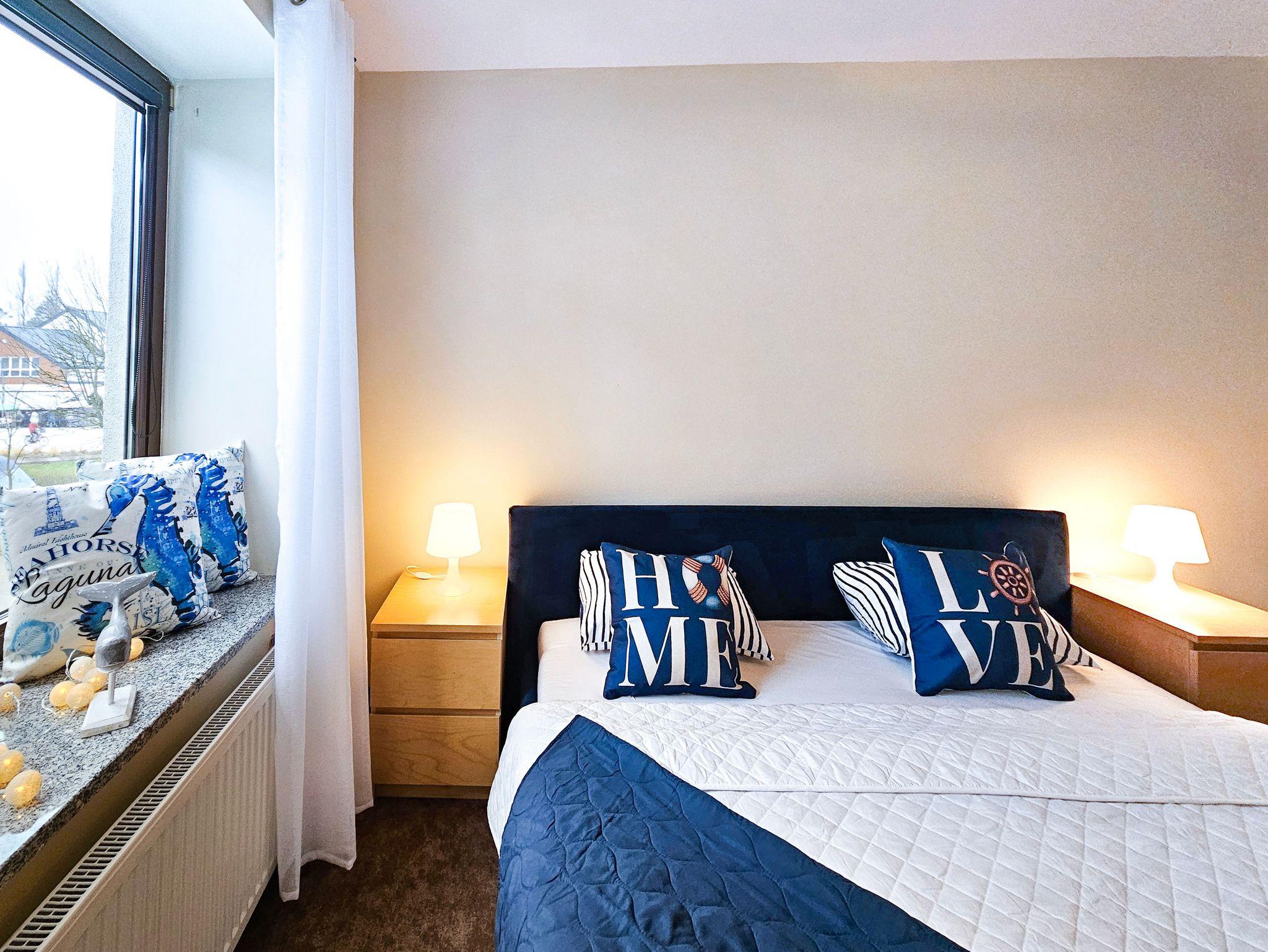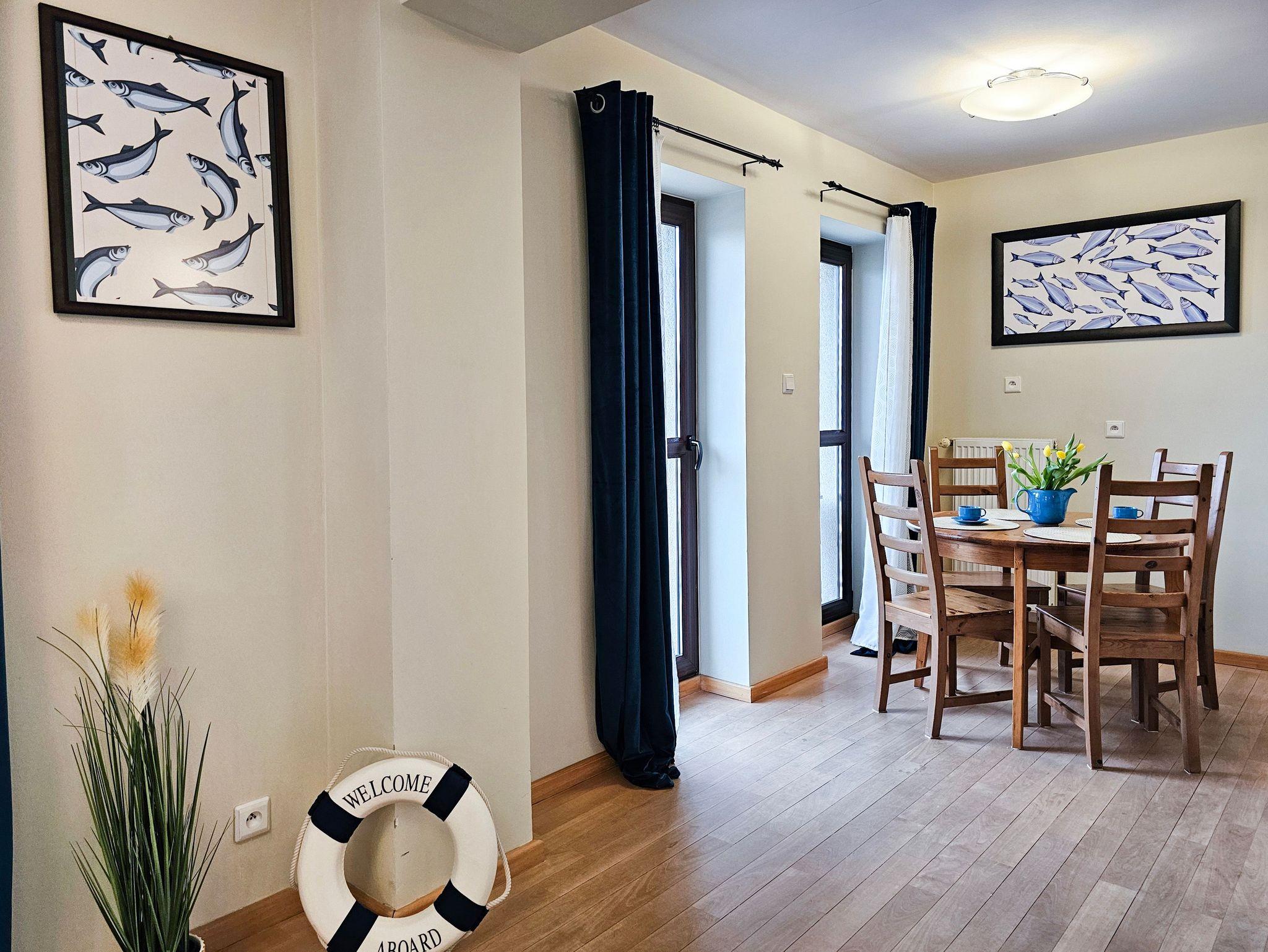 Das Schlafzimmer mit Ehebett befindet sich auf der Westseite. Die Fenster des Wohnzimmers mit einer Küchenzeile und einem Balkon sind nach Norden gerichtet, mit Blick zur Promenade. Im Wohnzimmer ist eine Schlafcouch für zwei Personen, TV und ein Esstisch mit 4 Stühlen. Die Küchenzeile ist mit einem Zwei-Platten-Herd, Kühlschrank und allen notwendigen Geräten und Geschirr ausgestattet. Das Bad hat eine Dusche. Zur Ausstattung des Appartements gehören eine Waschmaschine. Die Gäste können einen WLAN-Internetzugang nutzen. Gebührenpflichtige Parkzonen in Swinemünde: das Parken ist von Anhang Mai bis Ende September von Montag bis Samstag 8-20 Uhr kostenpflichtig. An Feiertagen ist das Parken hier kostenlos. Ein bewachter Parkplatz befindet sich in der Nähe (Entfernung 300m)