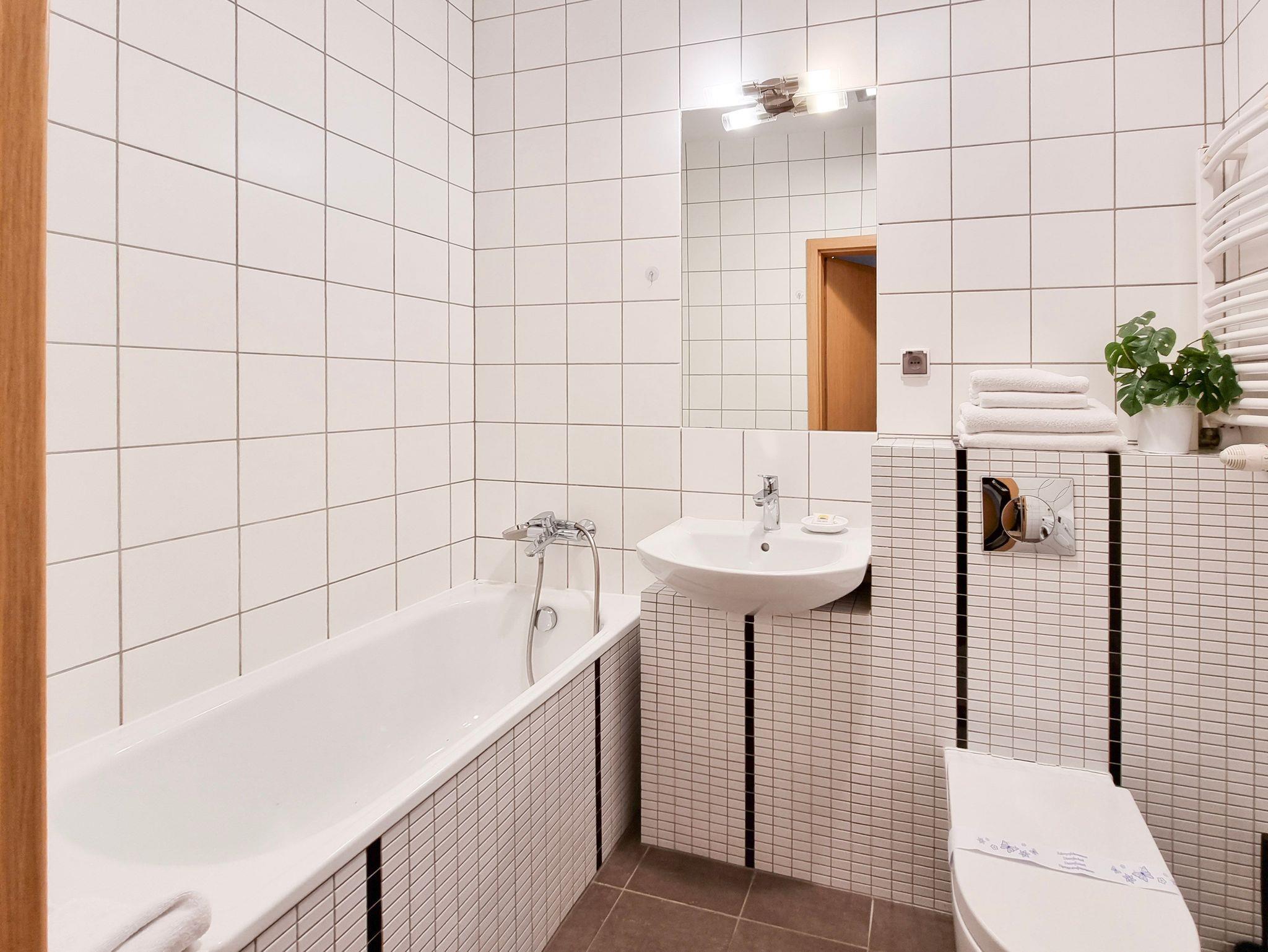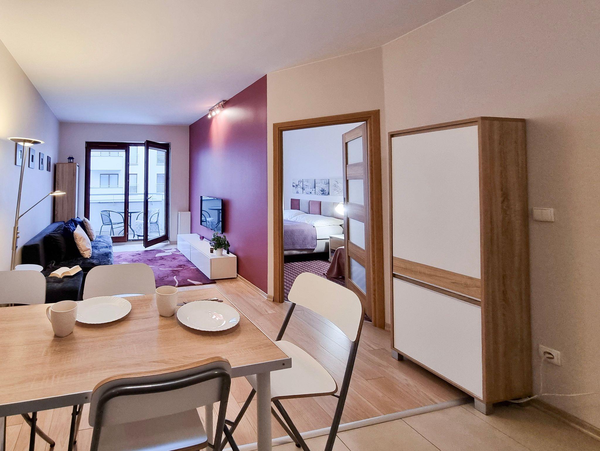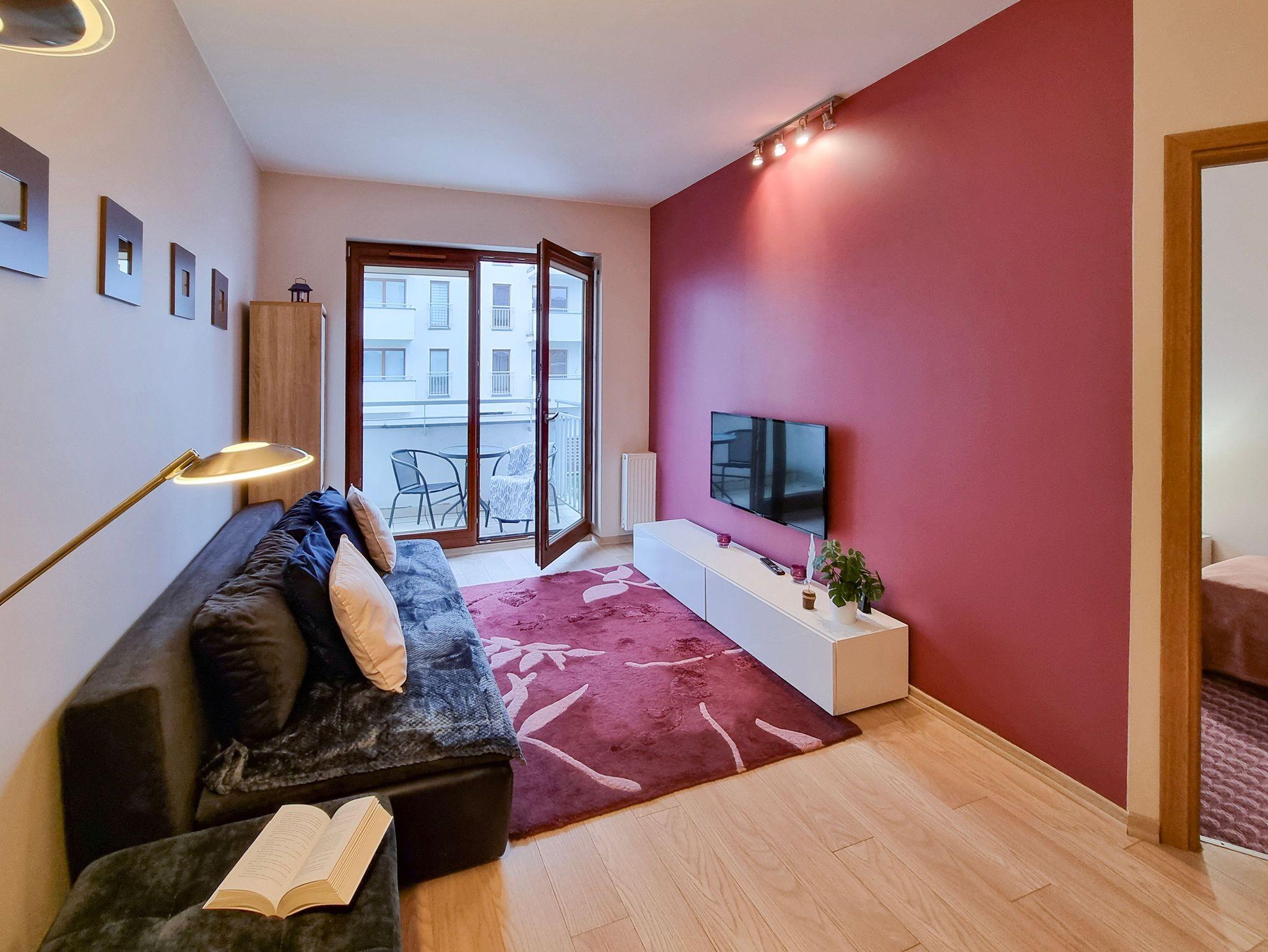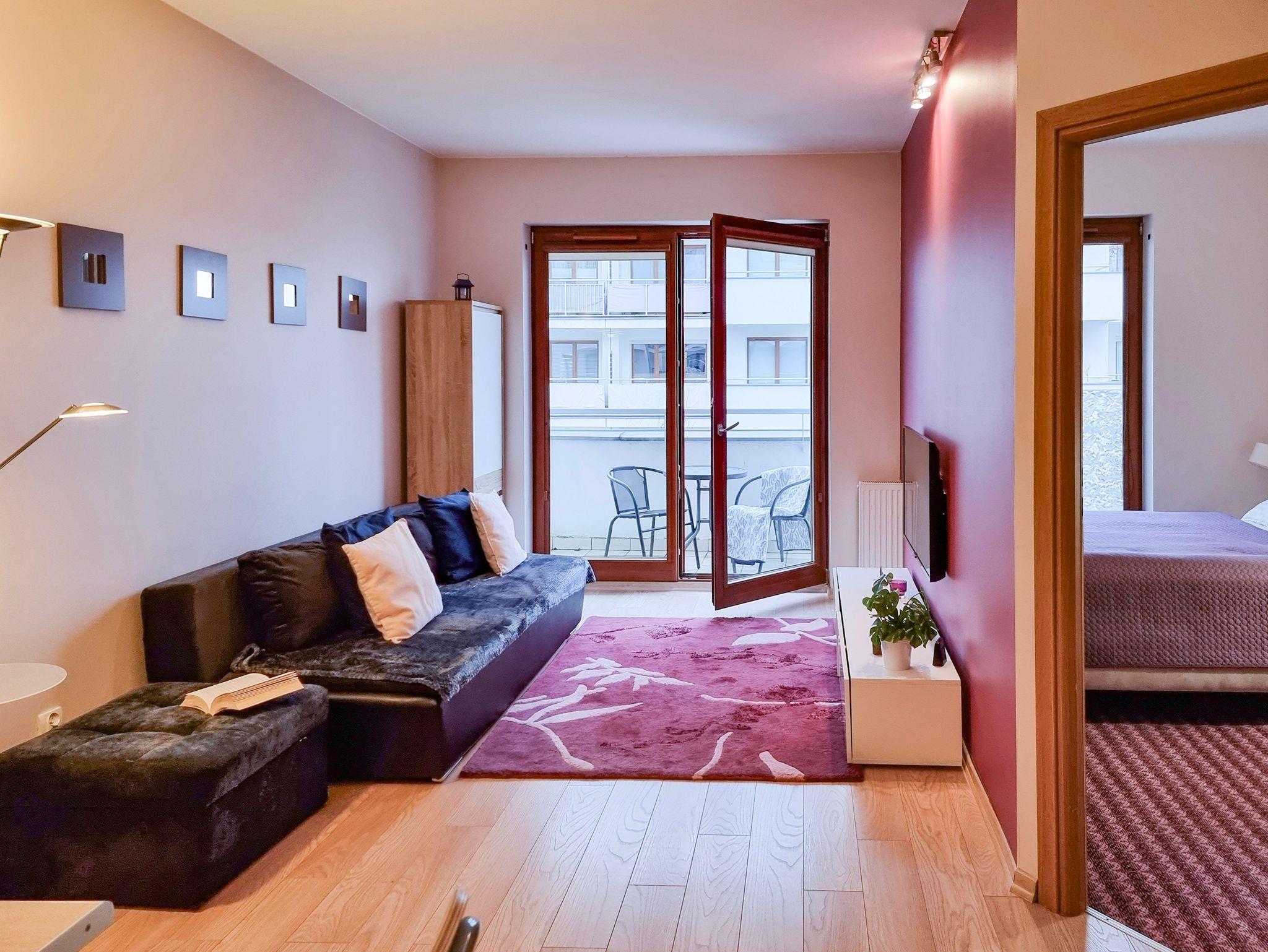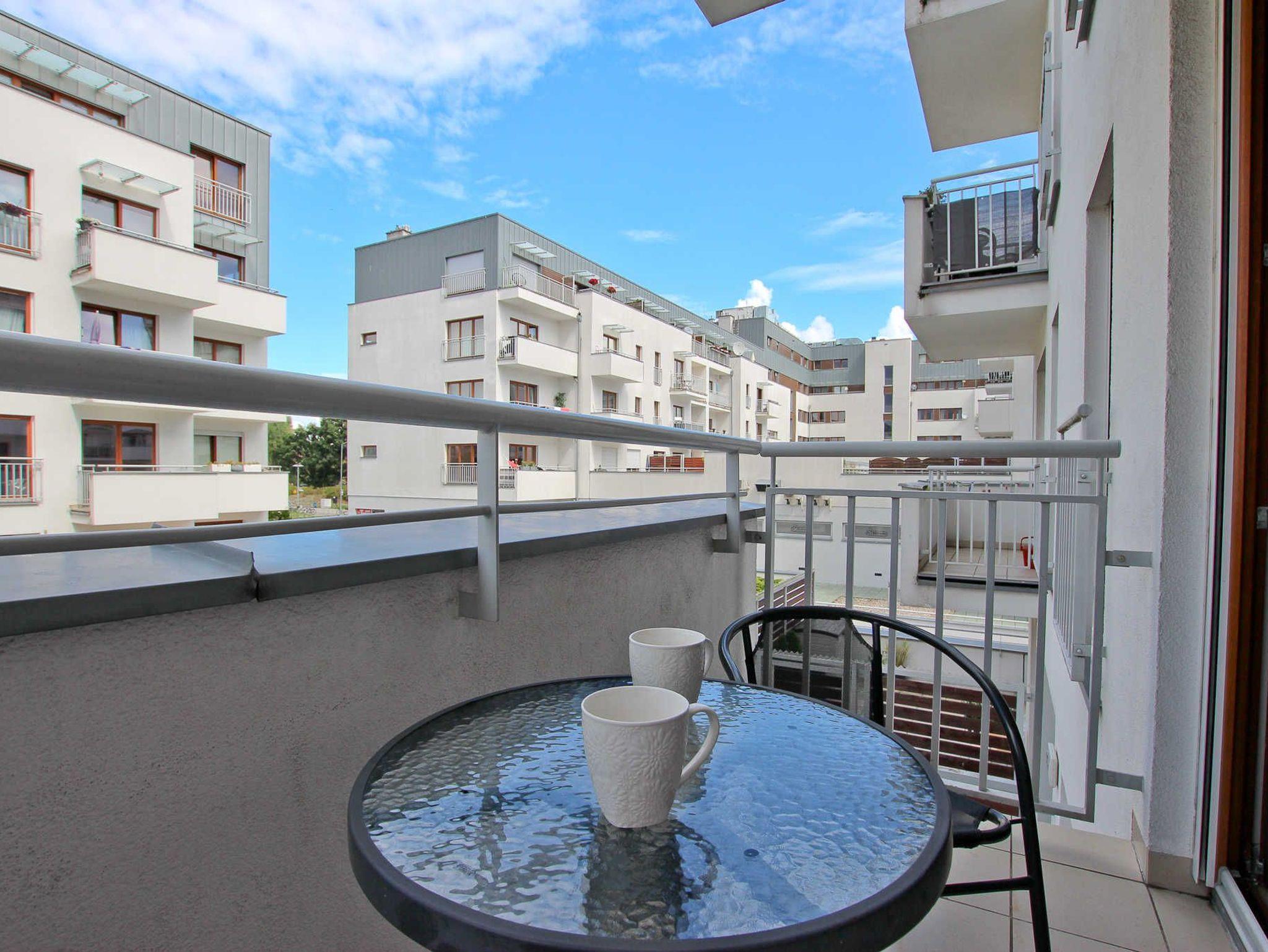 Das Gebäude, in dem sich die Ferienwohnung befindet, liegt in der Wohnsiedlung PLATAN, welche ein modernes und ästhetisches Wohnkomplex ist. Das Gebäude verfügt über einen Aufzug. Auf dem Grundstücksgelände sind viele Grünflächen und Kinderspielplätze, die von Gästen genutzt werden können.
