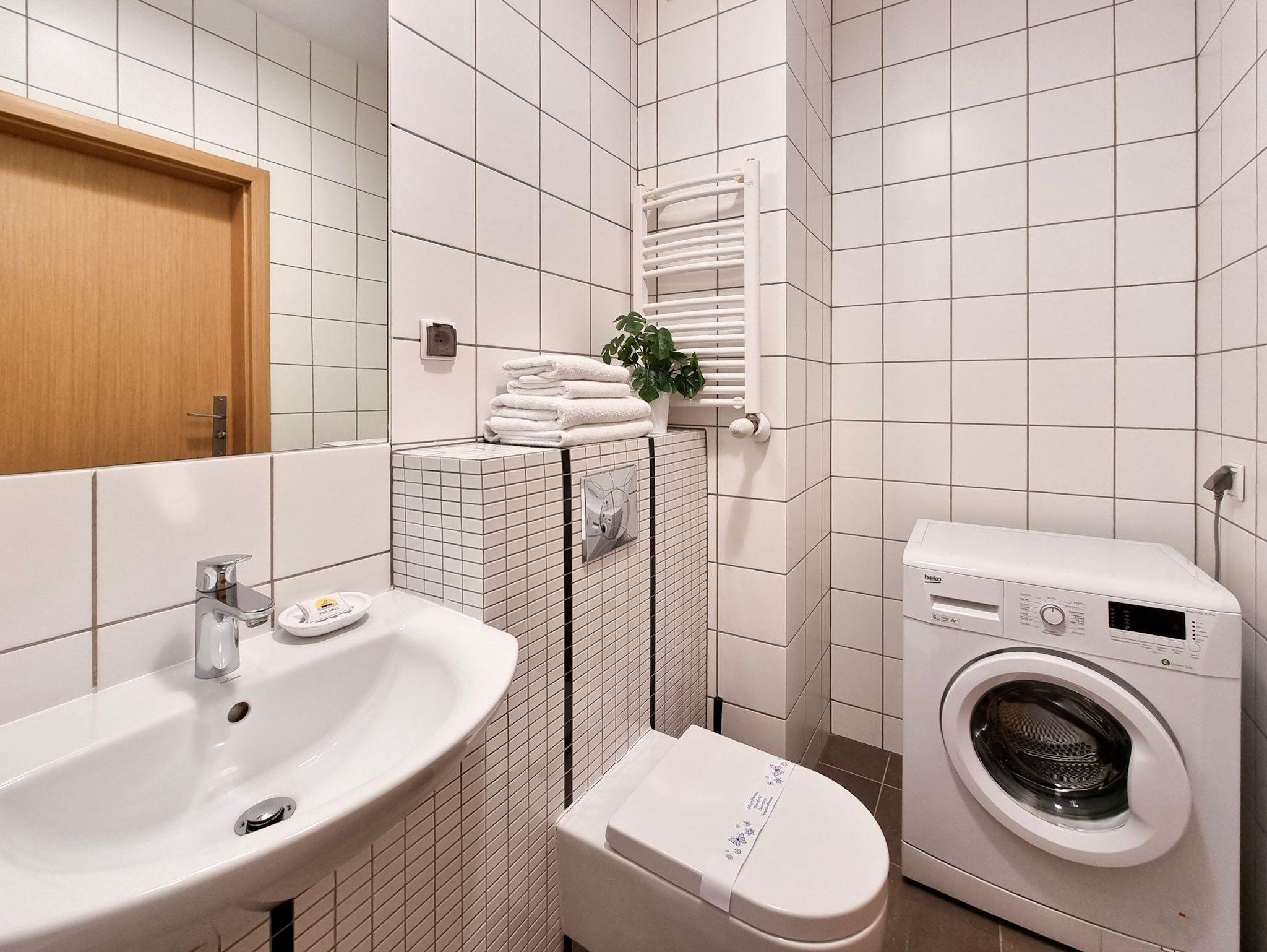 Die Wohnung verfügt über eine Waschmaschine und einen Staubsauger. Die Gäste können WLAN- Internetzugang nutzen.