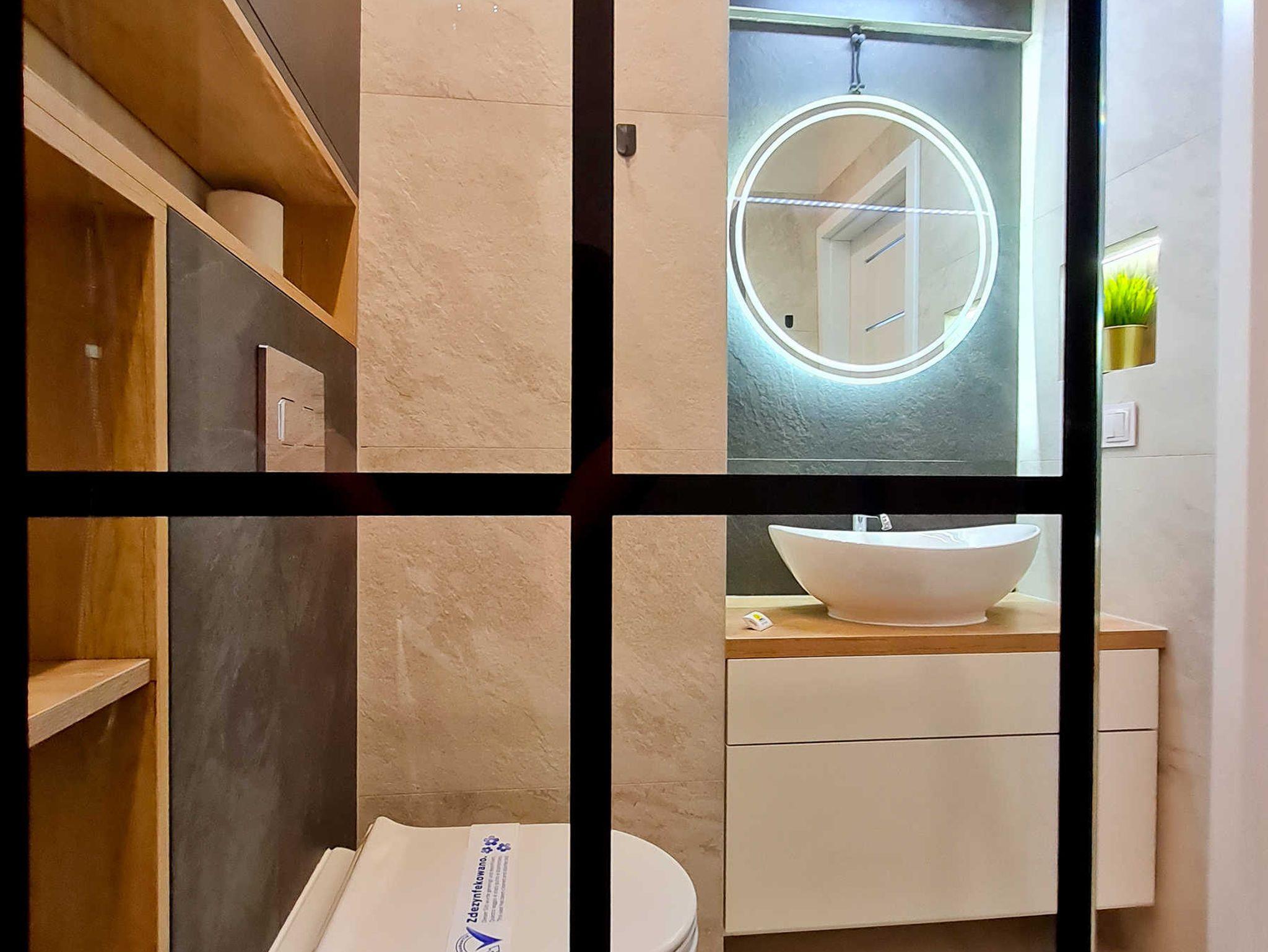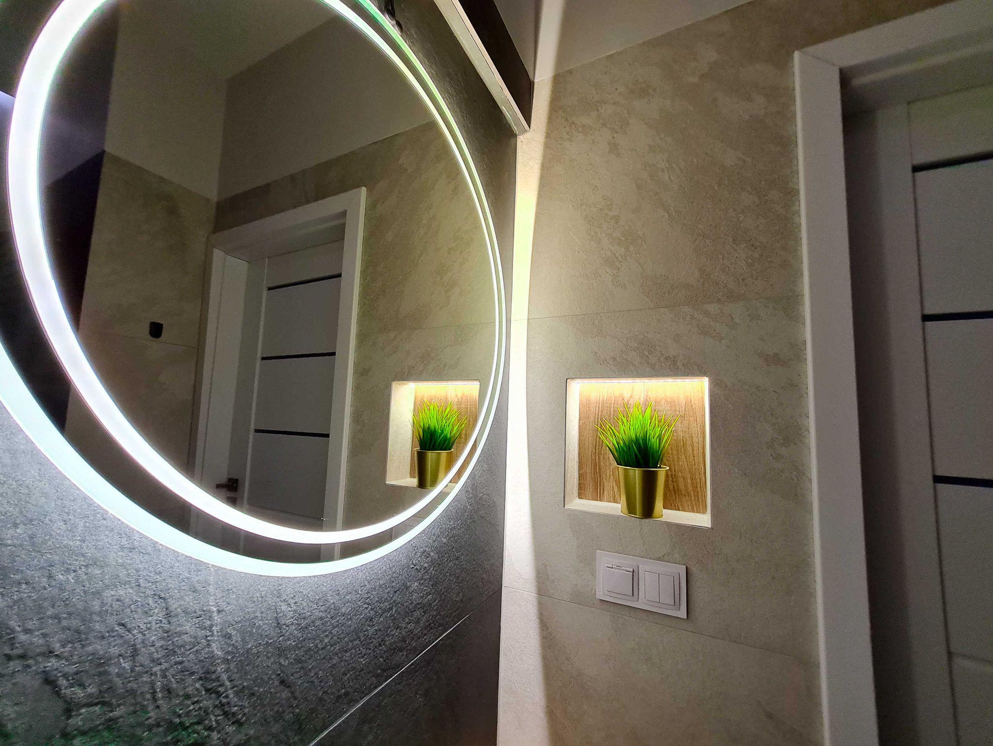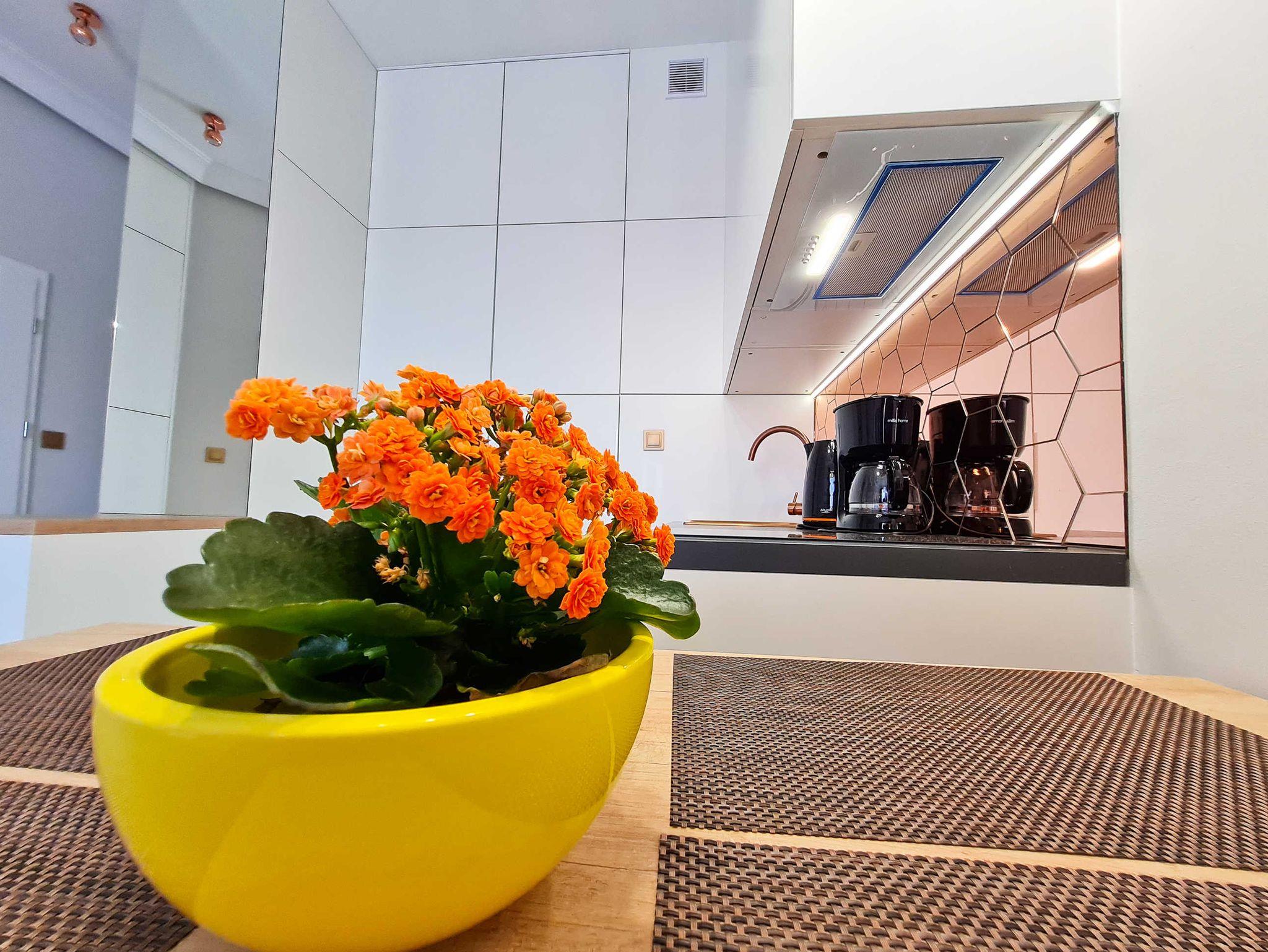 Die Küchenzeile mit Einbaumöbeln ist mit allen notwendigen Geräten für die Zubereitung und den Verzehr von Mahlzeiten ausgestattet. Darüber hinaus gibt es ein Wasserkocher, Toaster, Mikrowelle, Elektrokochfeld mit 2 Heizplätzen, Geschirrspüler und einen Kühlschrank.