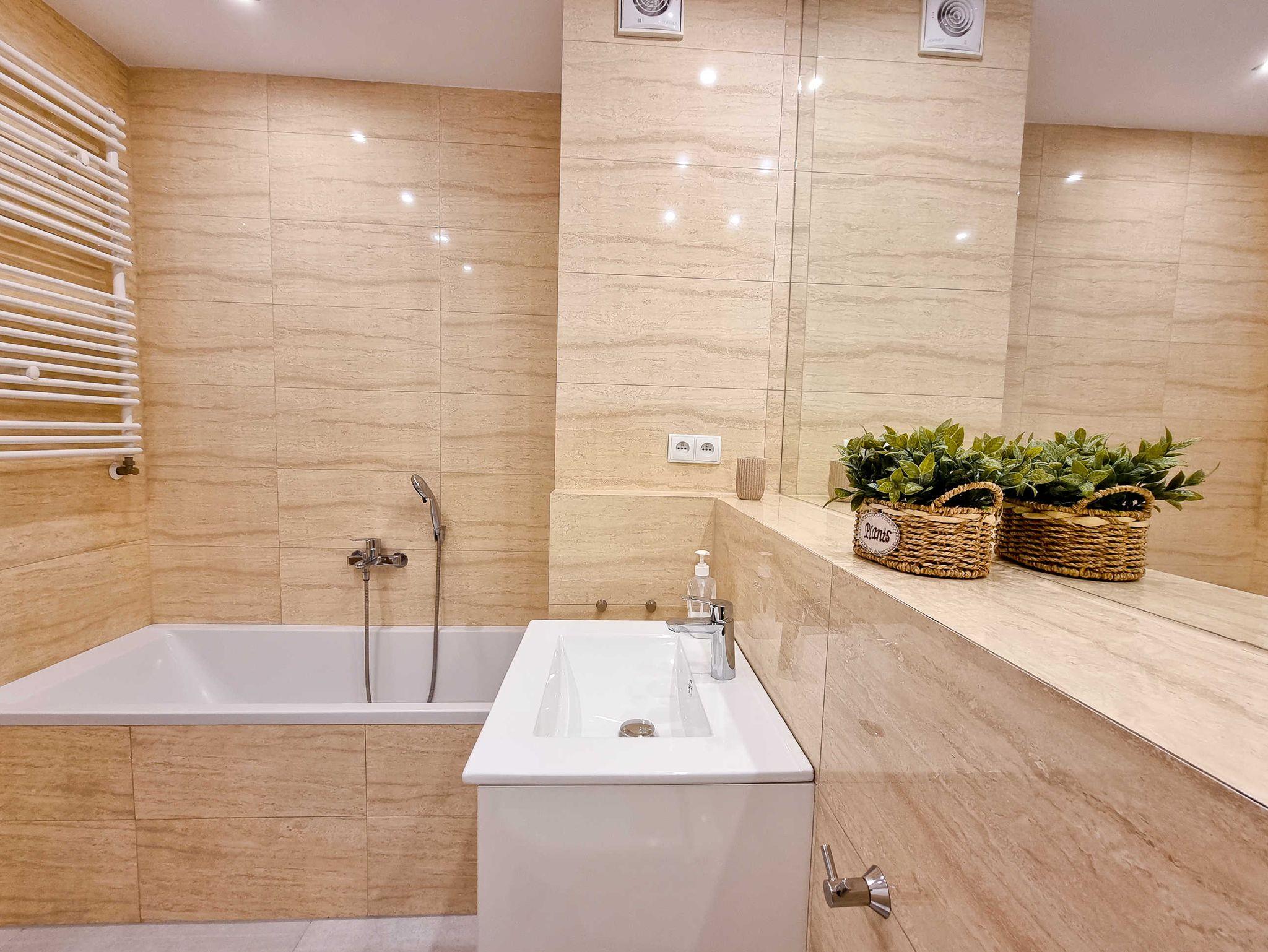 Eine geräumige (46m2) 2-Zimmer-Ferienwohnung im 1.Stock eines Gebäudes im Wohngebiet Platan. Sie besteht aus einem Wohnzimmer mit Balkon und einer Küchenziele, einem Schlafzimmer, Badezimmer.