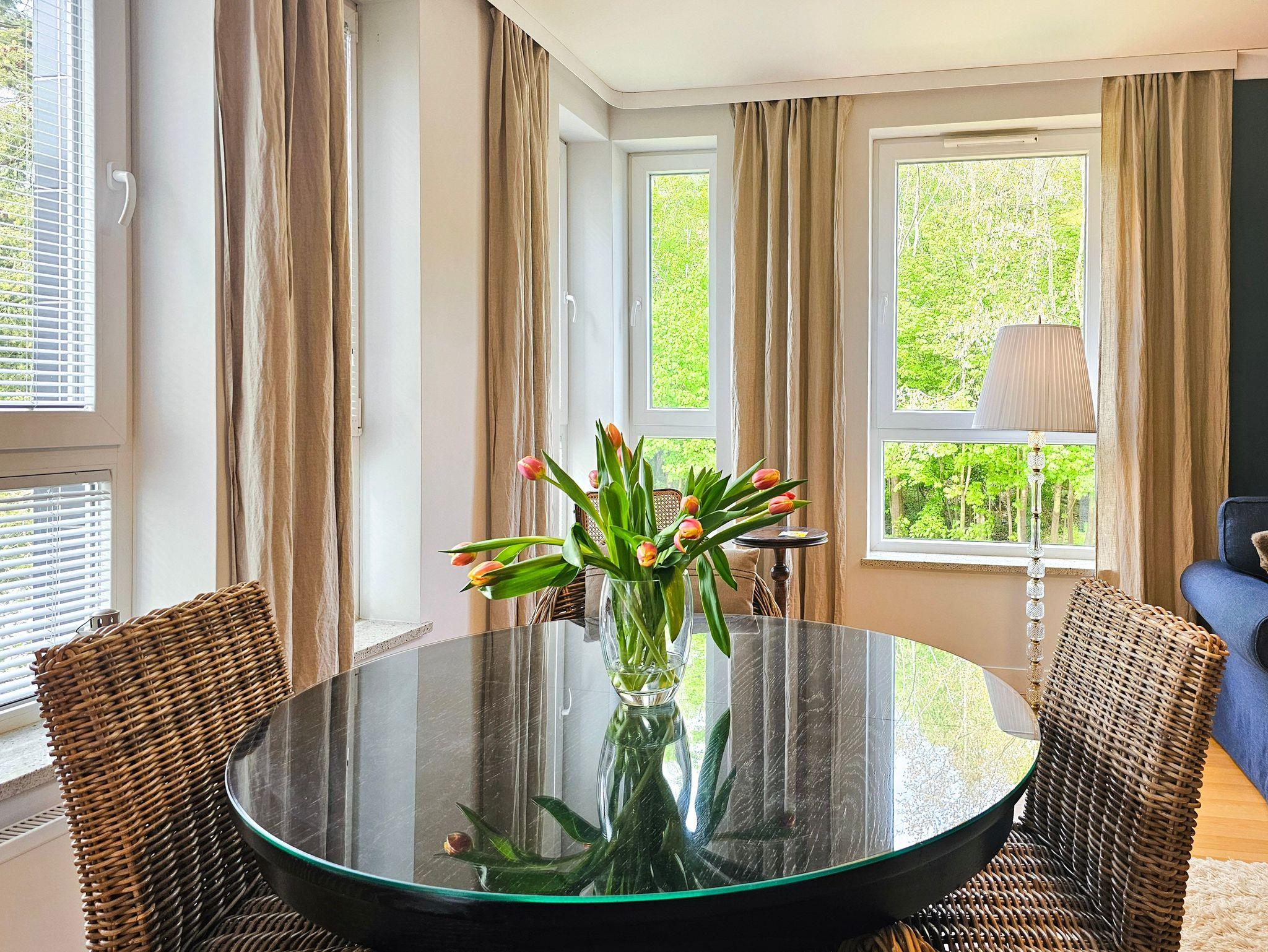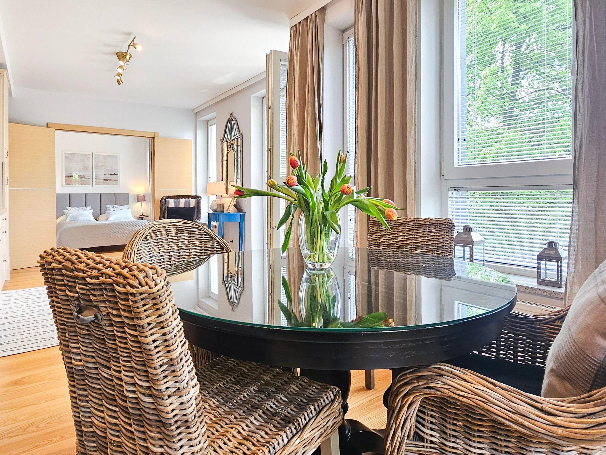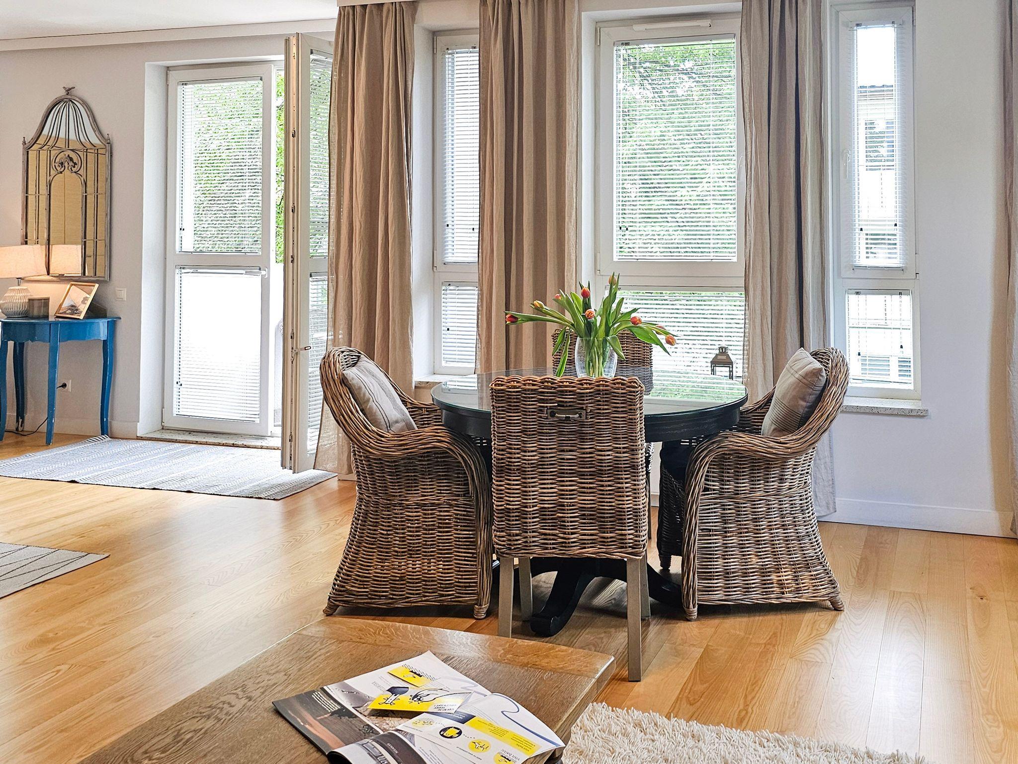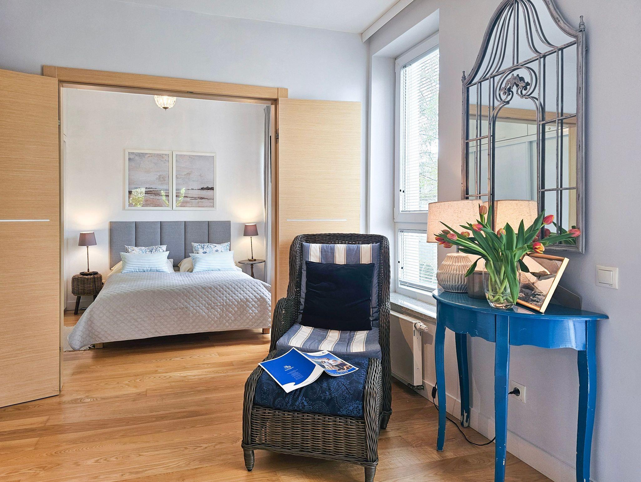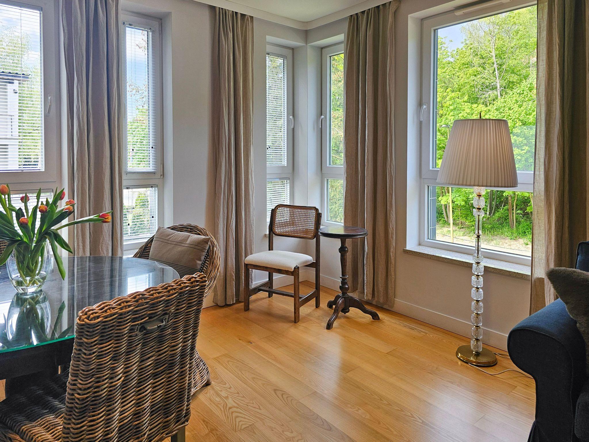 Ein geräumiges Zwei-Zimmer-Apartment, nahe am Strand gelegen, im westlichen Teil des Kurviertels von winoujcie. Es besteht aus einem Wohnzimmer mit Küchenzeile sowie einem separaten Schlafzimmer.