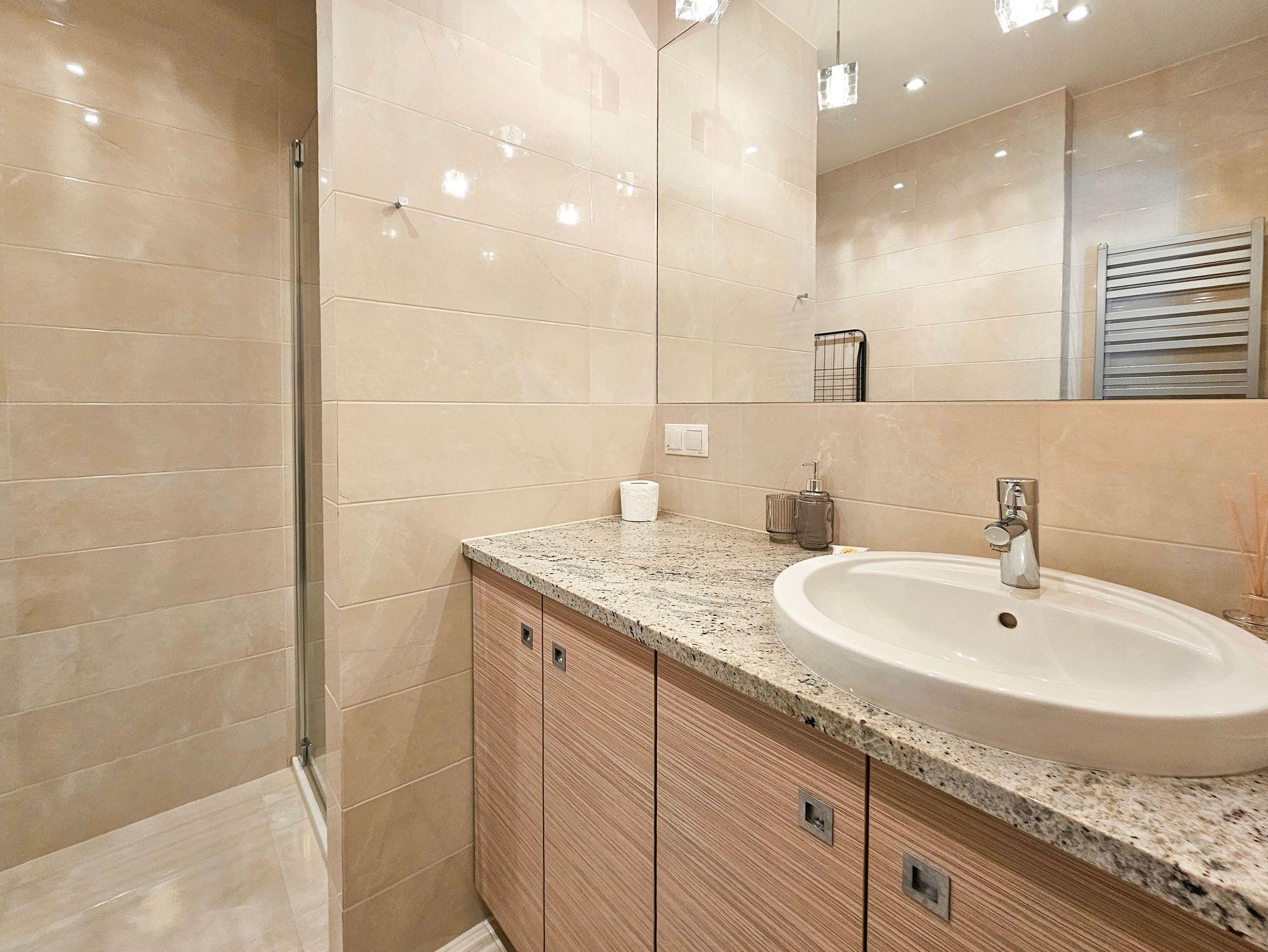Das Apartment befindet sich im Wohnkomplex „Batycka“, der aus zwei Gebäuden auf einem abgeschlossenen Grundstück im westlichen Teil des Kurviertels besteht. Innerhalb der Anlage gibt es einen kleinen Spielplatz für Kinder sowie Sitzbänke. Die Lage am Rand des Kurviertels, in unmittelbarer Nähe zum Strandzugang, zum Küstenwald und unweit des Grenzübergangs nach Deutschland, stellt einen klaren Vorteil dar. Am Strandzugang befindet sich das neu eröffnete Restaurant „Romans“. In der Nähe des Grenzübergangs winoujcie?Ahlbeck gibt es ein Einkaufszentrum mit einem Lebensmittelmarkt, einem Baumarkt, Kosmetikgeschäften, Geschäften für Haushaltsgeräte und Unterhaltungselektronik sowie einer Tankstelle.
