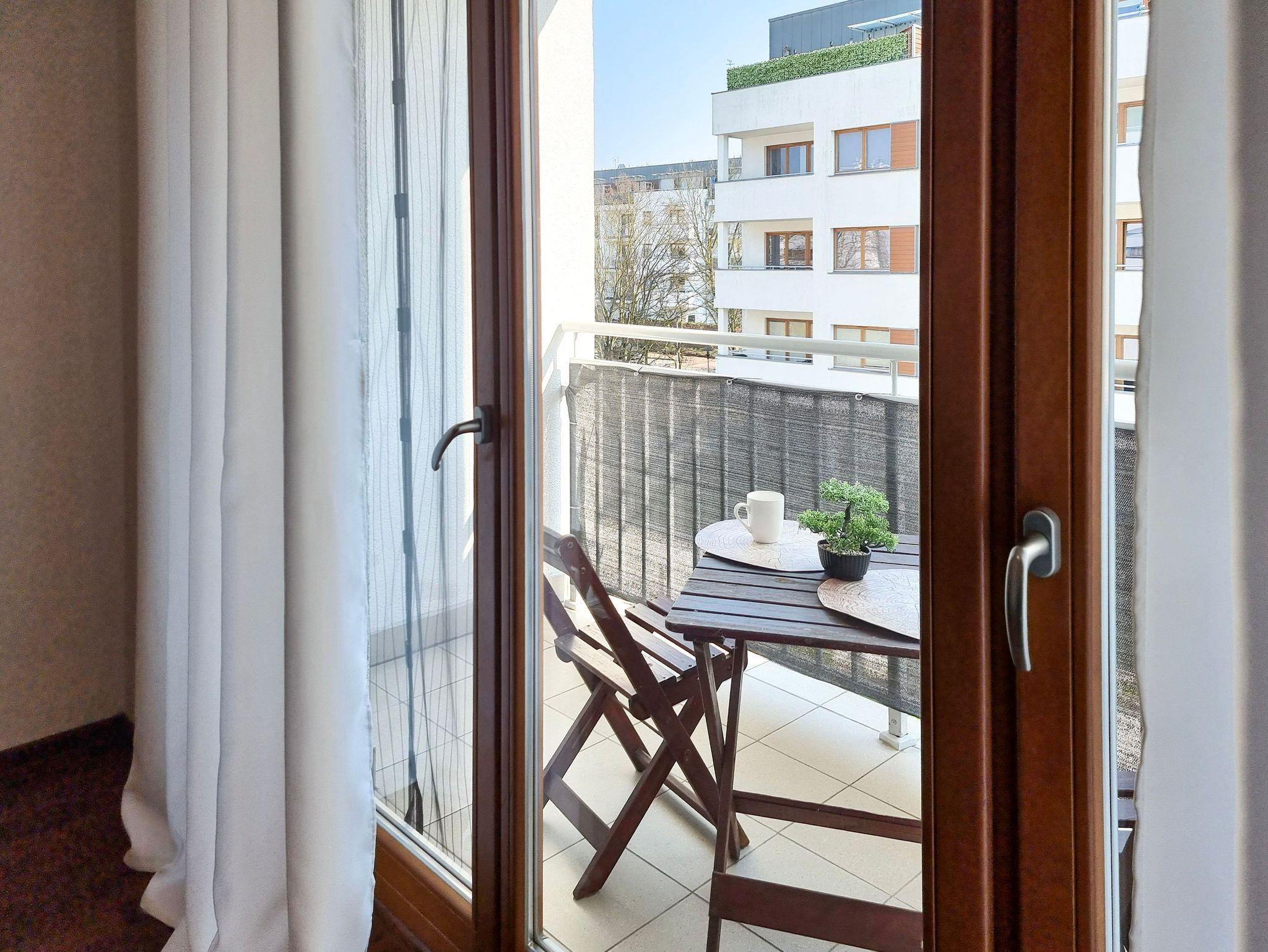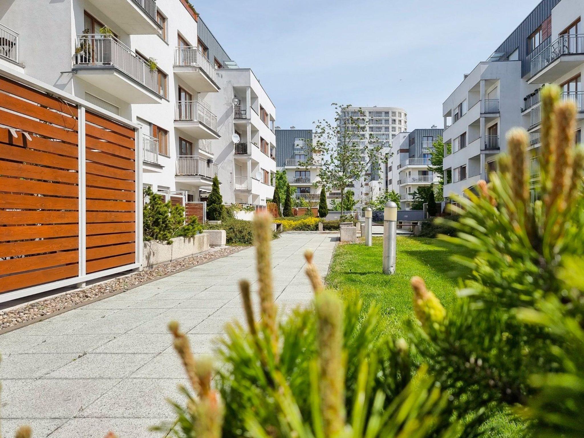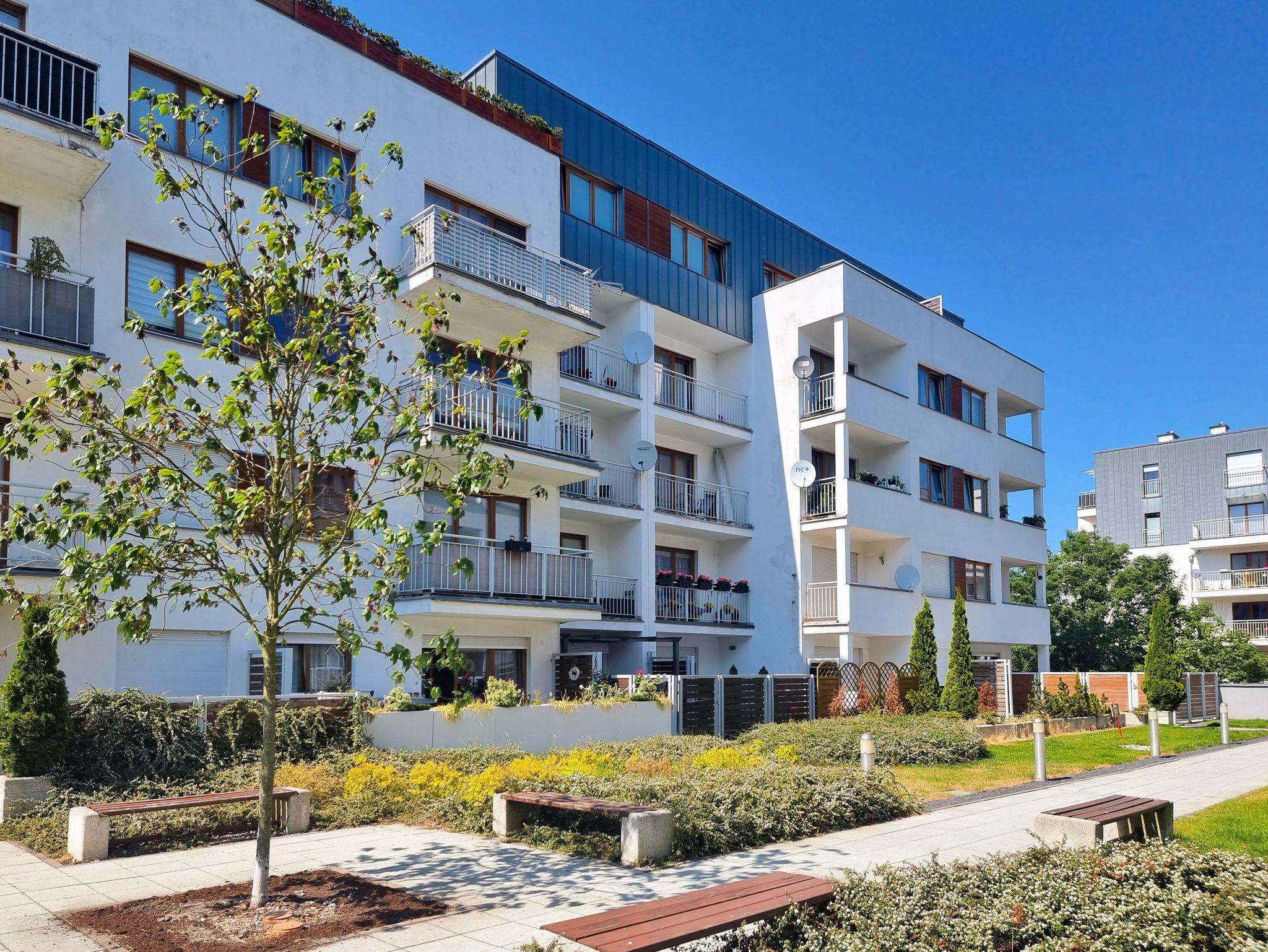 Das Gebäude, in dem sich die Ferienwohnung befindet, liegt in der Wohnsiedlung PLATAN, welche ein modernes und ästhetisches Wohnkomplex ist. Das Gebäude verfügt über einen Aufzug. Auf dem Grundstücksgelände sind viele Grünflächen und Kinderspielplätze, die von Gästen genutzt werden können.