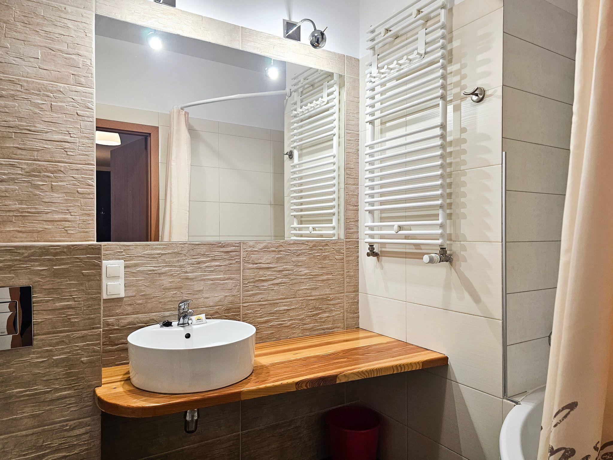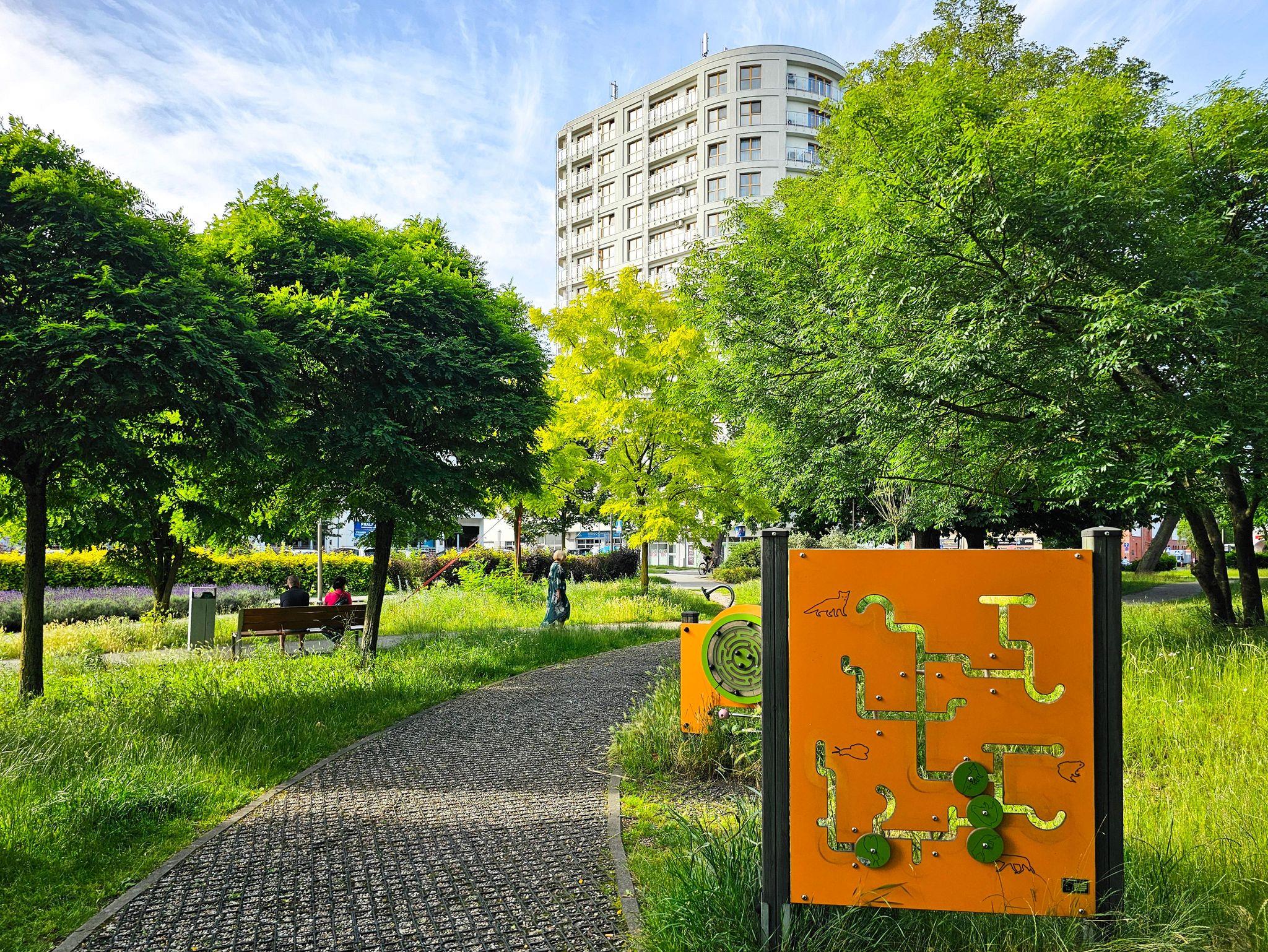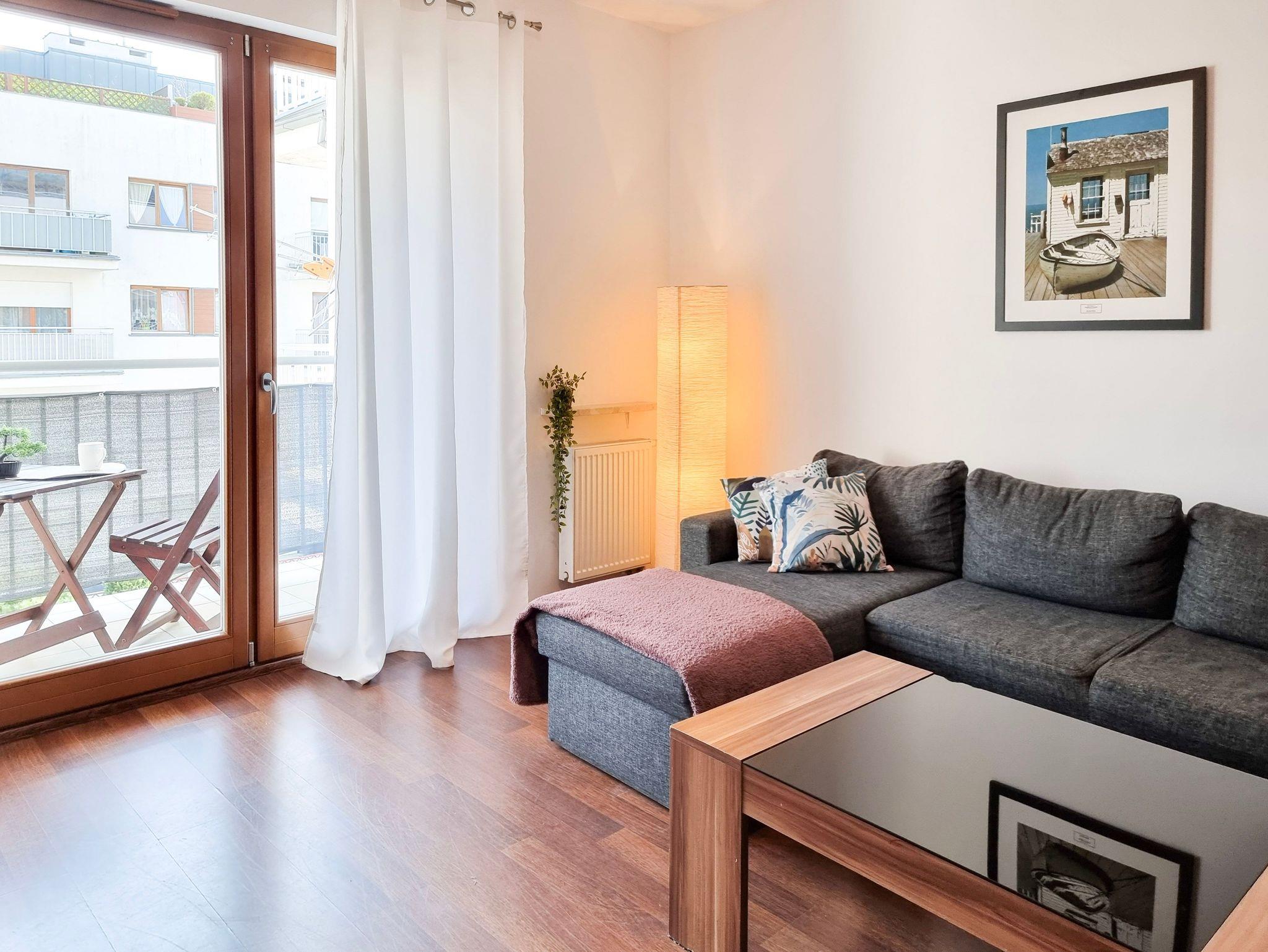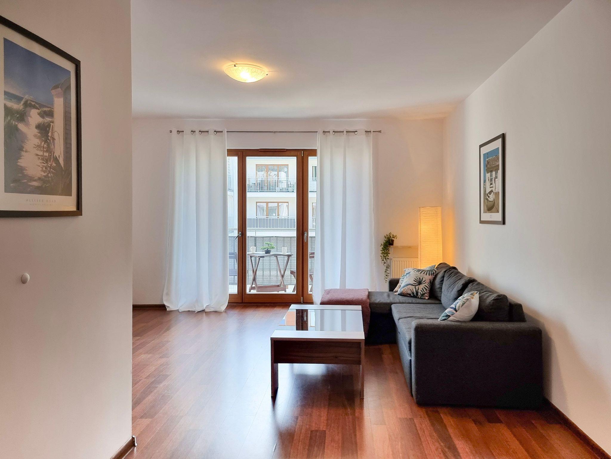 Das Gebäude, in dem sich die Ferienwohnung befindet, liegt in der Wohnsiedlung PLATAN, welche ein modernes und ästhetisches Wohnkomplex ist. Das Gebäude verfügt über einen Aufzug. Auf dem Grundstücksgelände sind viele Grünflächen und Kinderspielplätze, die von Gästen genutzt werden können.