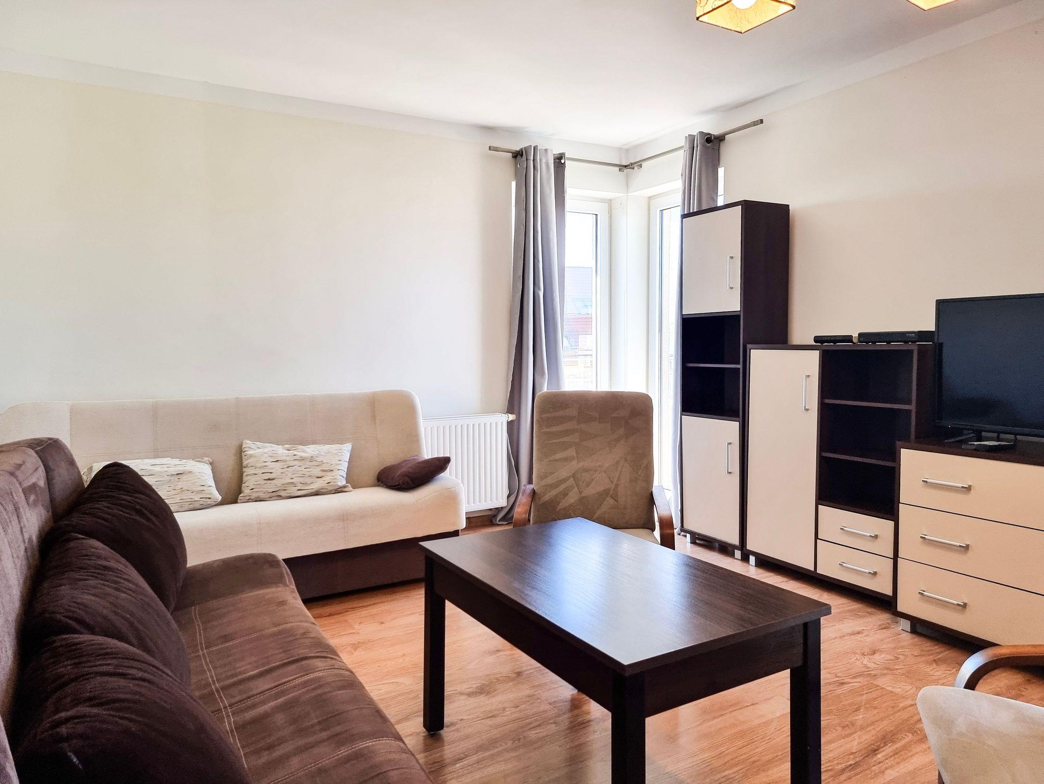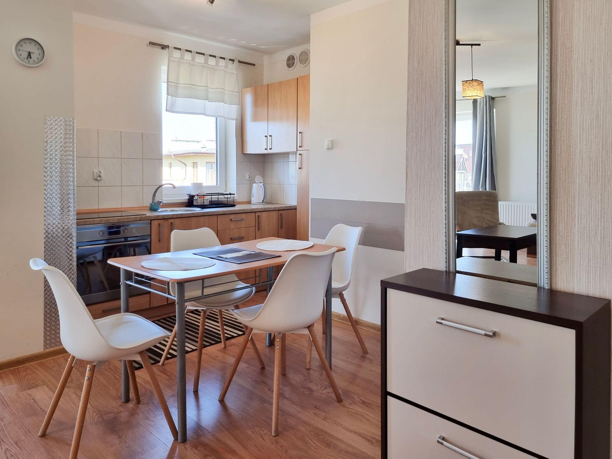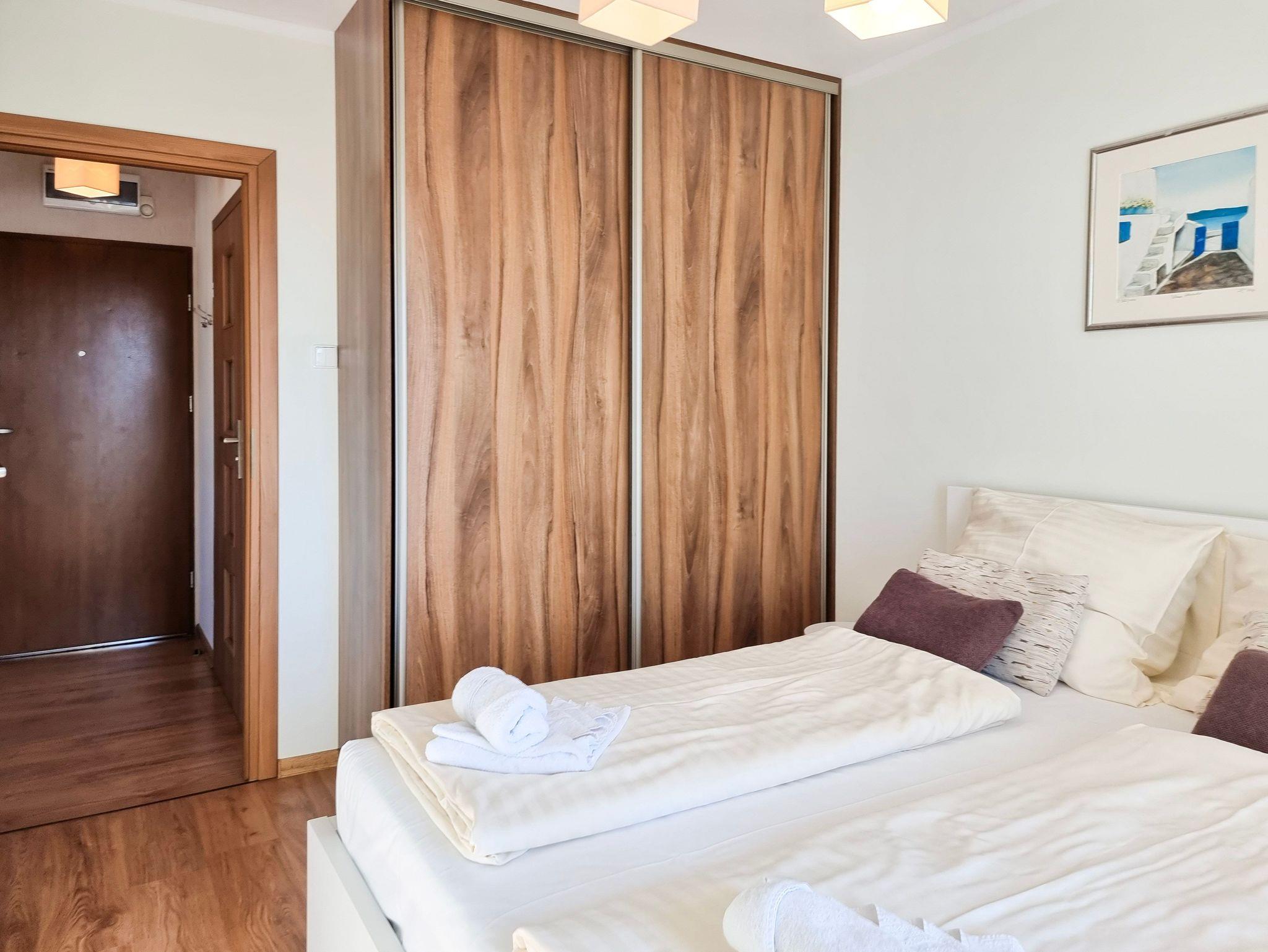 Eine geräumige Ferienwohnung mit einem Wohnzimmer und einem separaten Schlafzimmer befindet sich im vierten Stock eines Gebäudes mit einem Aufzug in der Bryza-Siedlung in Swinoujscie.