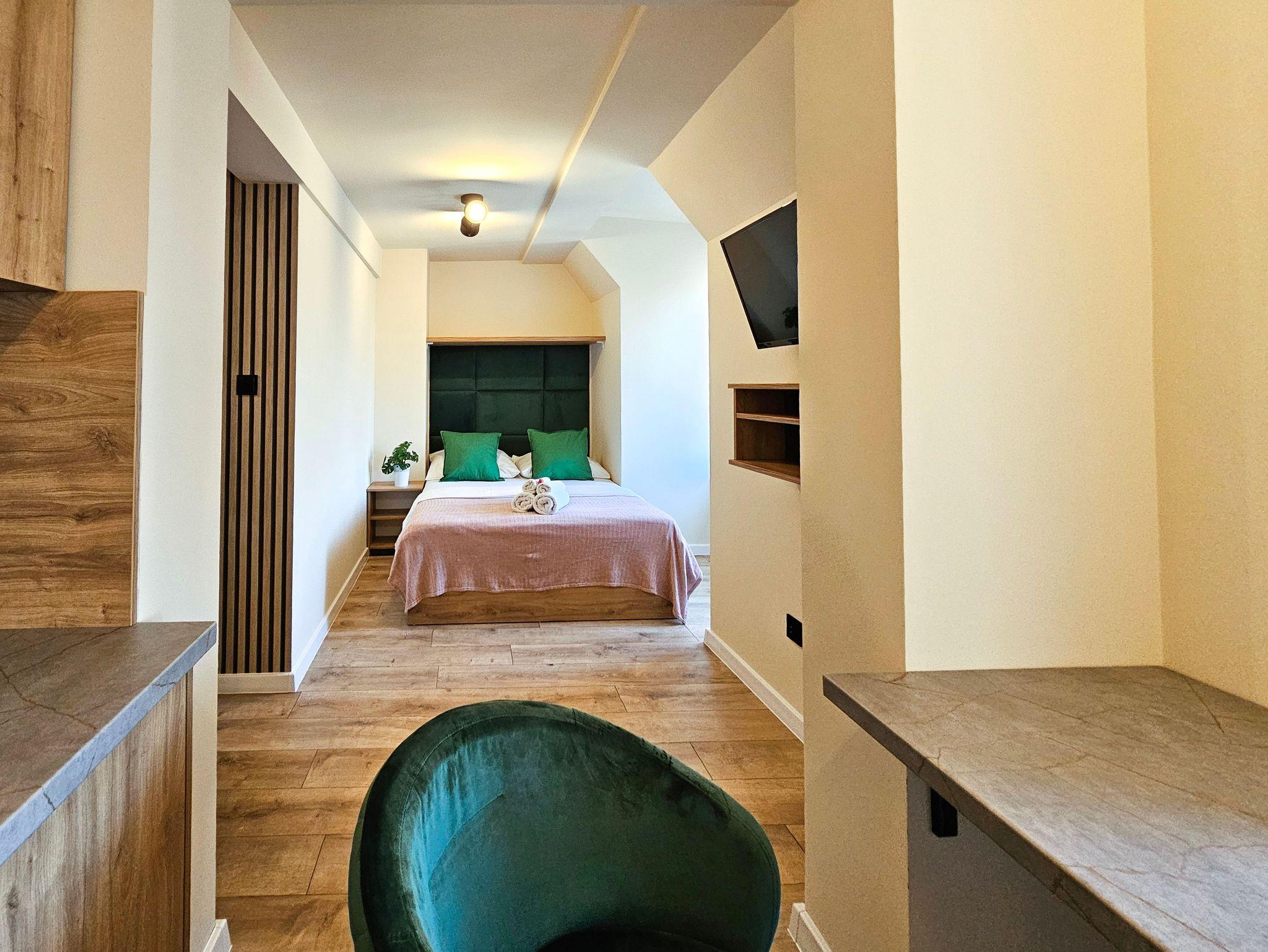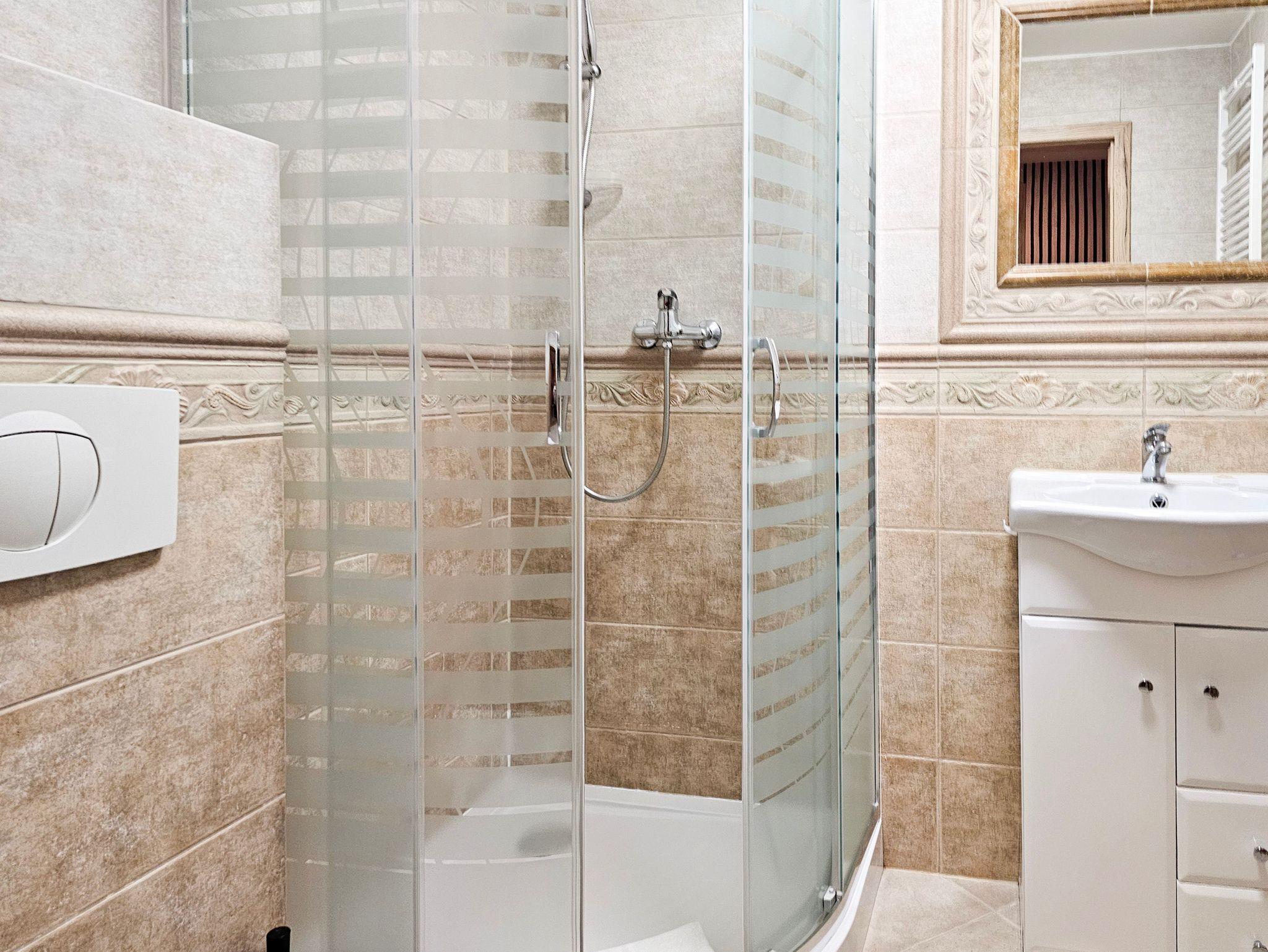 Die 1-Zimmer-Ferienwohnung mit einer Fläche von 24m2 befindet sich im 3. Stock eines mit einem Fahrstuhl ausgestatteten Gebäudes. Sie ist für den Aufenthalt von einer bis zu zwei Personen vorbereitet. Die Wohnung besteht aus einem Raum mit Küchenzeile und einem Badezimmer mit einer Dusche und einem WC. Sie ist mit ein Doppelbett (140 x200cm), einem Esstisch, Stühlen, einem Kleiderschrank und einem Fernseher ausgestattet. Die Küchenausstattung umfasst einen Unterbaukühlschrank, ein elektrisches Kochfeld mit zwei Heizflächen, einen Wasserkocher, ein Besteckset und Geschirr für die Zubereitung und für den Verzehr von Mahlzeiten. Die Fenster sind nach Westen ausgerichtet. WLAN ist verfügbar. Der Parkplatz ist nicht garantiert Das Auto kann man auf der Straße parken, gebührenpflichtig (ganzjährig kostenpflichtige Parkzone). Ein bewachter, kostenpflichtiger Parkplatz ist etwa 350m von der Wohnung entfernt. Haustiere sind nicht erlaubt.