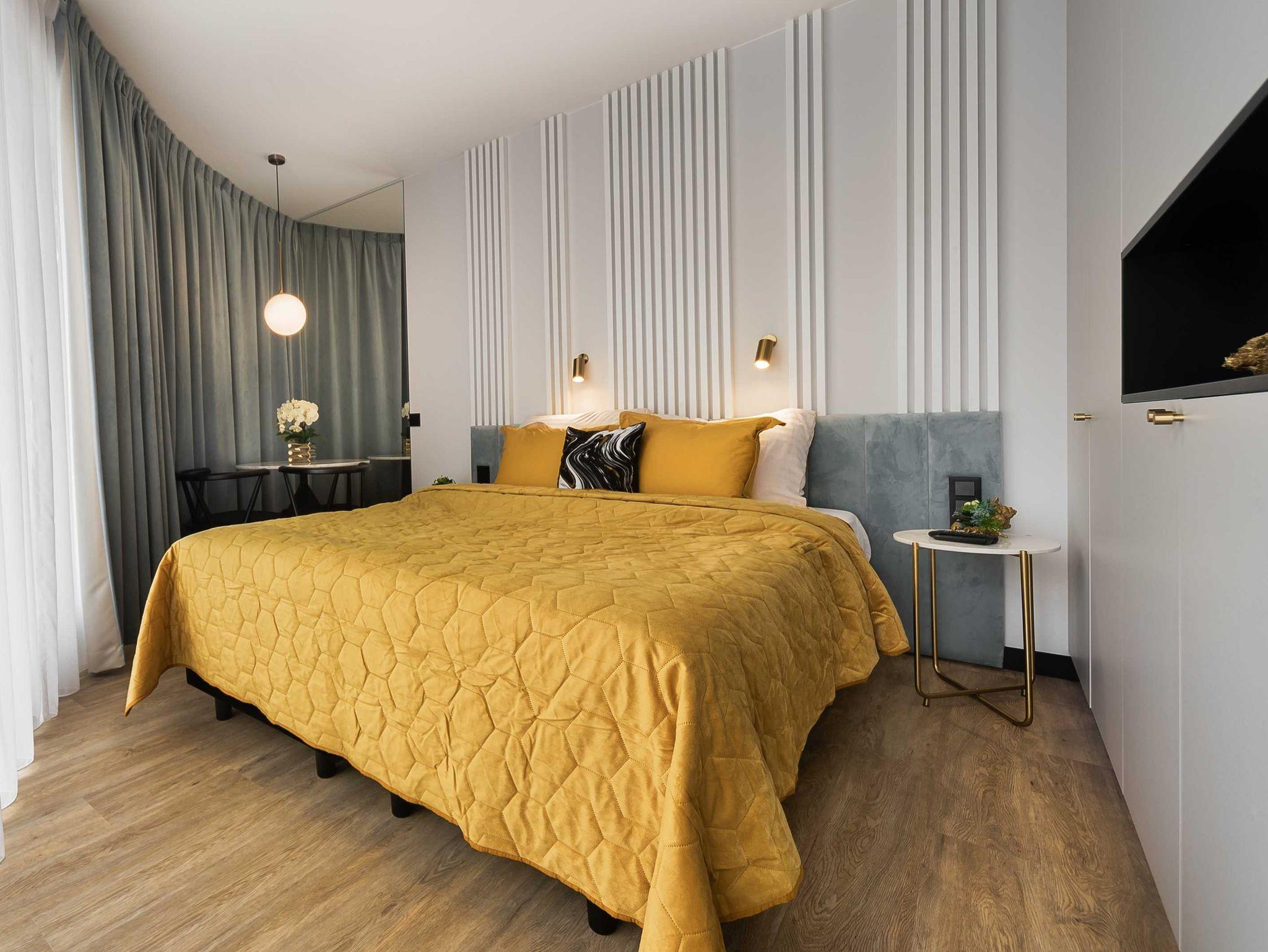 Das Zimmer verfügt über ein bequemes Kontinentalbett, (160x200) das in zwei kleinere geteilt werden kann ( 2x 80x 200) Nachttischen, einem Kleiderschrank und einem Tisch mit zwei Stühlen. Die Wohnung hat große Panoramafenster, die wie der Balkon, nach Süd-Osten ausgerichtet sind. Badezimmer mit bodengleicher Dusche, WC und Waschbecken.