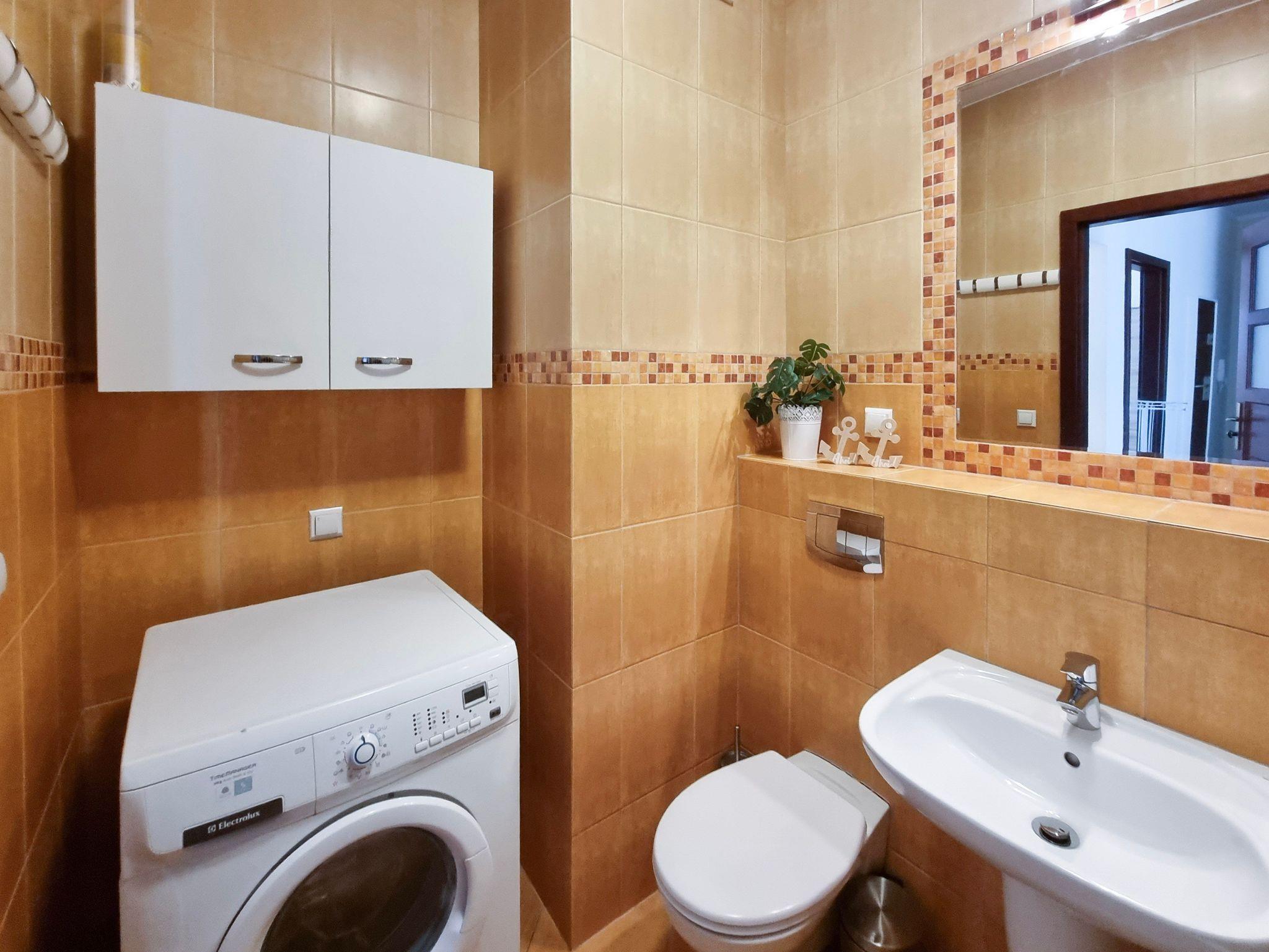 Gemütliche Zwei-Zimmer-Ferienwohnung (57m2) im Platan-Komplex. Sie befindet sich im 1. Stock eines Gebäudes, das mit einem Aufzug ausgestattet ist.