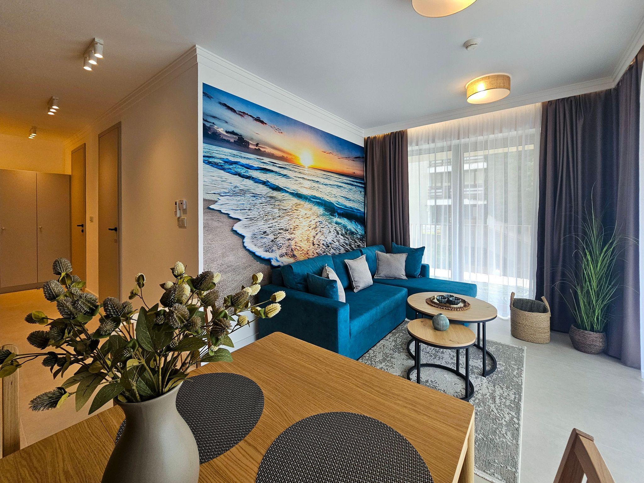 Eine komfortable Wohnung mit Schlafzimmer, Wohnzimmer und großem, sonnigem Balkon im 1. Stock eines Gebäudes im Greeneri Park Komplex in winoujcie. Sehr gut ausgestattet, geräumig und mit einem Stellplatz in der Tiefgarage. Die grüne Umgebung, die direkt