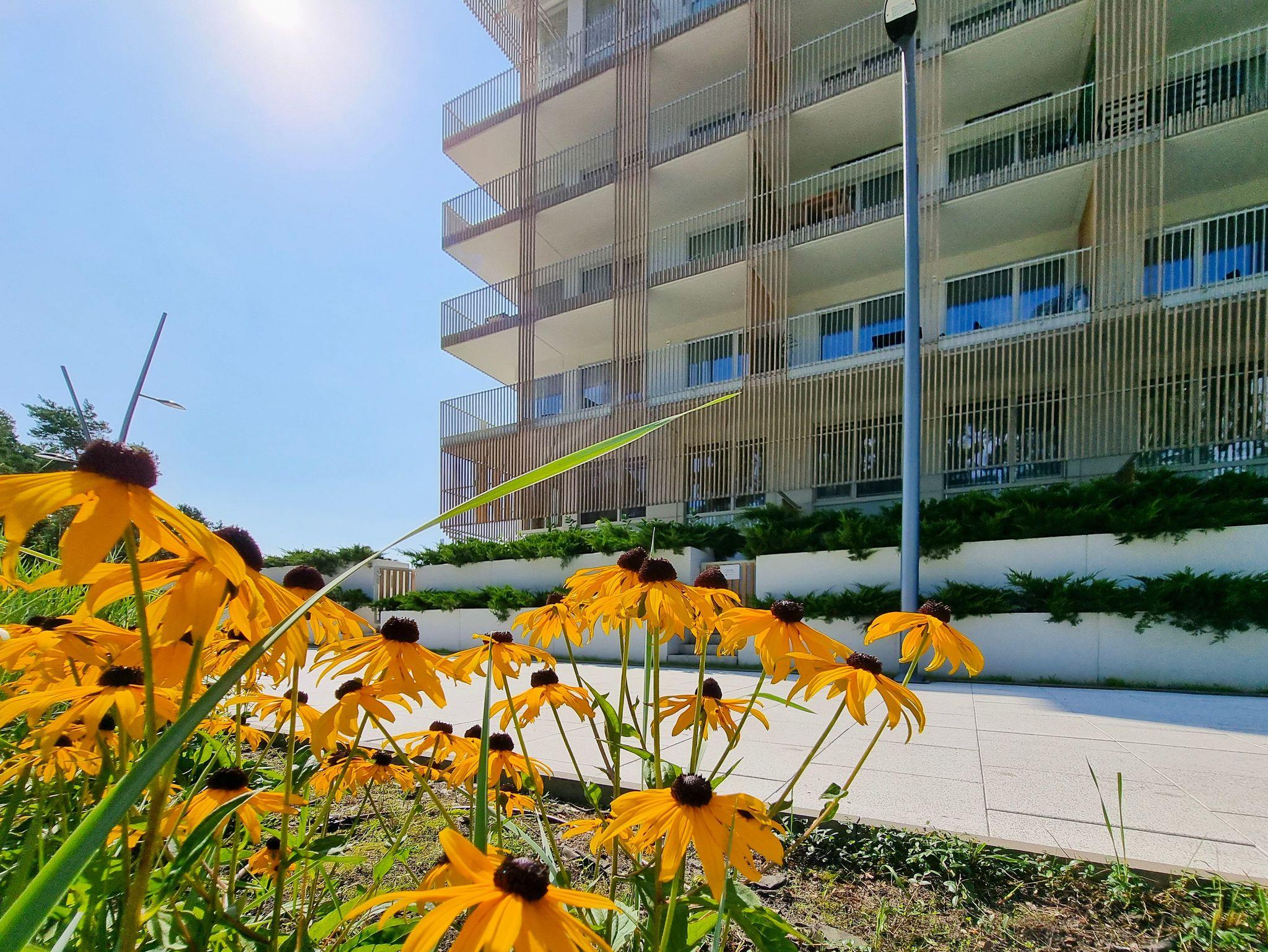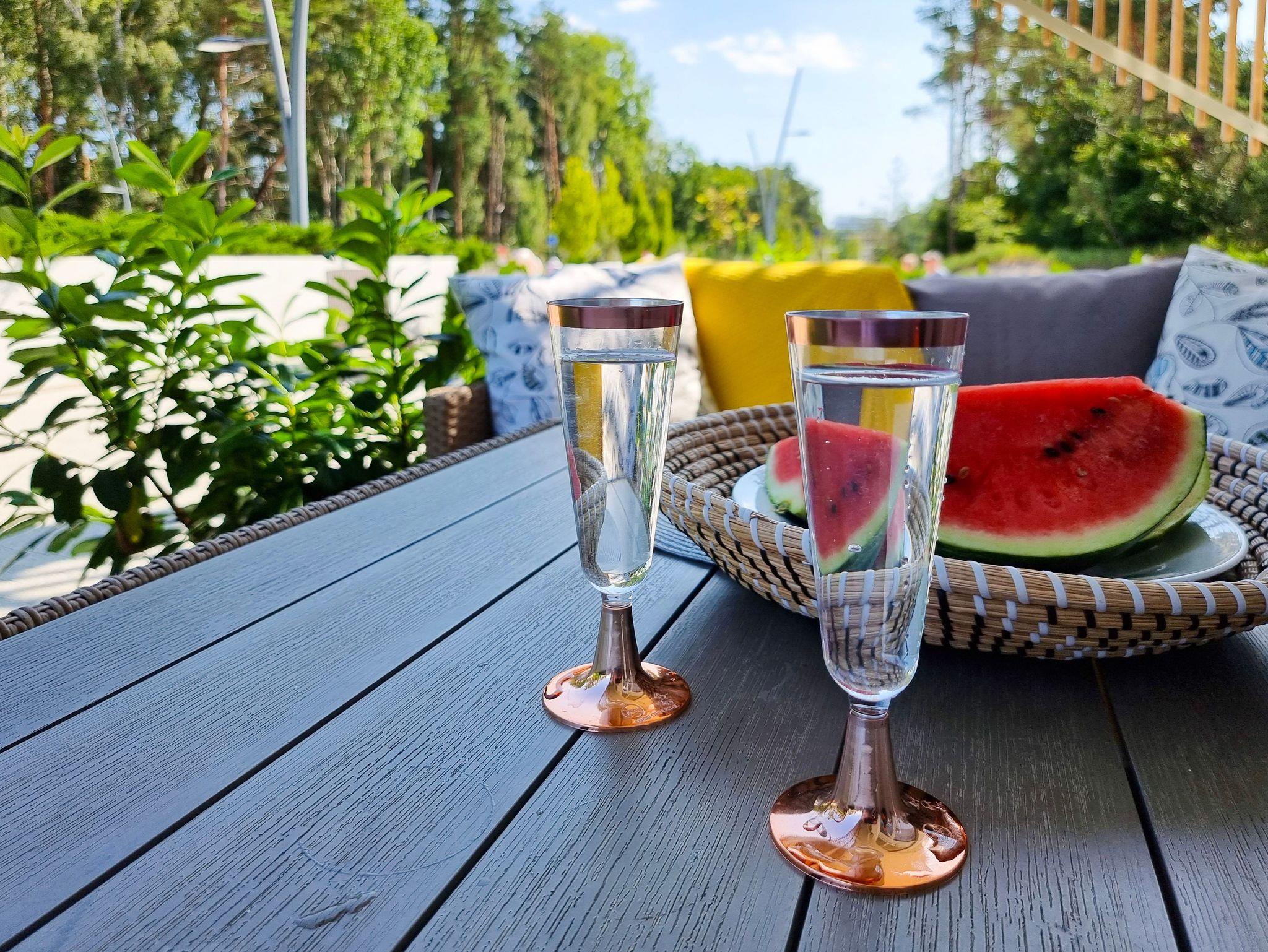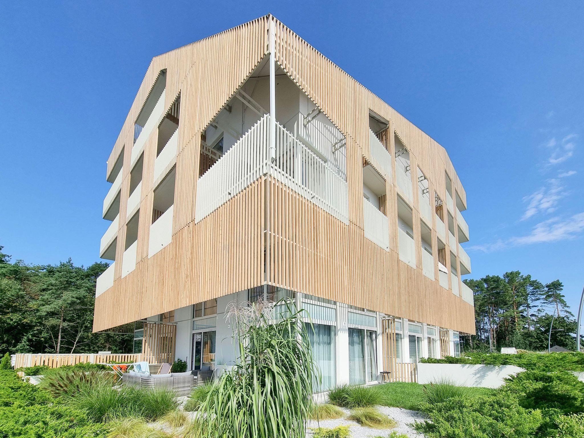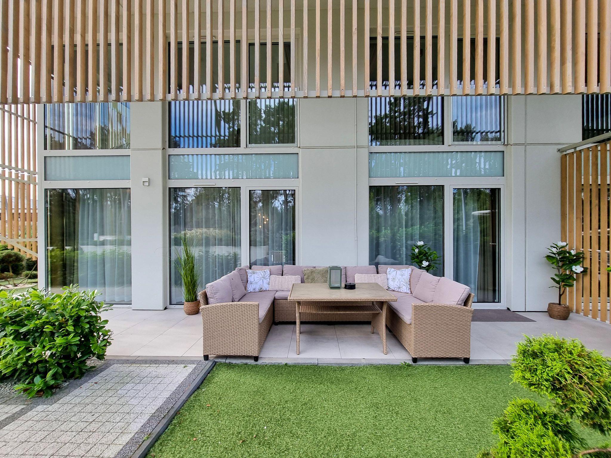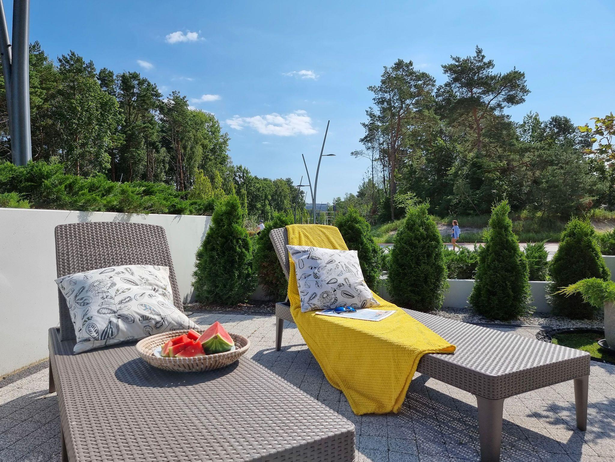 Moderne 2-Ebenen-Wohnung an der Promenade in unmittelbarer Nähe des Strandes. Wohnung mit großer Terrasse, 2 Schlafzimmer, Wohnzimmer mit Kochnische, Toilette im Erdgeschoss und Bad im Erdgeschoss.
