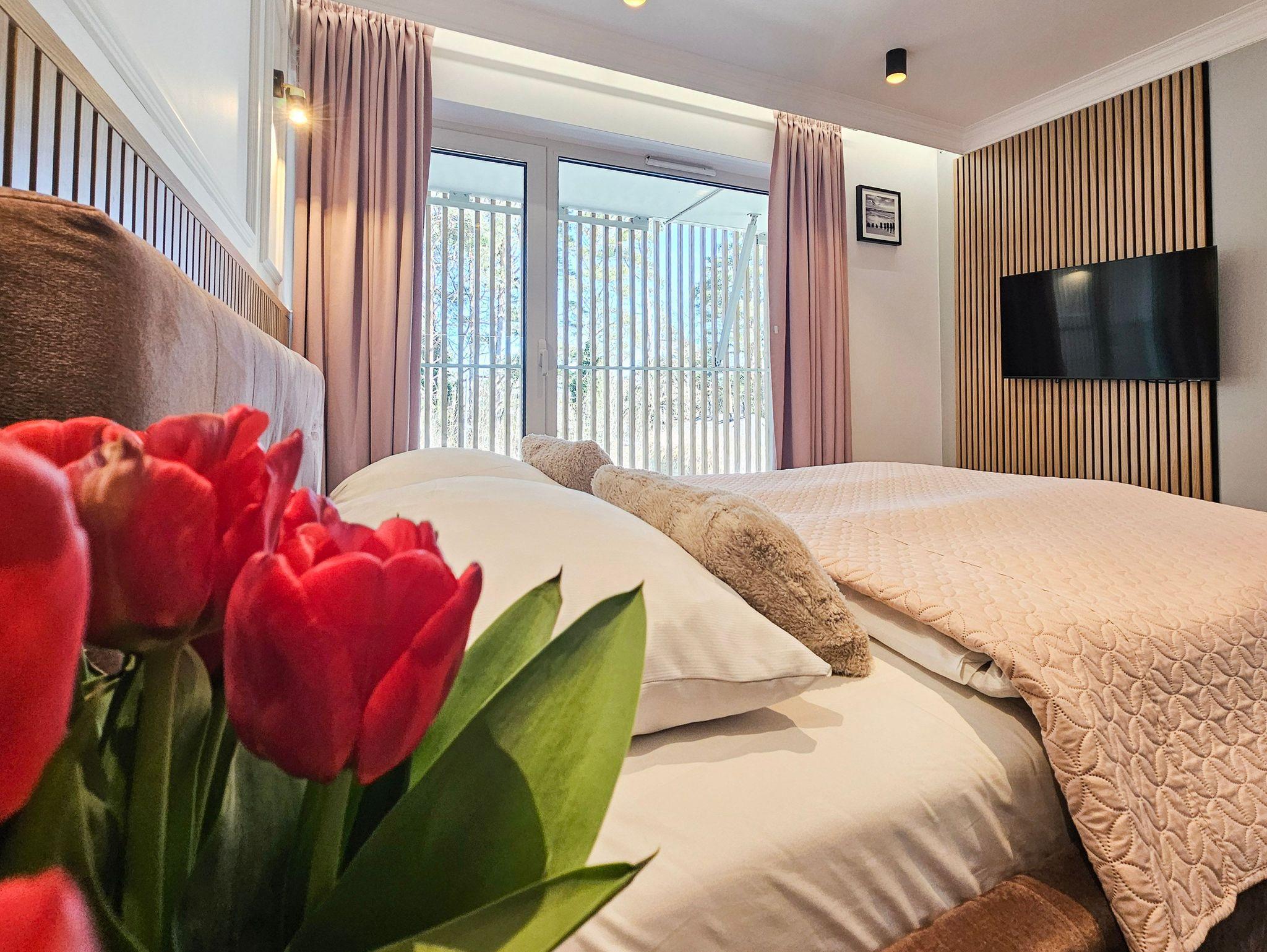Die Wohnung verfügt über drahtloses Internet und polnisch-deutsches Fernsehen.
