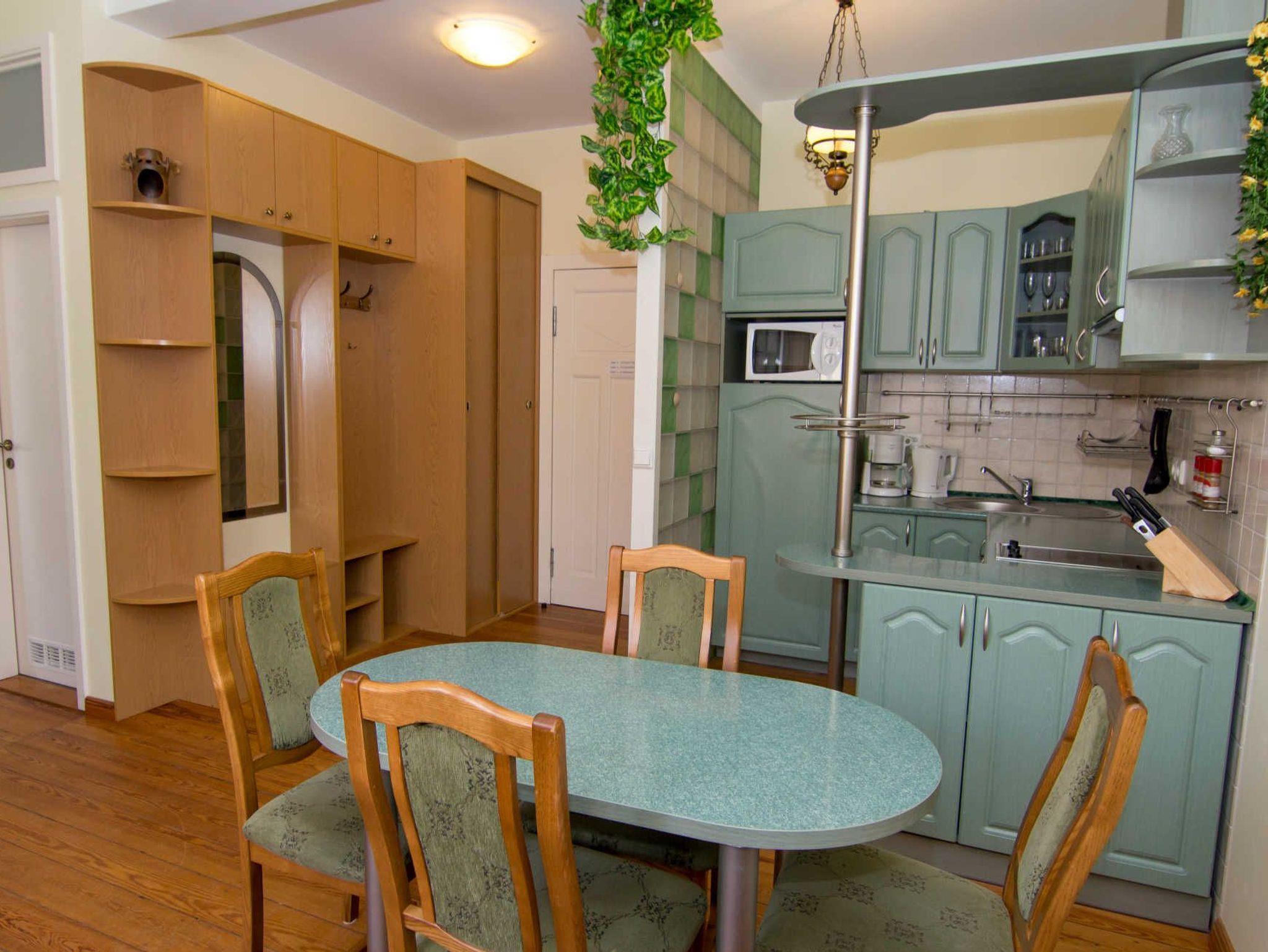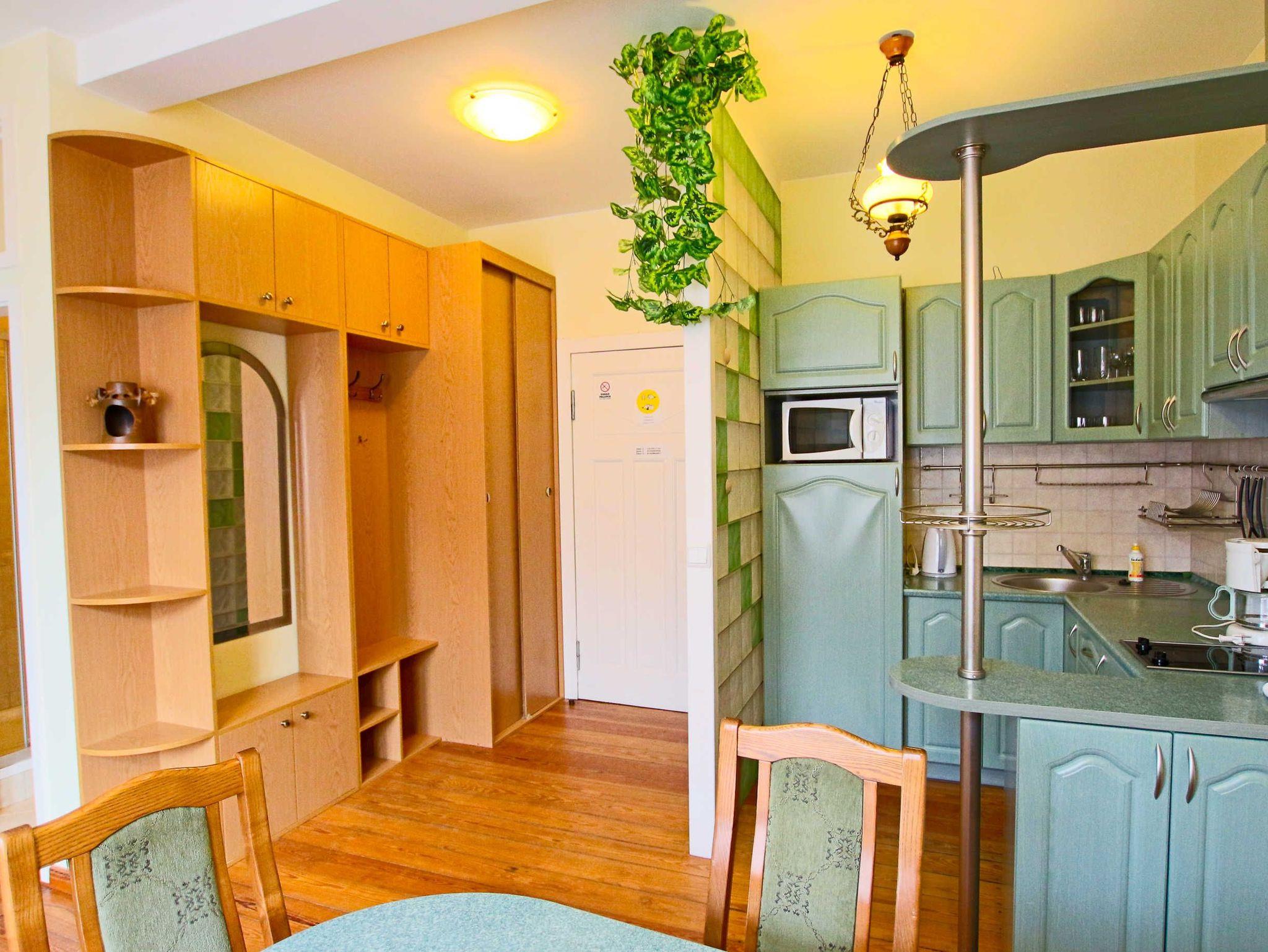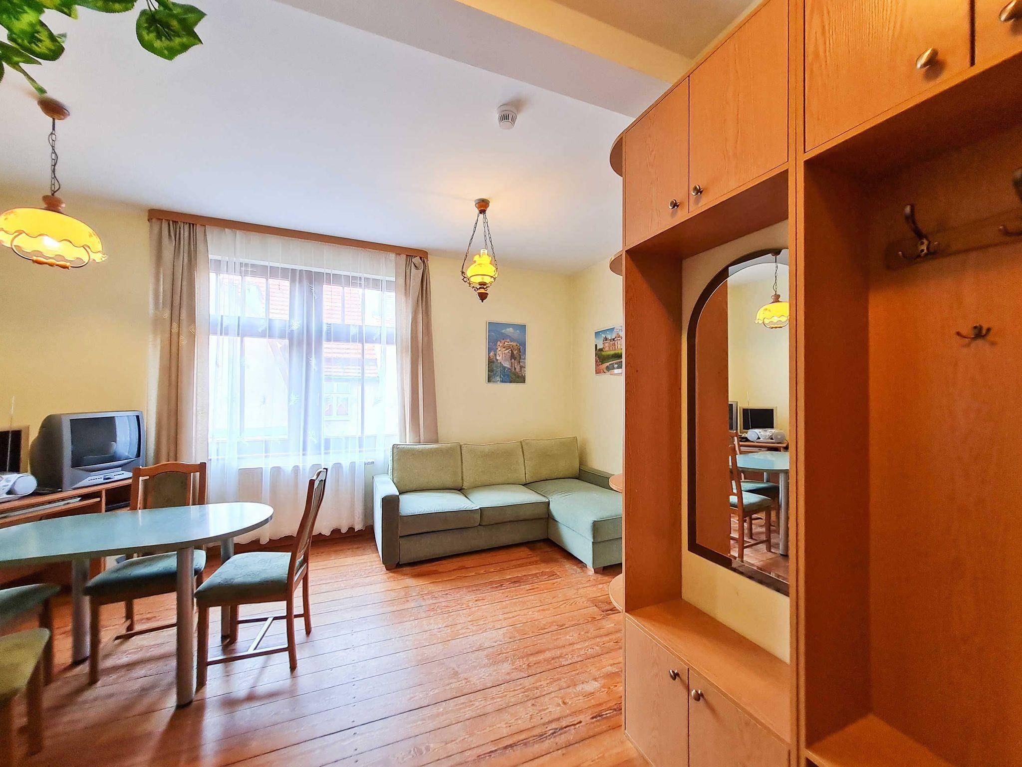 Eine komfortabel eingerichtete 2-Zimmer Wohnung mit Schlafzimmer mit Ehebett (160 x 200 cm) und Wohnzimmer mit Doppelcouch (140 x 200 cm) und Küchenzeile. Wohnung ausgestattet mit Waschmaschine und Mikrowelle.