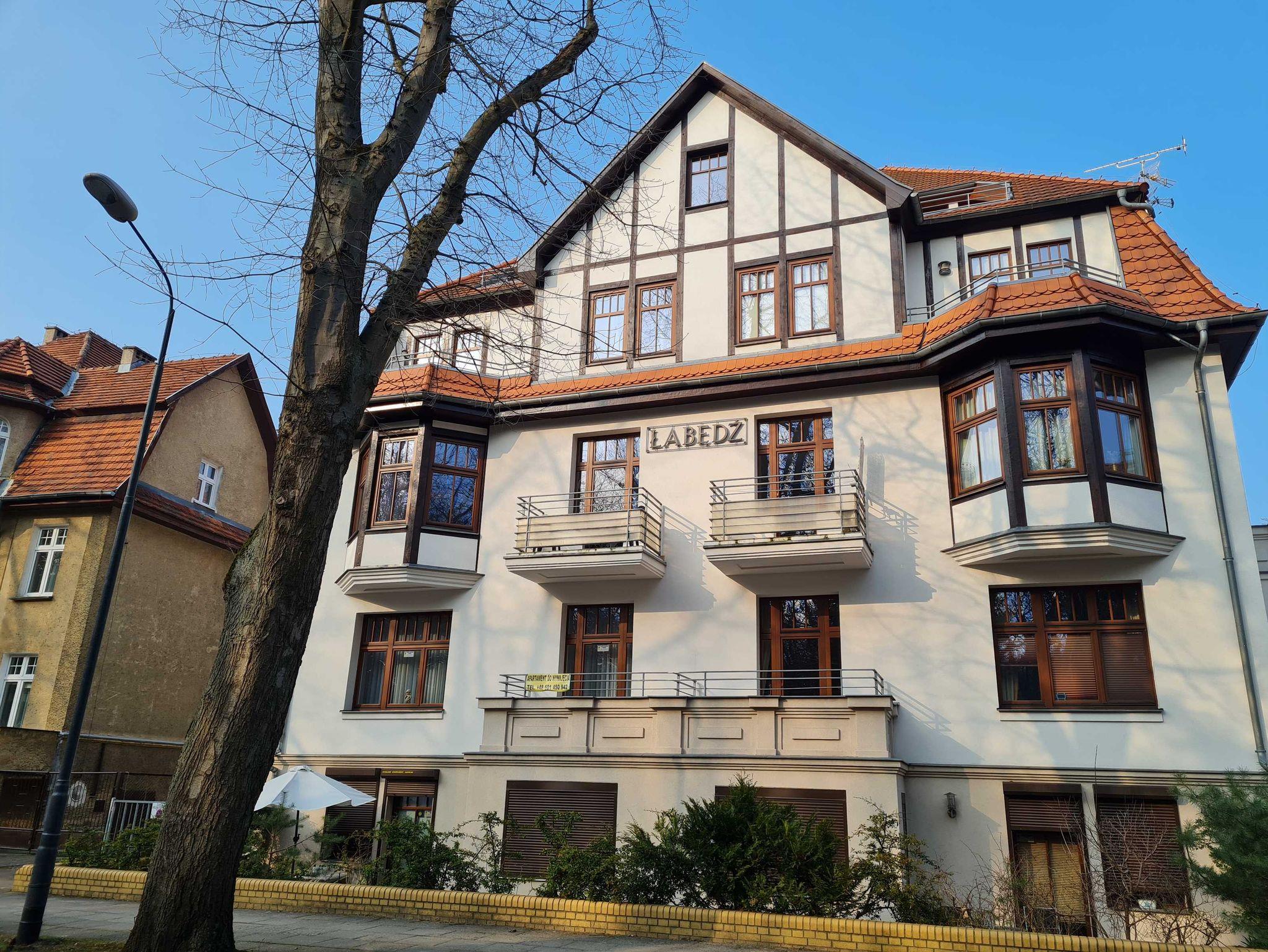 Das Appartementhaus ?Labedz befindet sich in dem ?Kurviertel der Stadt Swinemünde in der Sienkiewicza Strasse 17 und ist nur 100m von der Promenade und 200m vom Strand entfernt. Im Rahmen eines komplexen Ausbaus und Modernisierung des Gebäudes ist es gelungen, die schönen Züge der Architektur der 20er Jahre sowohl außen als auch im Innern des Gebäudes beizubehalten. Das Haus hat vier Stockwerke mit ausgebautem Dachgeschoss. Zu Ihrer Verfügung stehen sehr individuell eingerichtete 2 Zimmer Appartements mit Bad, Küchenzeile und Fernsehen. Auf dem Gründstück befindet sich ein Grill- und Erholungsplatz. Darüber hinaus haben Sie die Möglichkeit auf dem Hof einen Parkplatz (O) zu mieten.