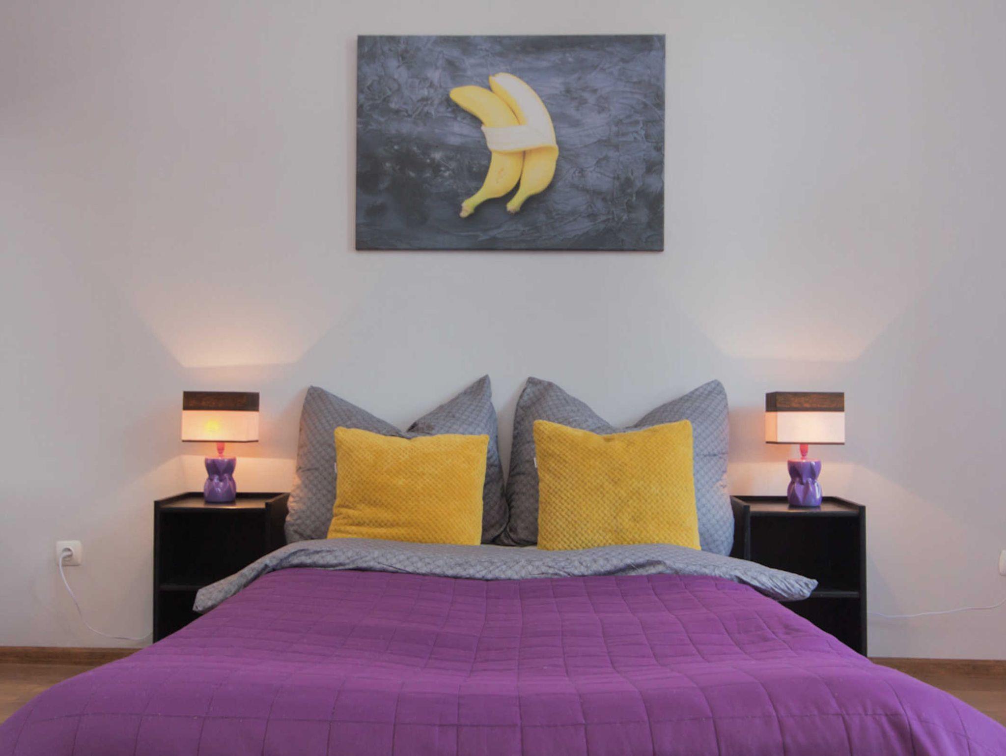 Die Wohnung besteht aus einem Schlafzimmer mit Zugang zum Balkon, Wohnzimmer, einer Küche und einem Bad.