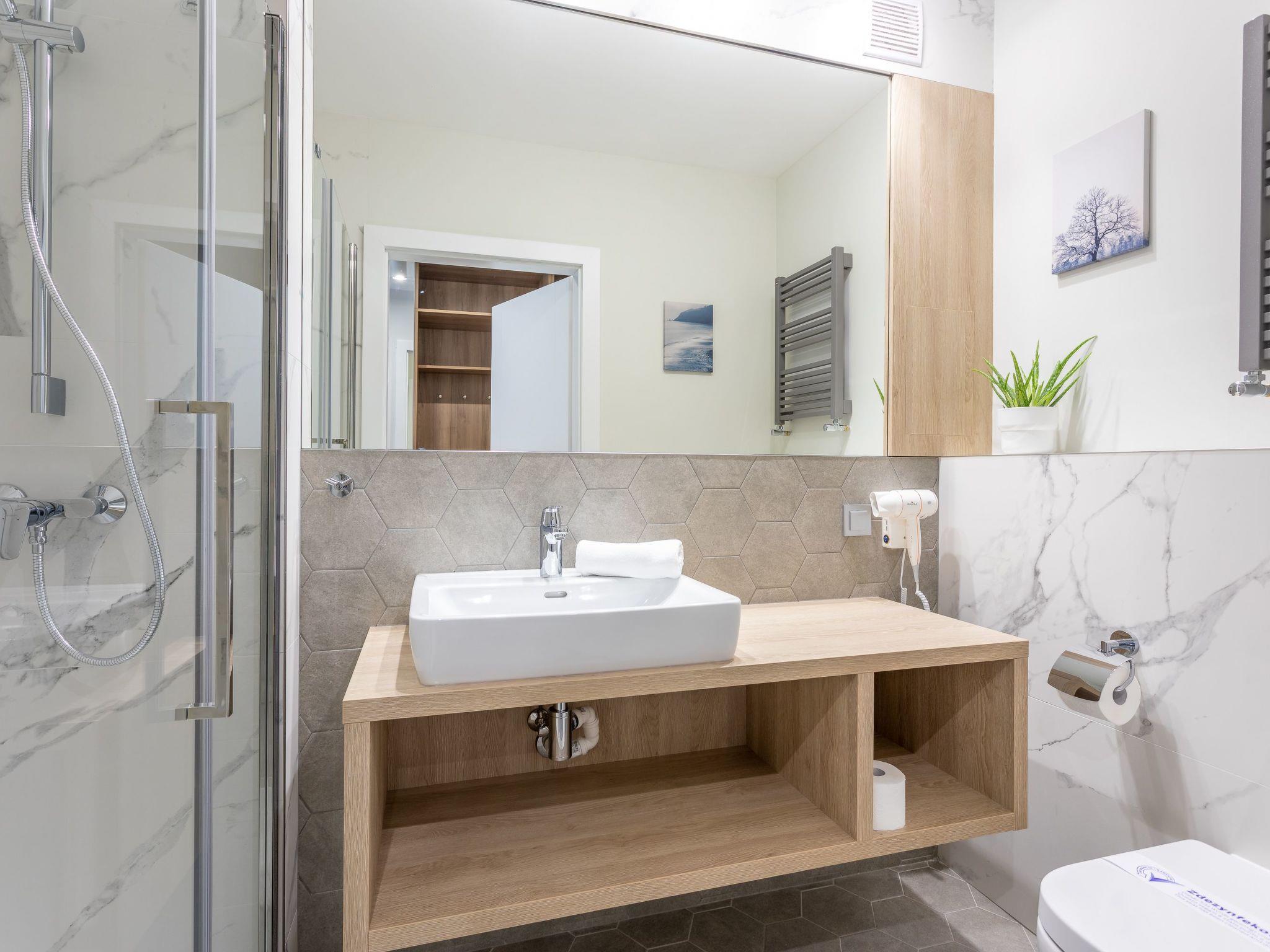 "Albus 005" in Swinoujscie is a very elegant flat in an exclusive apartment building from 2020 with a restaurant and a café. It consists of a living, dining and sleeping area, a fully equipped kitchenette and a spacious bathroom with a total area of 27m2. An additional advantage is the balcony, which is a practical and functional extension of the flat and allows for moments of relaxation in the fresh air. Practical and comfortable furnishings guarantee a pleasant stay, both for private and business purposes. The interior is charming, tasteful and cosy: full of bright, warm tones that, together with modern furniture and elegant accessories, create an exquisite yet minimalist whole where you can rest and actively pursue your interests and passions. A beautiful decoration on the wall, just behind the headboard, emphasises the charm of this place and ... ignites the senses.